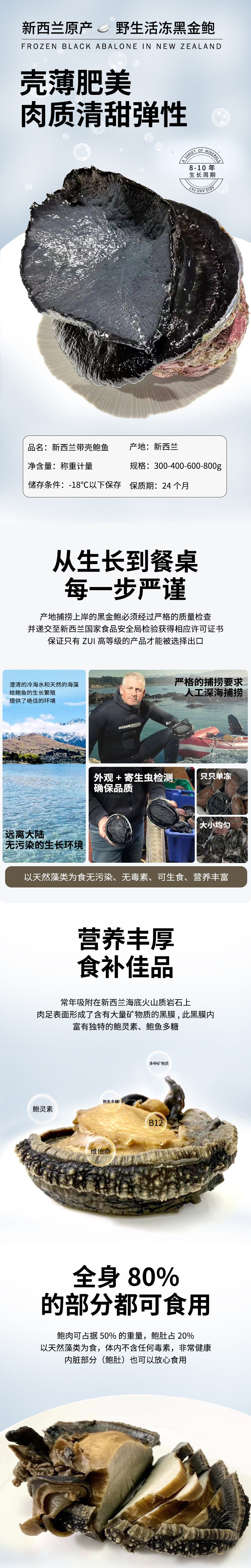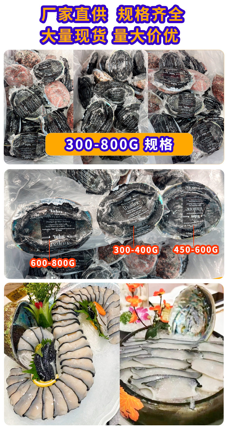Spot New Zealand Black Gold Abalone Single Frozen Abalone Sashimi Abalone Meat Seafood Japanese Ingredients Specifications Wholesale Frozen Black Gold Abalone
