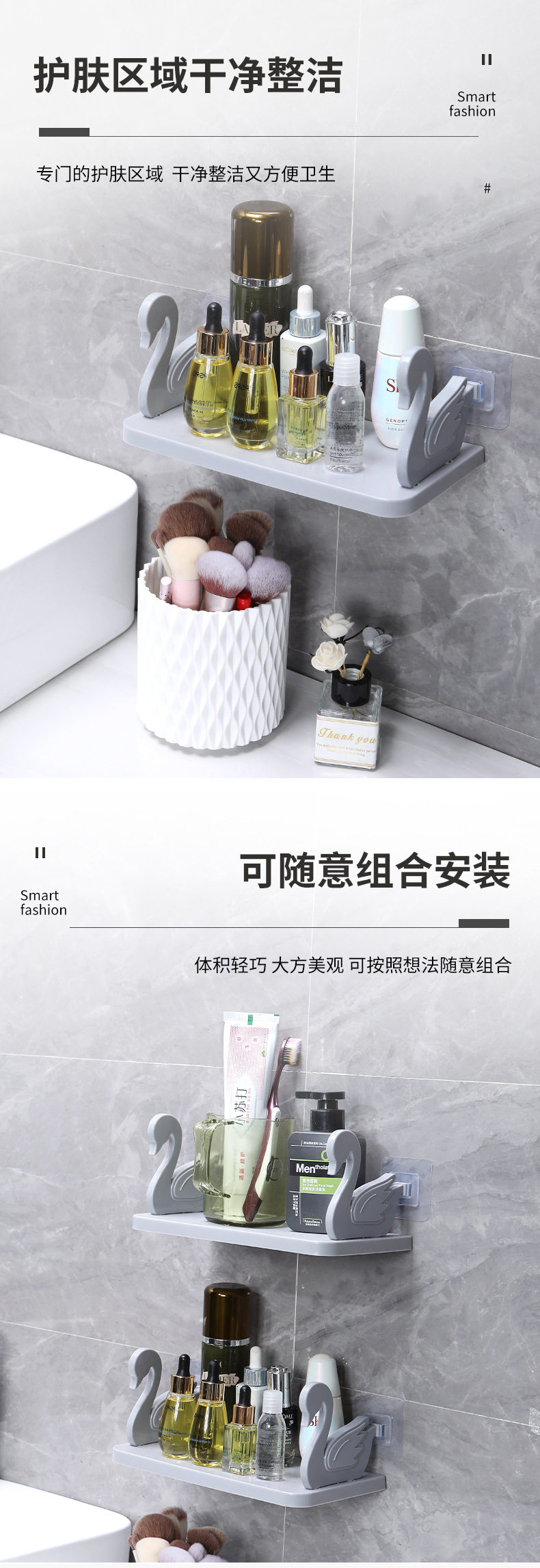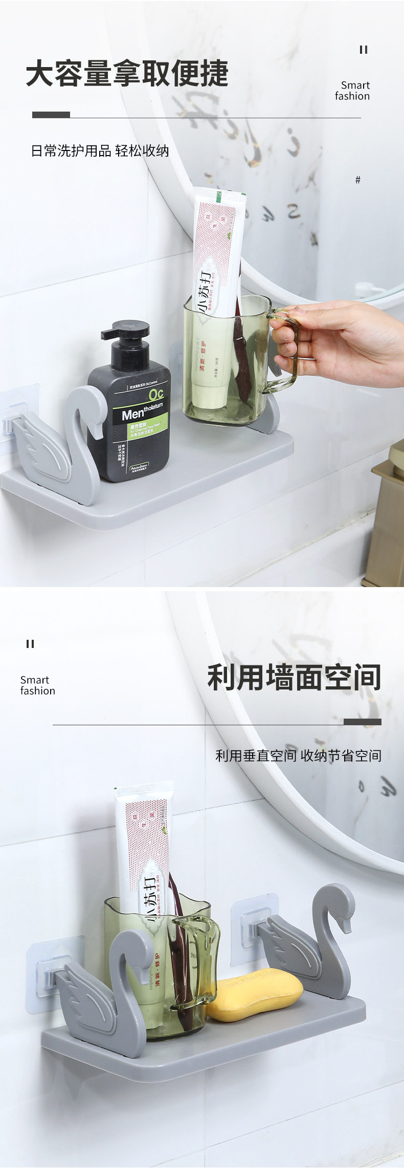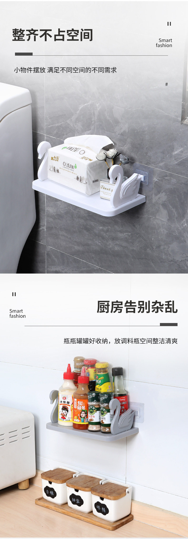 Swan Storage Rack Suction Wall-type Seamless Non-perforated Flower Rack Toilet Paste Storage Rack Bathroom Washstand Kitchen