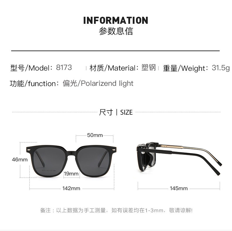 | Frame Color | Bright Black Frame Black Grey C1-8173,Sand Black Frame Black Grey C2-8173,Gradual gray frame double gray C3-8173,On the gradient blue frame under the powder C4-8173,Gradual Tea Frame Double Tea C5-8173 |