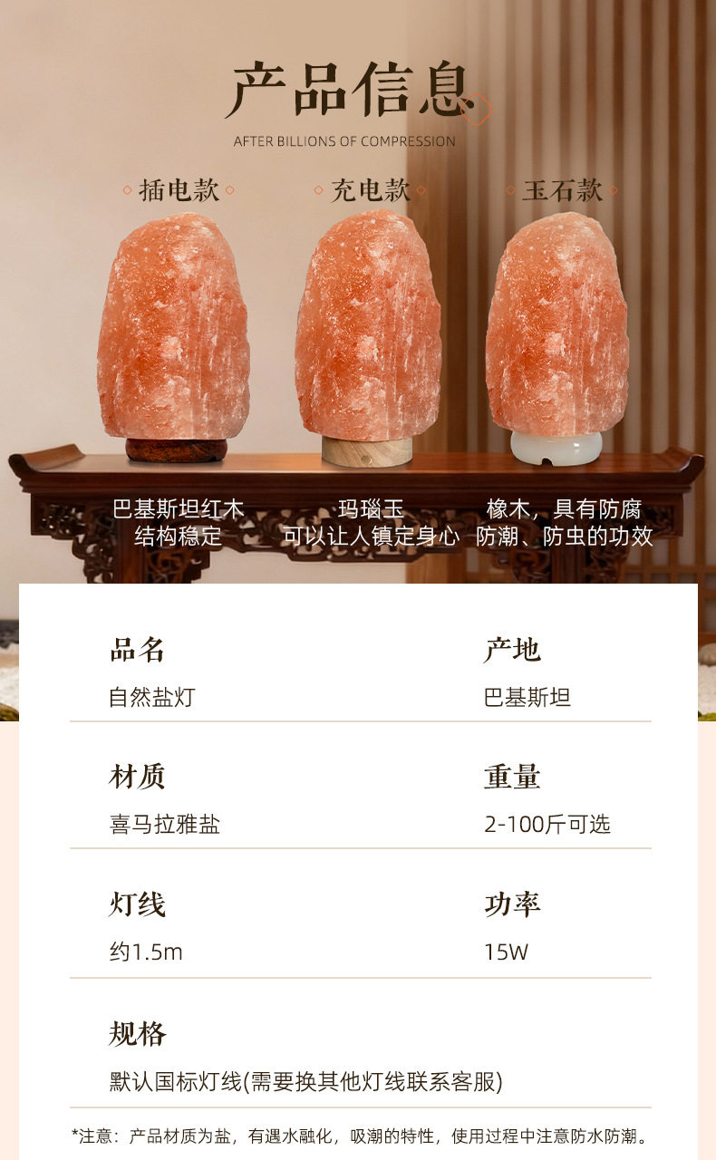 | Size | Plug-in pink salt lamp,Rechargeable pink salt lamp,Jade style pink salt lamp,Other light strings, pink salt lamps |