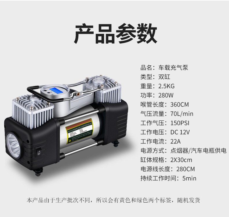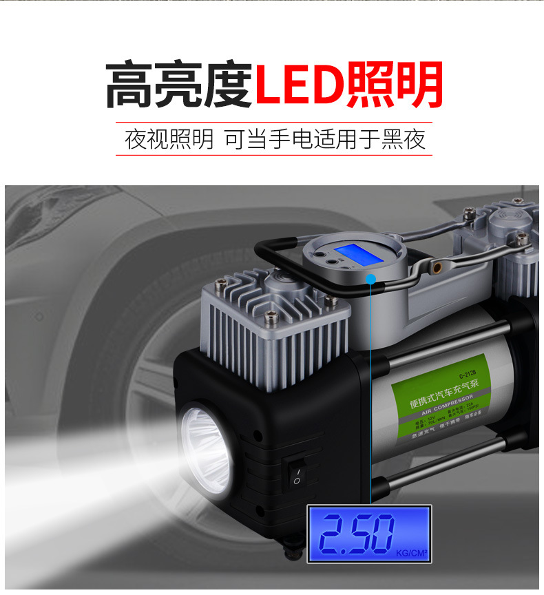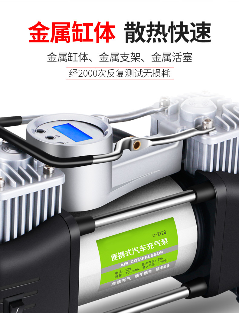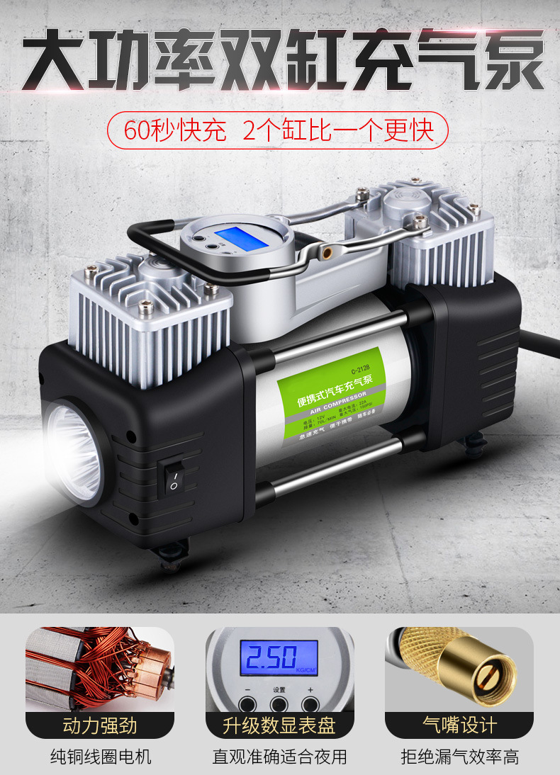 Automobile air pump, double cylinder, high power air pump, off-road air pump, metal vehicle air pump, truck and truck