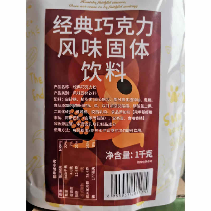 | Raw materials and ingredients | Sugar, vegetable fat powder, emulsifier, cocoa powder, skimmed milk powder, etc. |