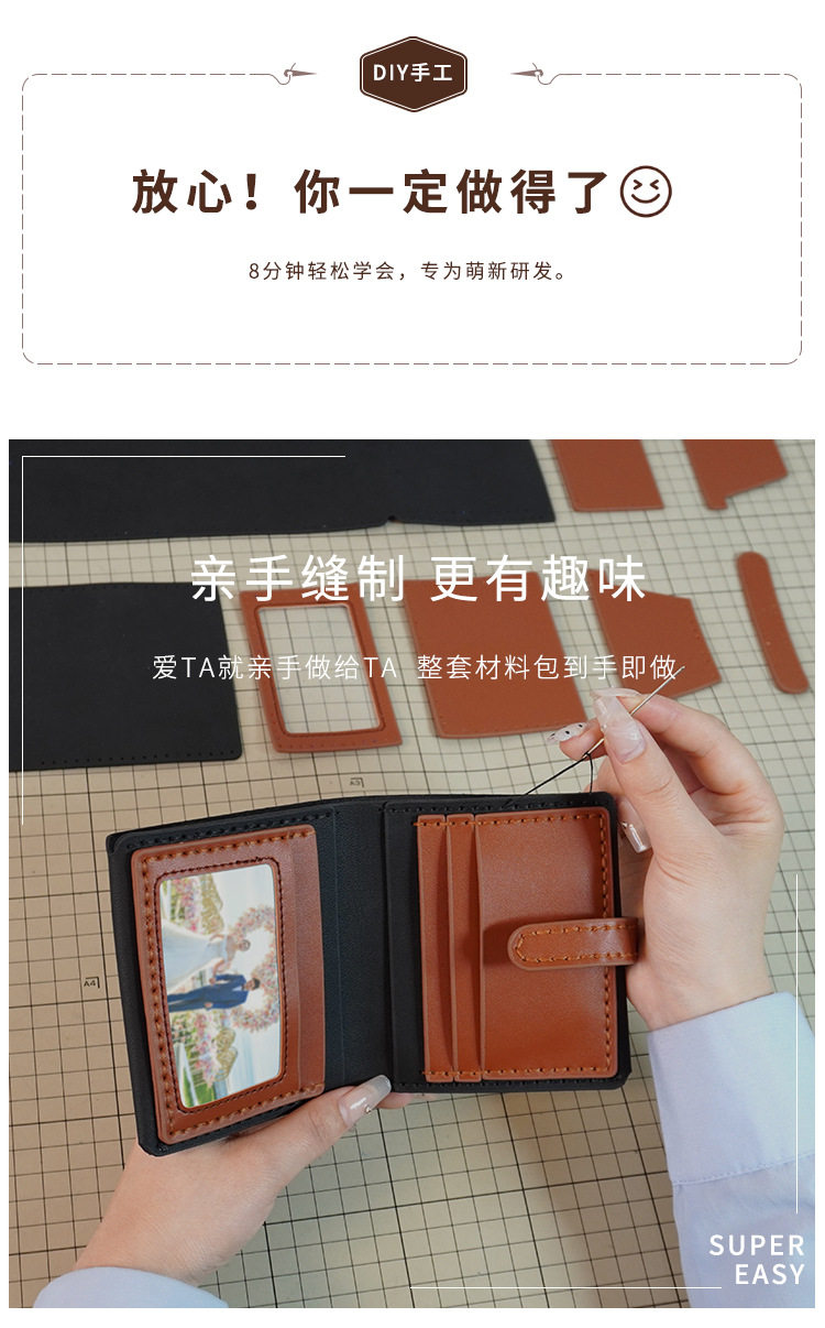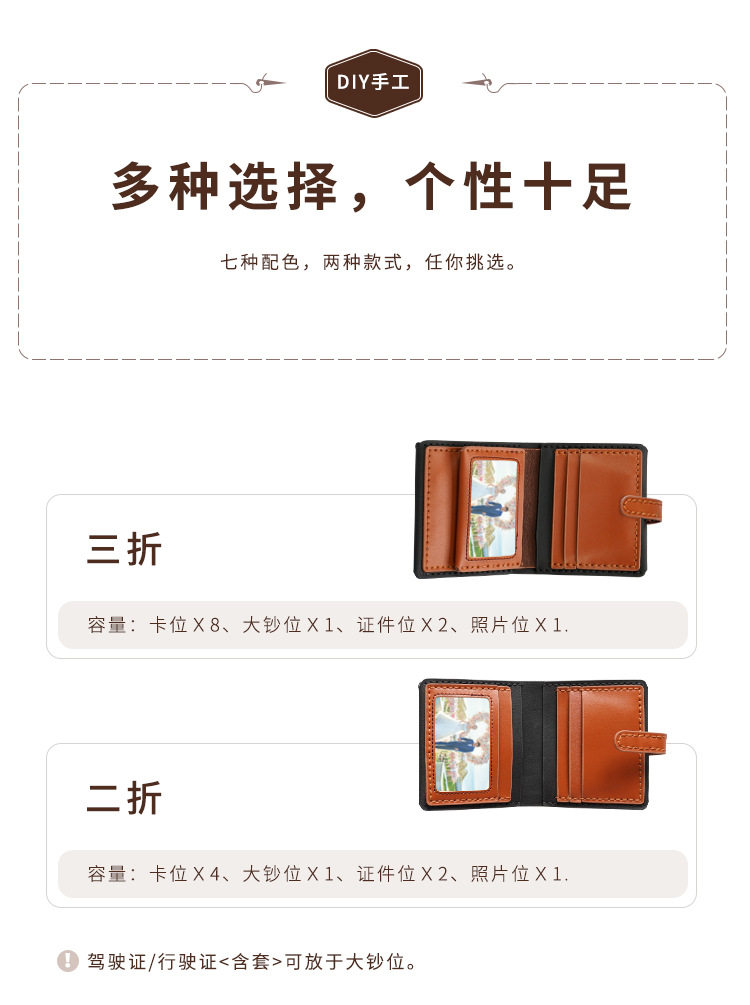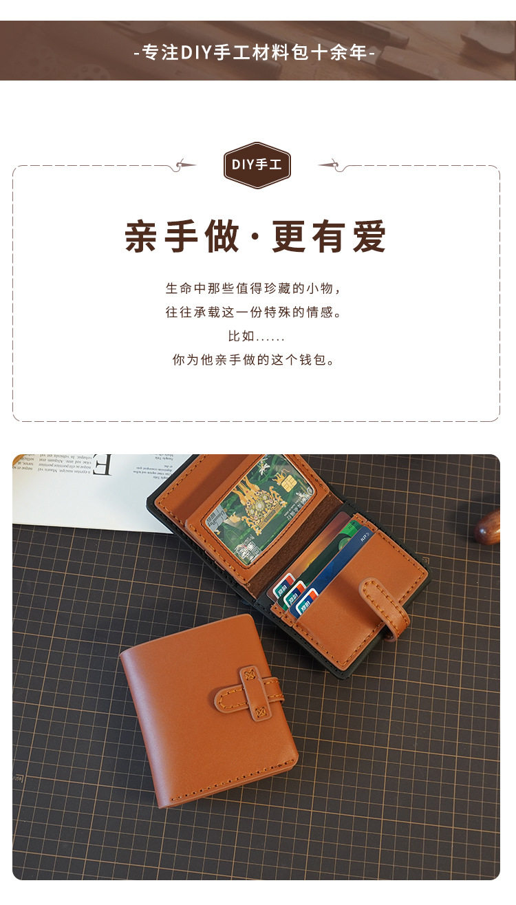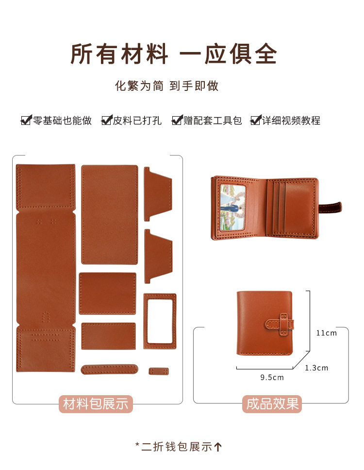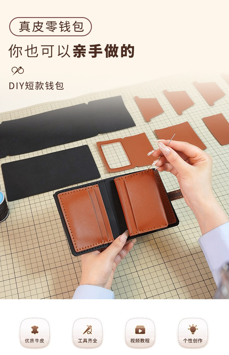 diy Handmade Wallet Real Cowhide Hand-stitched Material Bag Men's Short Boyfriend Gift Homemade Large Capacity 30% Fold