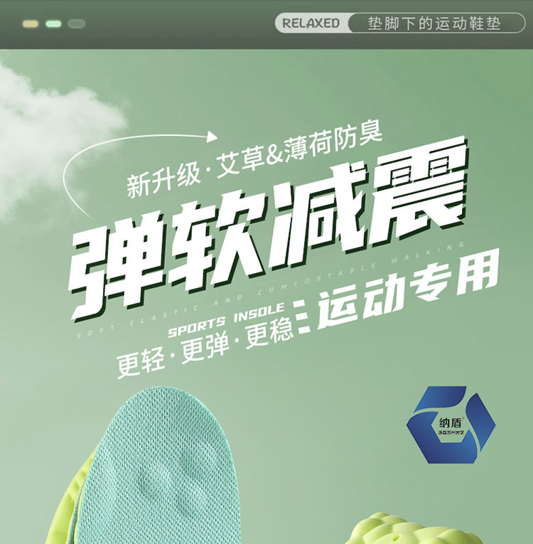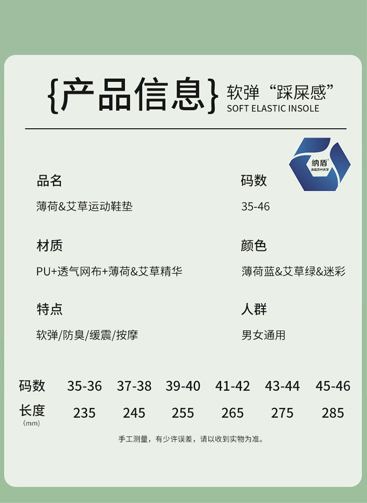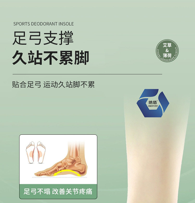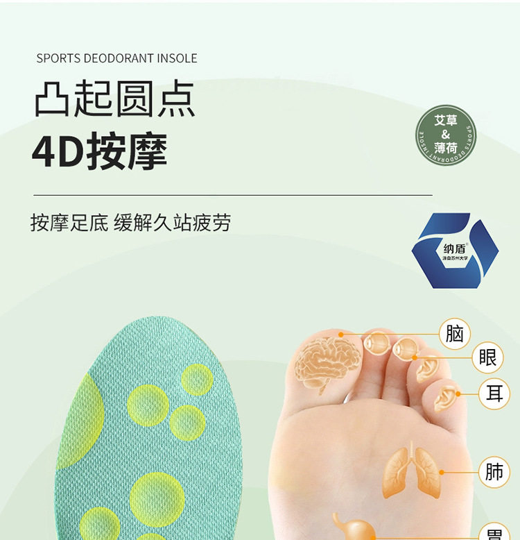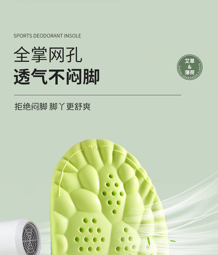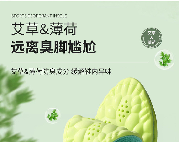 Mint Wormwood insole summer men's antibacterial deodorant girls white shoes sports breathable sweat-absorbent comfortable cushion