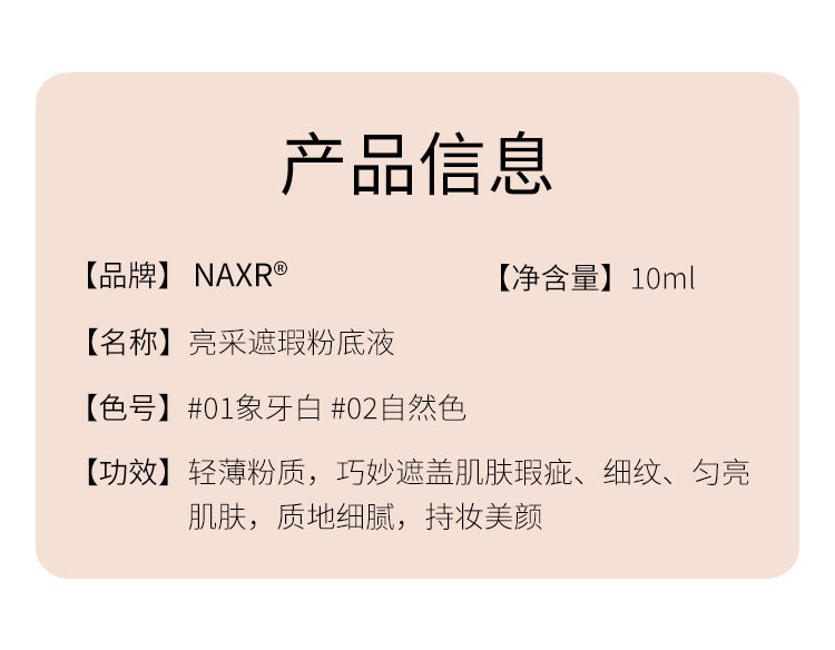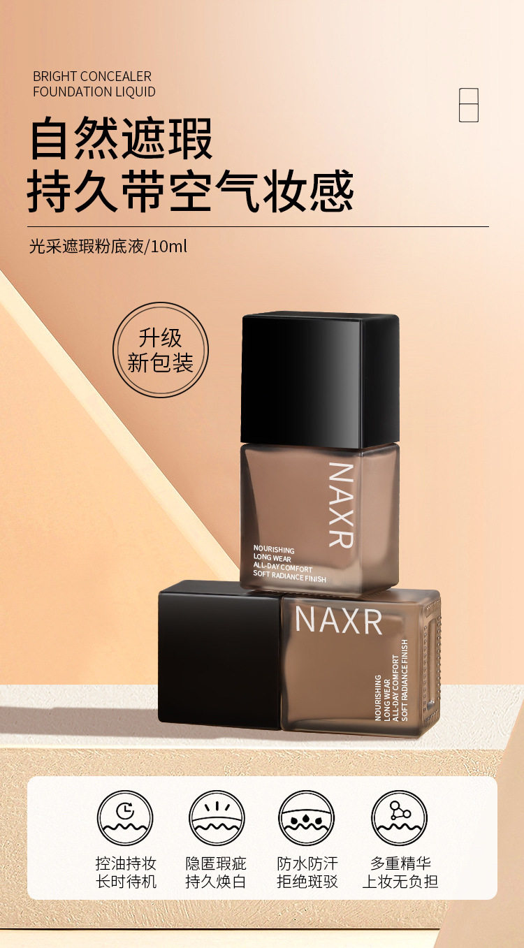 Naxr Bright Concealer Liquid Foundation Skin Nourishing and Long-Lasting Makeup Creamy Skin Small Square Bottle Anti-Sweat, Waterproof, Moisturizing and Non-Removing Makeup Manufacturer