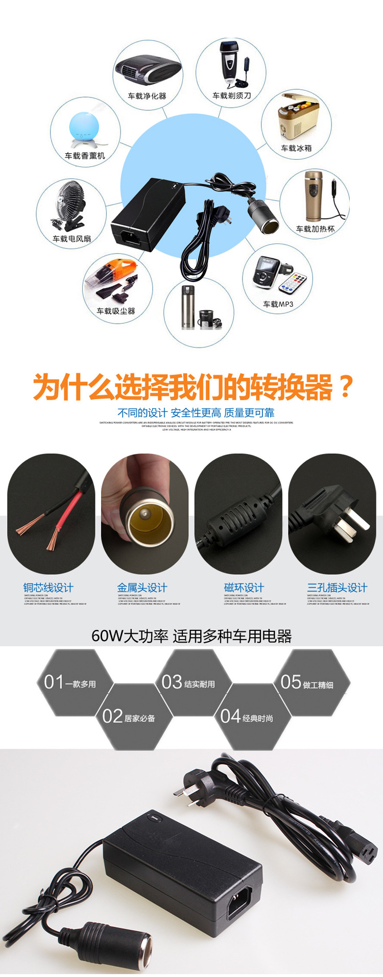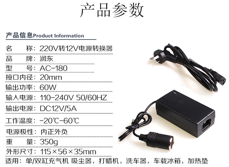 220V to 12V household car power converter car cigarette lighter vacuum cleaner refrigerator multifunctional adapter