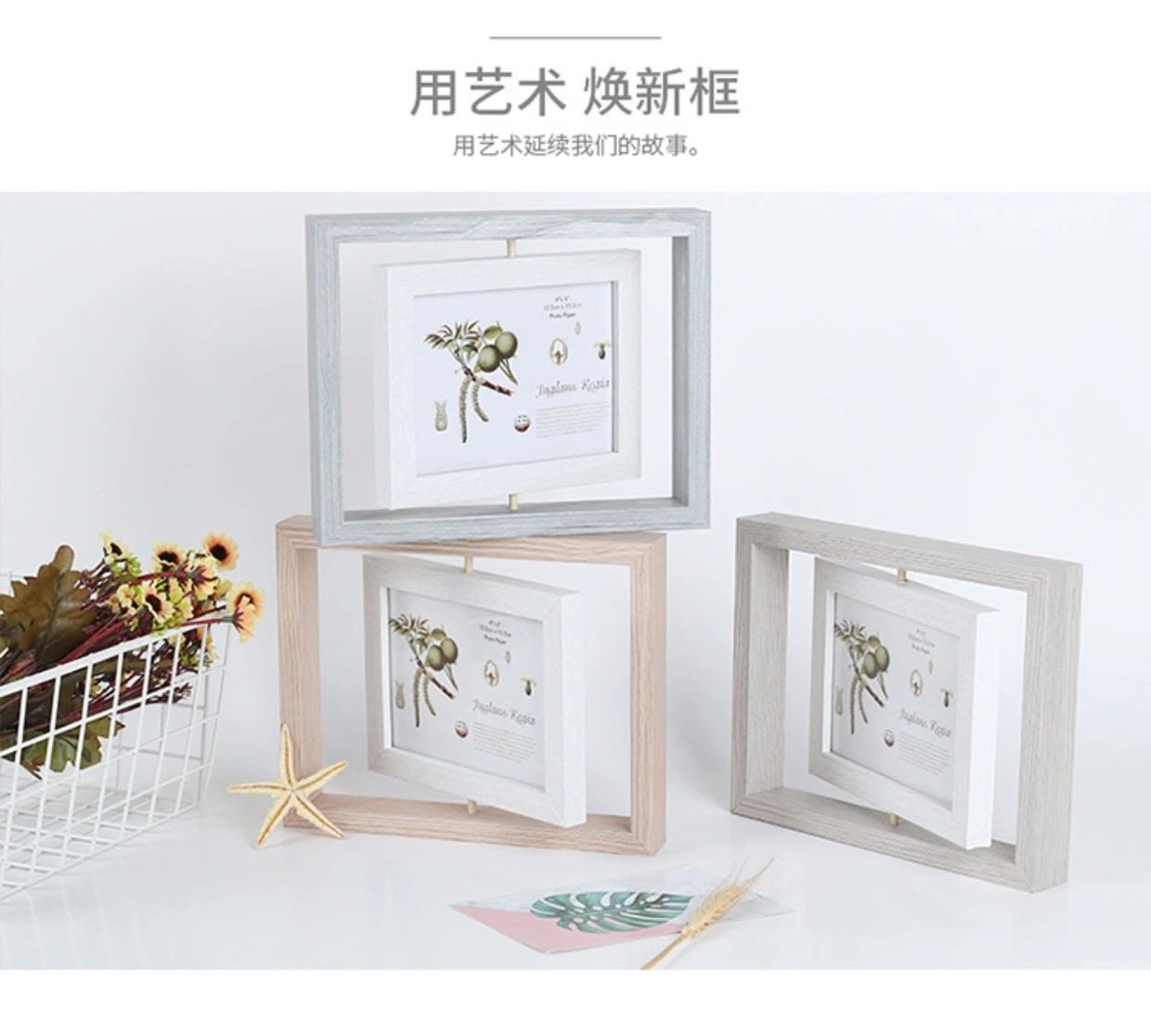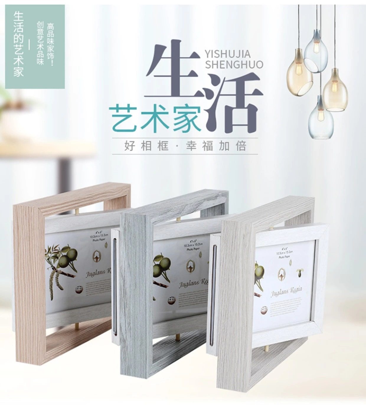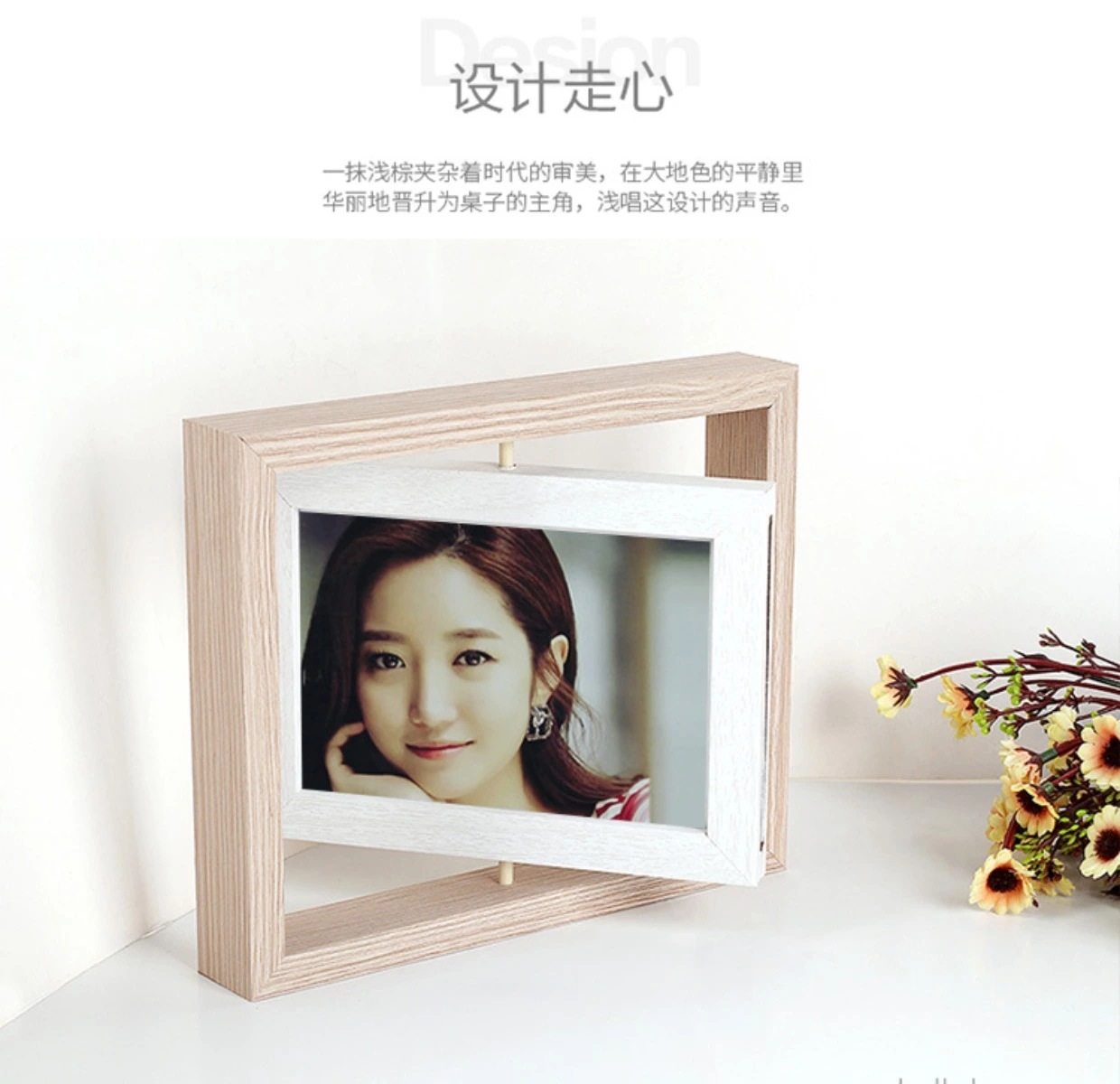 Creative Wooden Double-Sided Rotating Frame Photo Frame Wedding Dress Couple Small Size 6inch 7inch Desktop Display Frame Spot Wholesale