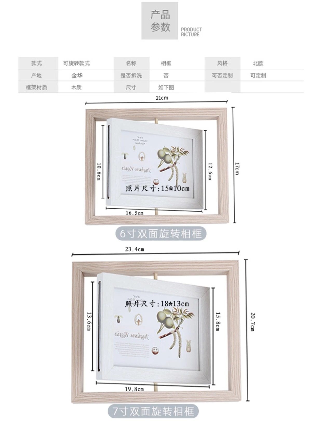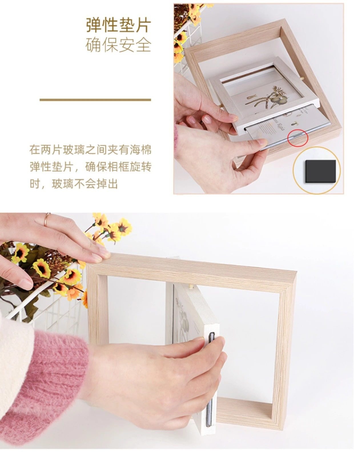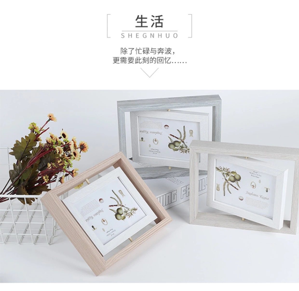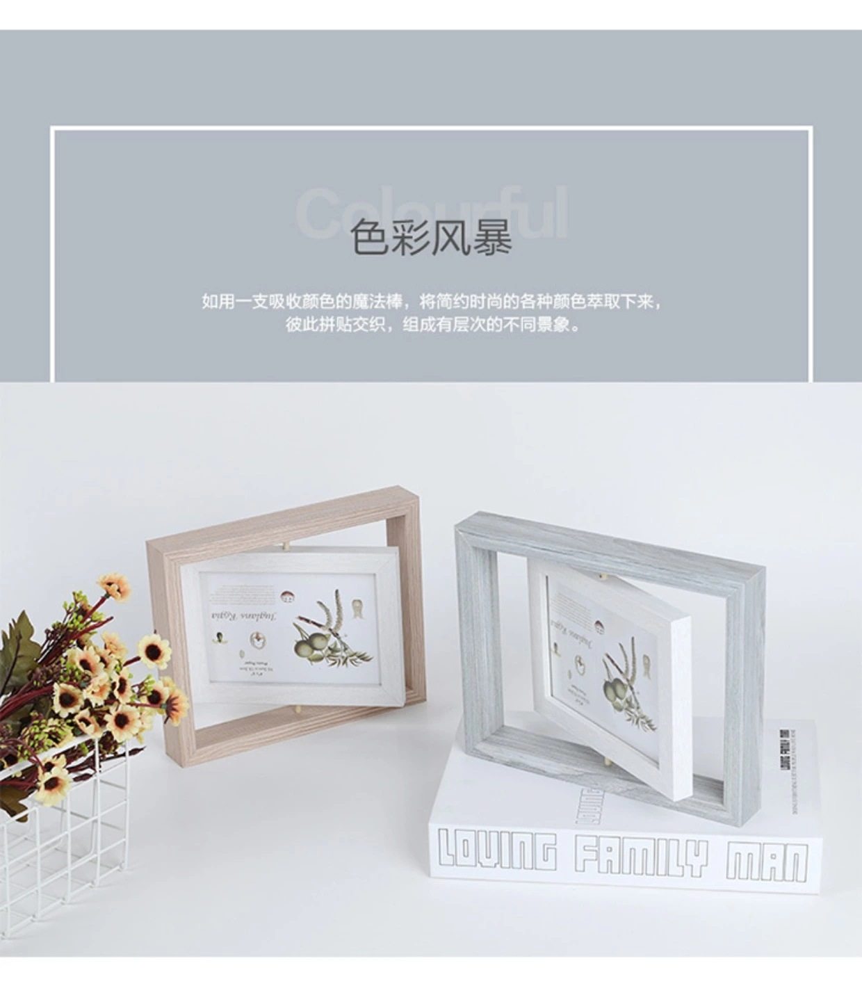 Creative Wooden Double-Sided Rotating Frame Photo Frame Wedding Dress Couple Small Size 6inch 7inch Desktop Display Frame Spot Wholesale