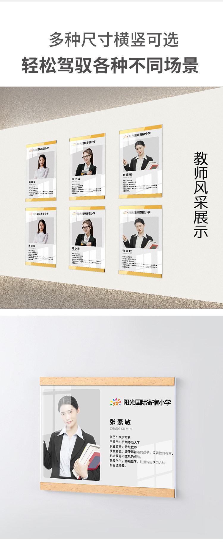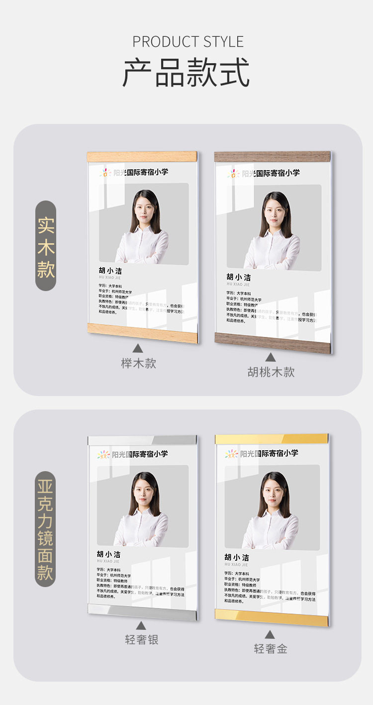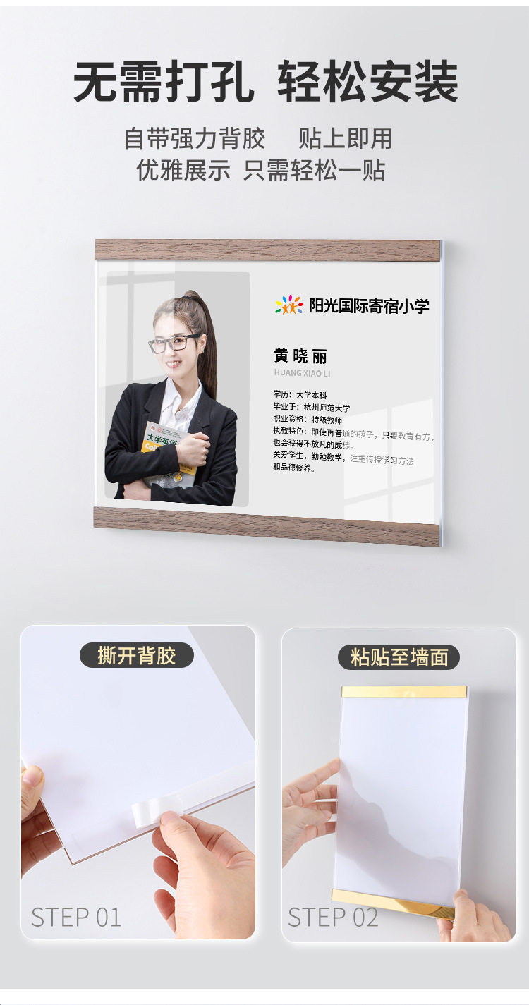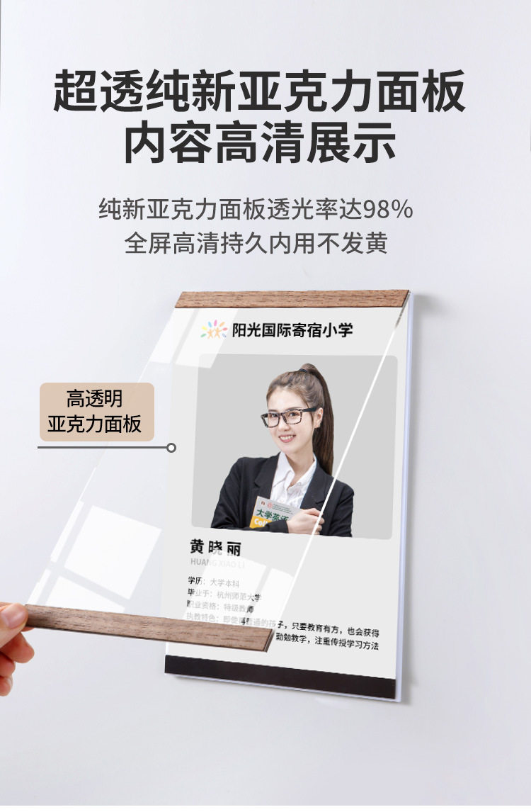 Acrylic Punch-Free Wooden Frame Label A4 Self-Adhesive Flip-Up Magnetic Display Frame Business License Photo Frame