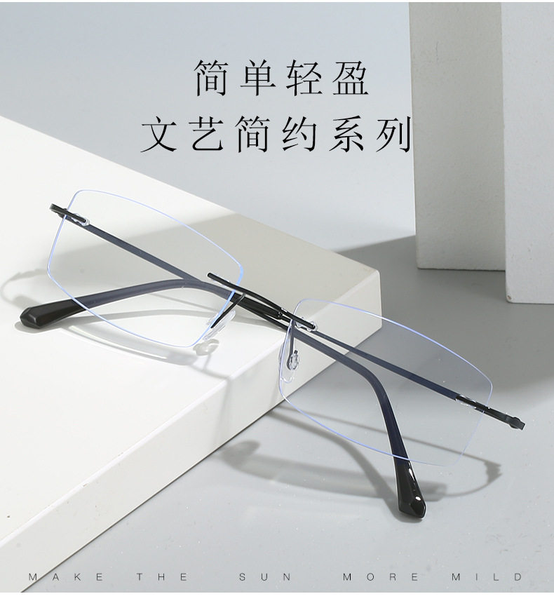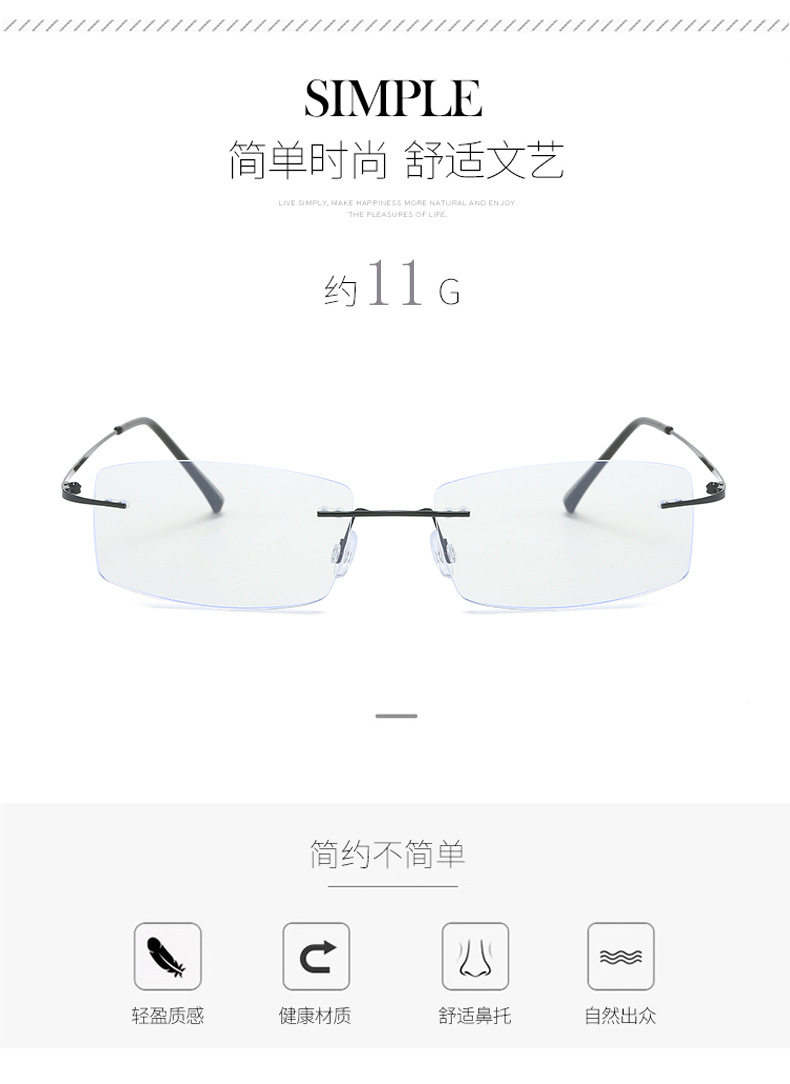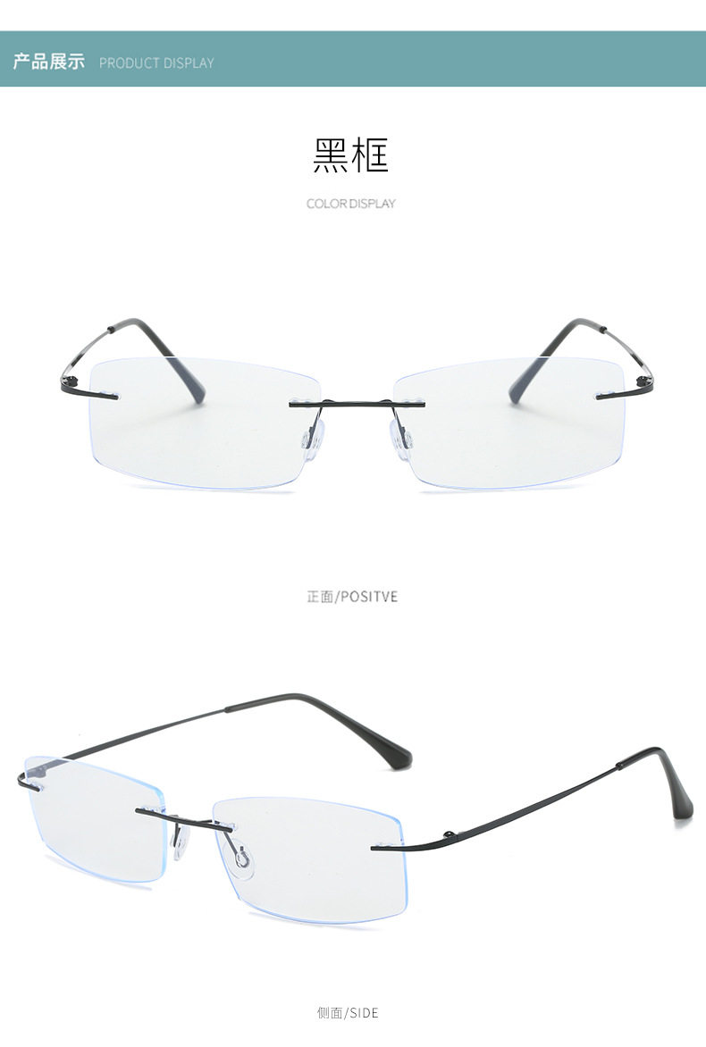 Men's Ultra Light Rimless Glasses Frame Wholesale Myopia Glasses Frame Square Glasses Finished Glasses with Speed Myopia Cut Edge
