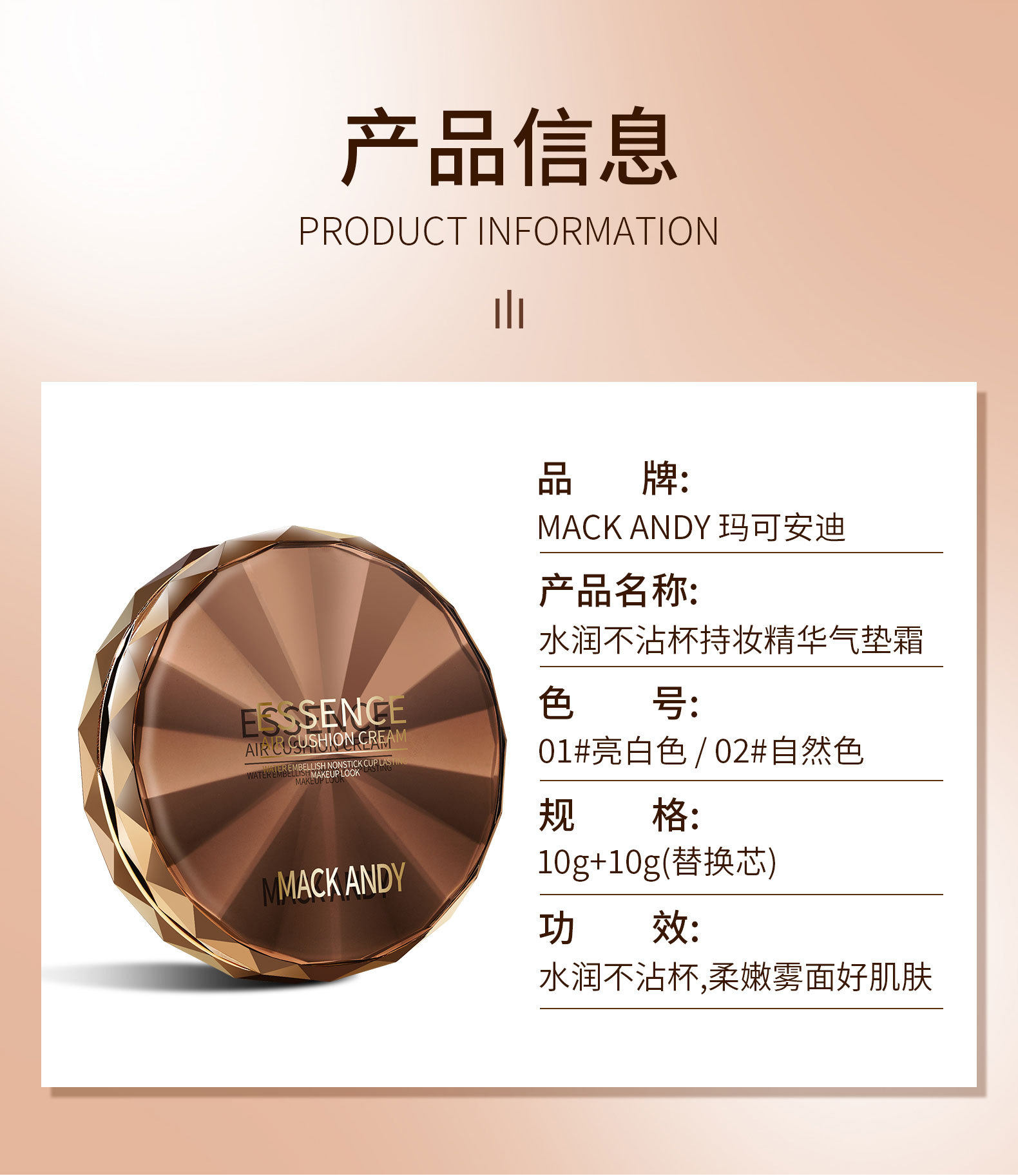Marco Andy Moisturizing Cup Holding Makeup Essence Air Cushion Cream Concealer Oil Control Lasting Moisturizing Foundation Dry Skin