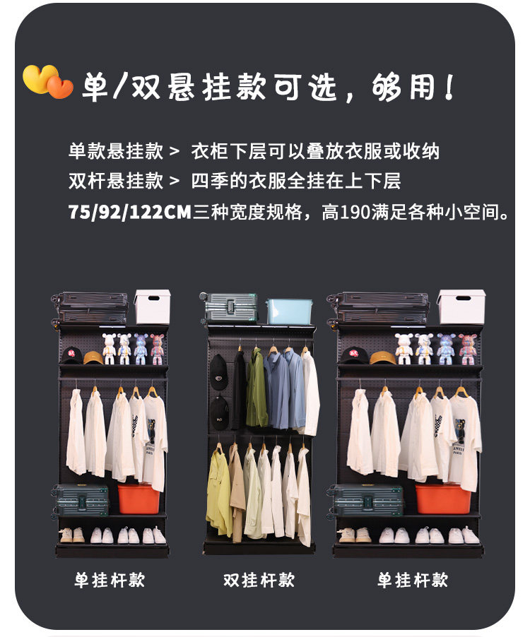 | Color | Clothes and hats main frame 56*40*190 layer,Hood main frame 66*40*190 layer,Hood main frame 75*40*190 layer,Clothes and hats main frame 86*40*190 layer,Clothes and hats main frame 92*40*190 layer,Clothes and hats main frame 122*40*190 layer,Coat and hat sub-frame 53*40*190 first floor,Coat and hat sub-frame 63*40*190 first floor,Coat and hat sub-frame 72*40*190 first floor,Suit Rack 83*40*190 floor,Coat and hat sub-frame 89*40*190 first floor,Coat and hat sub-frame 119*40*190 first floor,56 wide * 190 high/Black single hanging rod locker,66 wide * 190 high/Black single hanging rod locker,75 wide * 190 high/Black single hanging rod locker,86 wide * 190 high/Black single hanging rod coat cabinet,92 wide * 190 high/Black single hanging rod locker,122 wide * 190 high/Black single hanging rod coat cabinet,56 wide * 190 high (black) double hanging rod coat cabinet,66 wide * 190 high (black) double hanging rod locker,75 wide * 190 high (black) double hanging rod wardrobe,86 wide * 190 high (black) double hanging rod locker,92 wide * 190 high (black) double hanging rod wardrobe,122 wide * 190 high (black) double hanging rod locker,148*40*190 black combination 6 Layers 1 hanging,165*40*190 black combination 6 Layers 1 hanging,182*40*190 black combination 6 Layers 1 hanging,219*40*190 Black large capacity 6 Layer 4 hanging,270*40*190 Black large capacity 6 Layer 4 hanging,360*40*190 Black large capacity 6 Layer 4 hanging |
