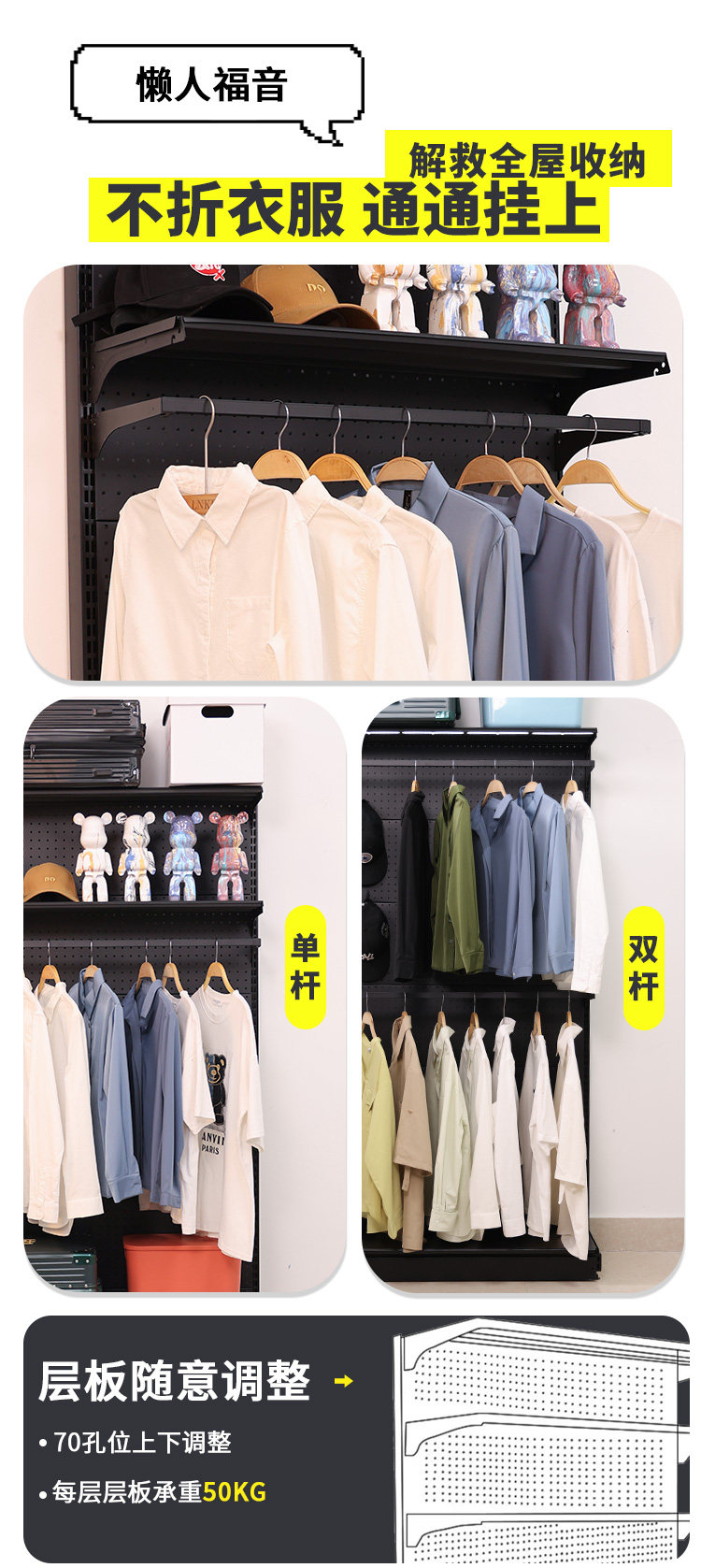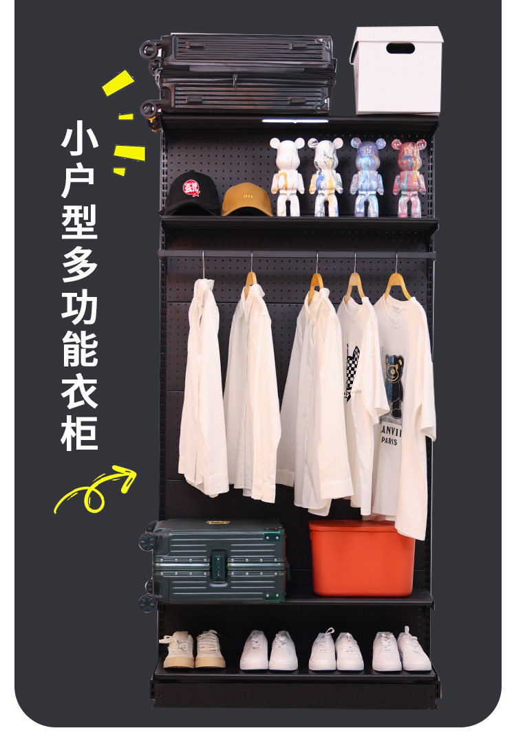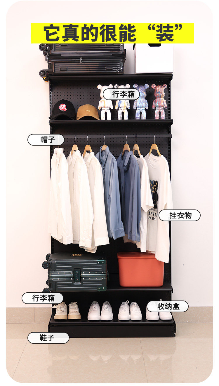 1.9 m Small Apartment Hole Board Wardrobe Open Coat Rack Household Bedroom Simple Storage Wardrobe Rack