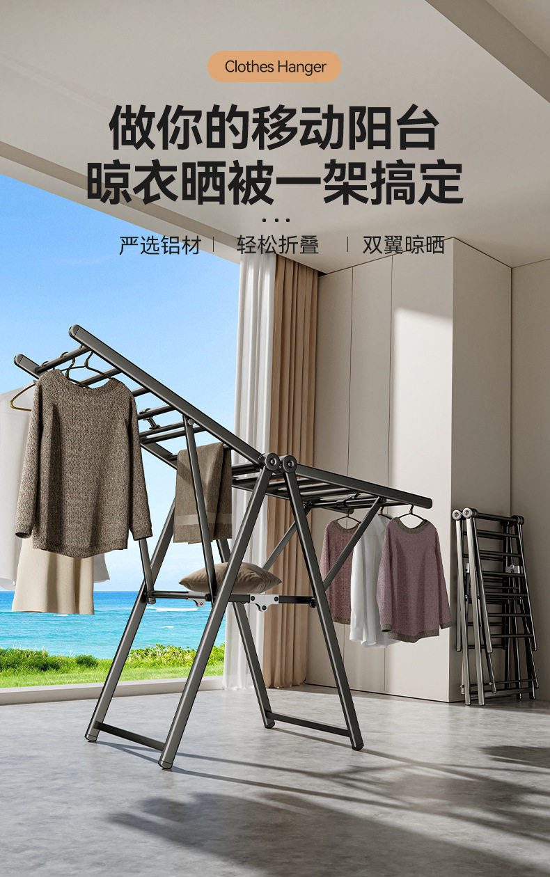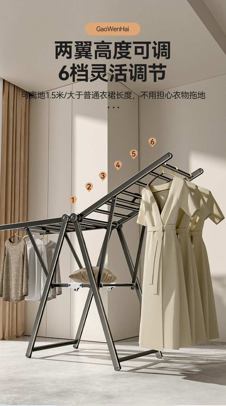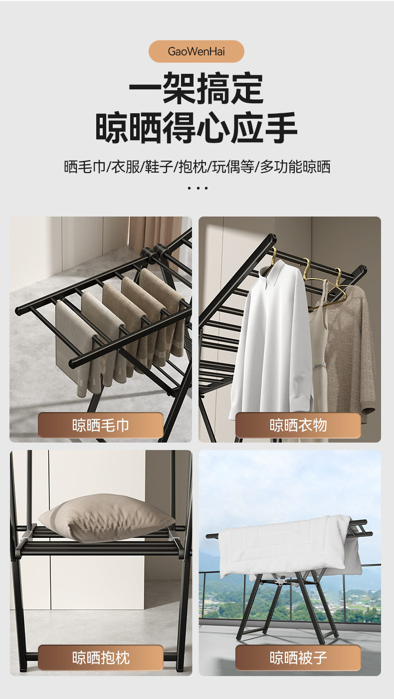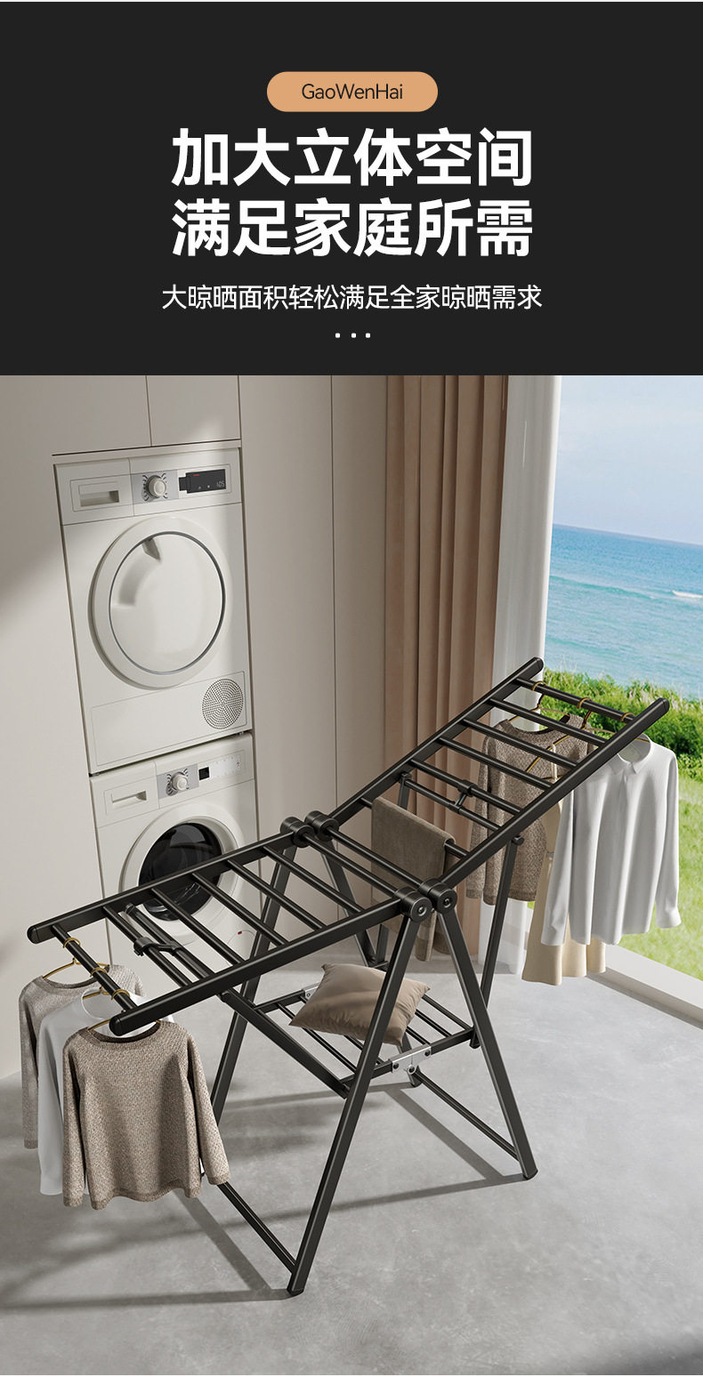 Gao wenhai drying rack indoor floor black space aluminum drying rack floor floor drying rack a generation of hair