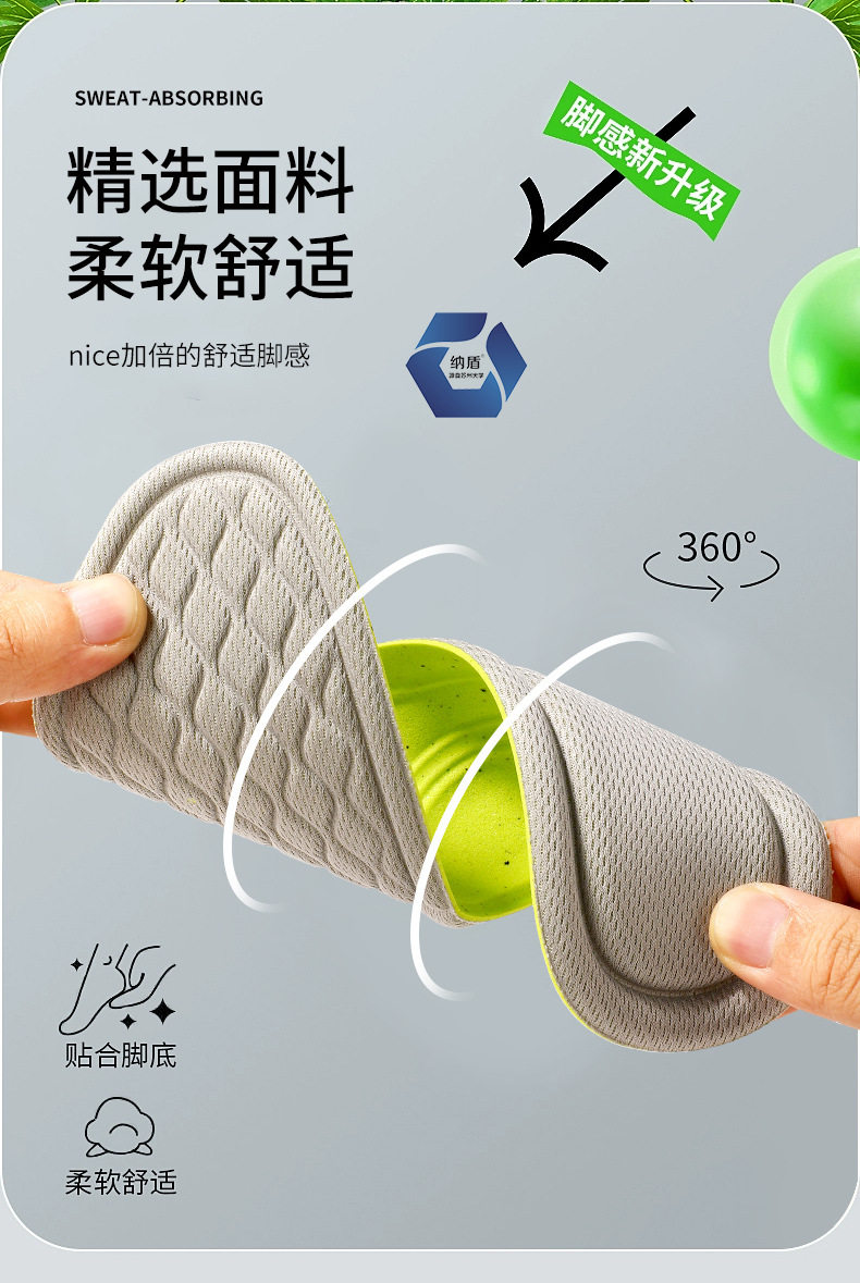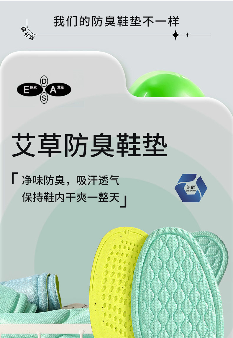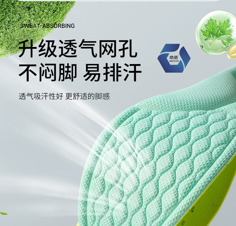 Odor-proof insole for men and girls sweat-absorbent breathable Wormwood super soft and comfortable sports foot sweat special summer lightweight thin
