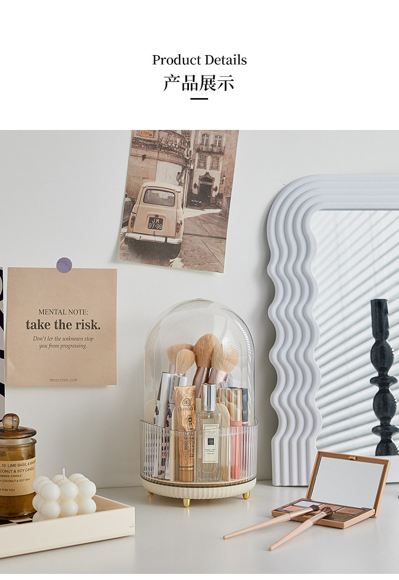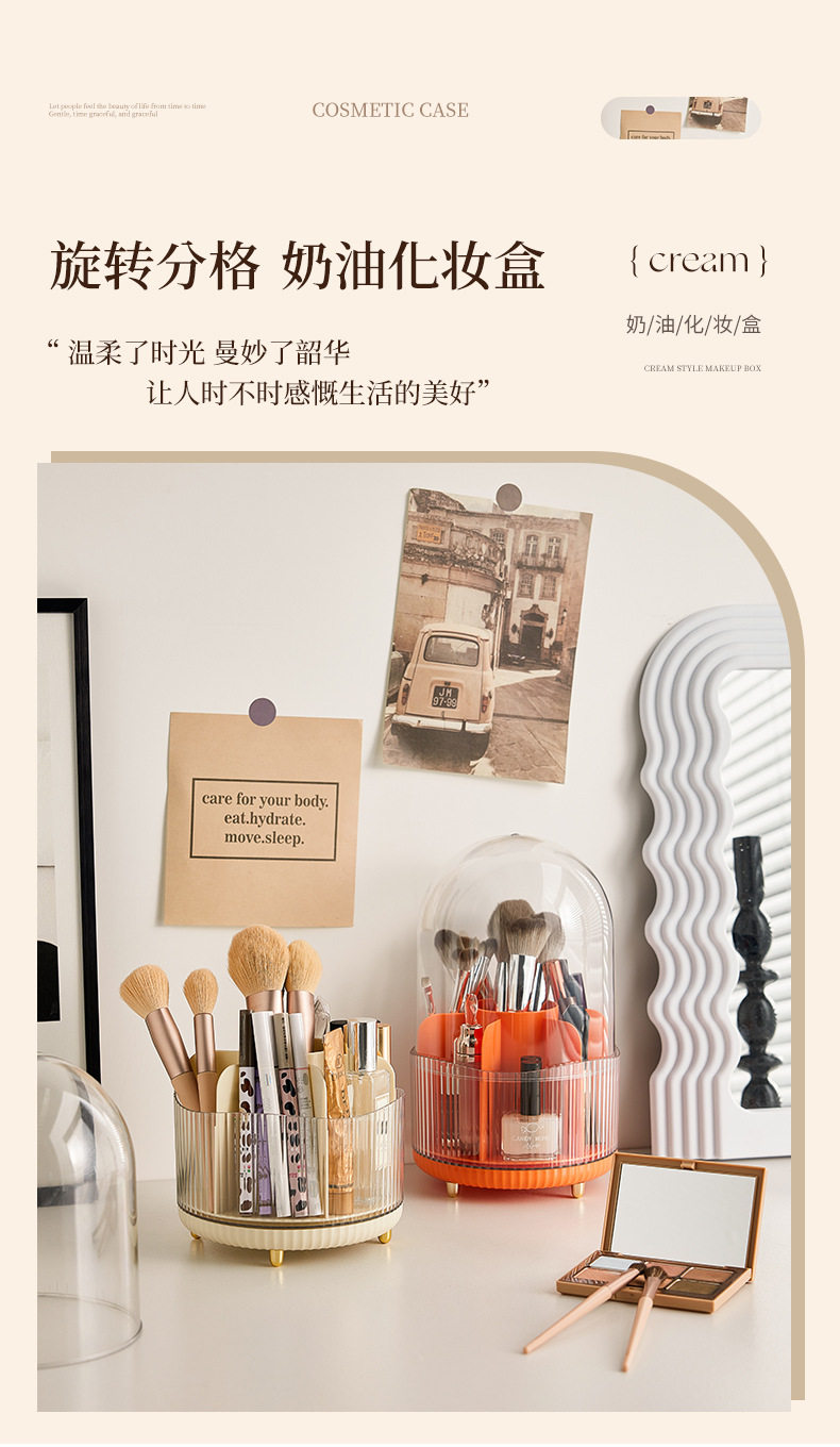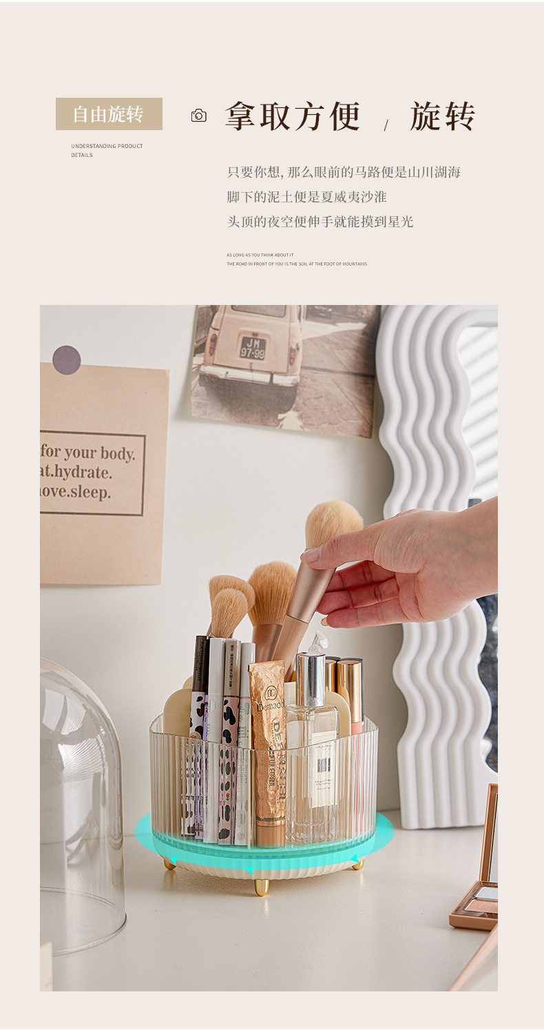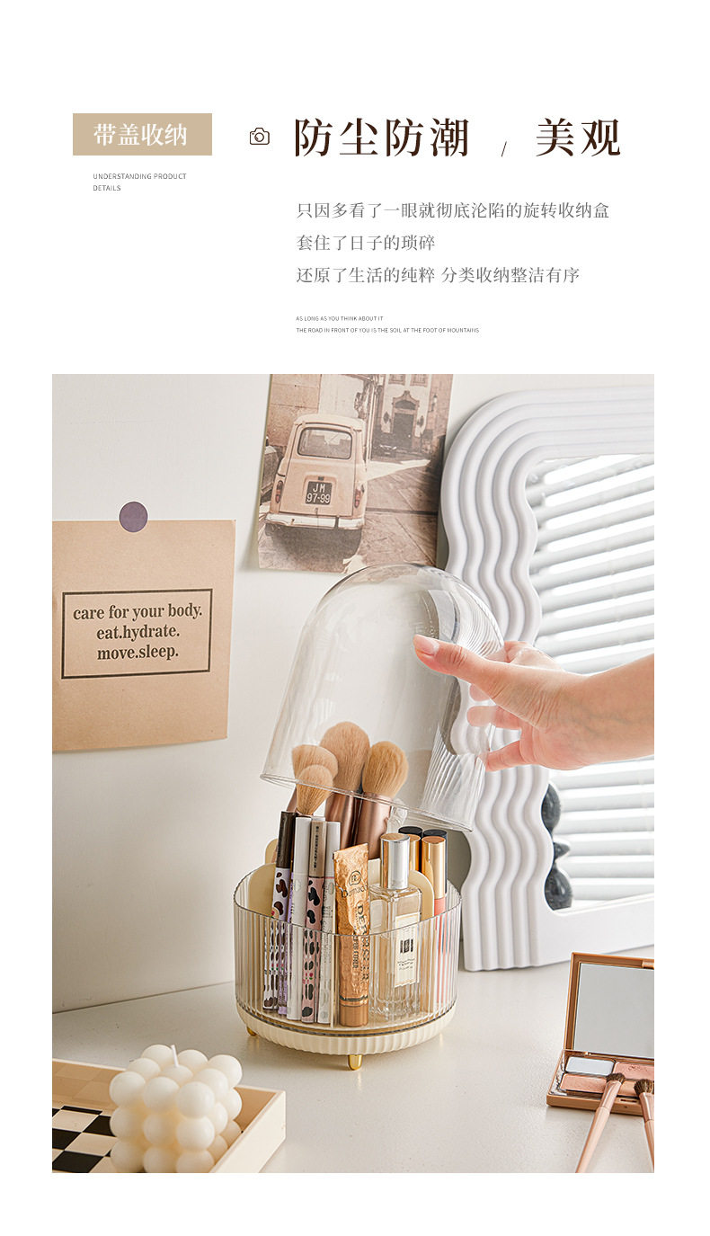Light Luxury Style ins Cosmetic Storage Box Rotating Split Dustproof Skin Care Products with Lid Desktop Dressing Table Filing Box