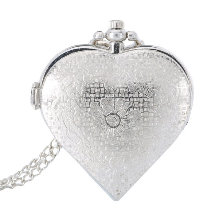 Cross-border hot sale retro hollow heart-shaped silver pocket watch creative flip quartz hanging chain Love pocket watch factory direct sales