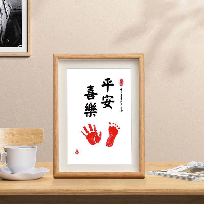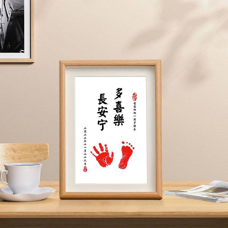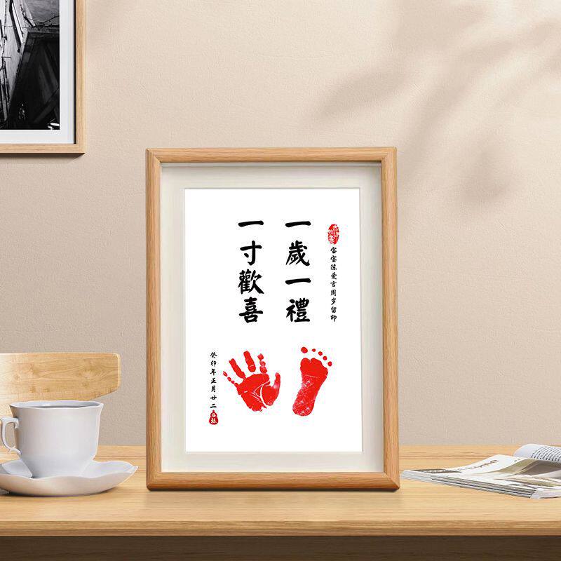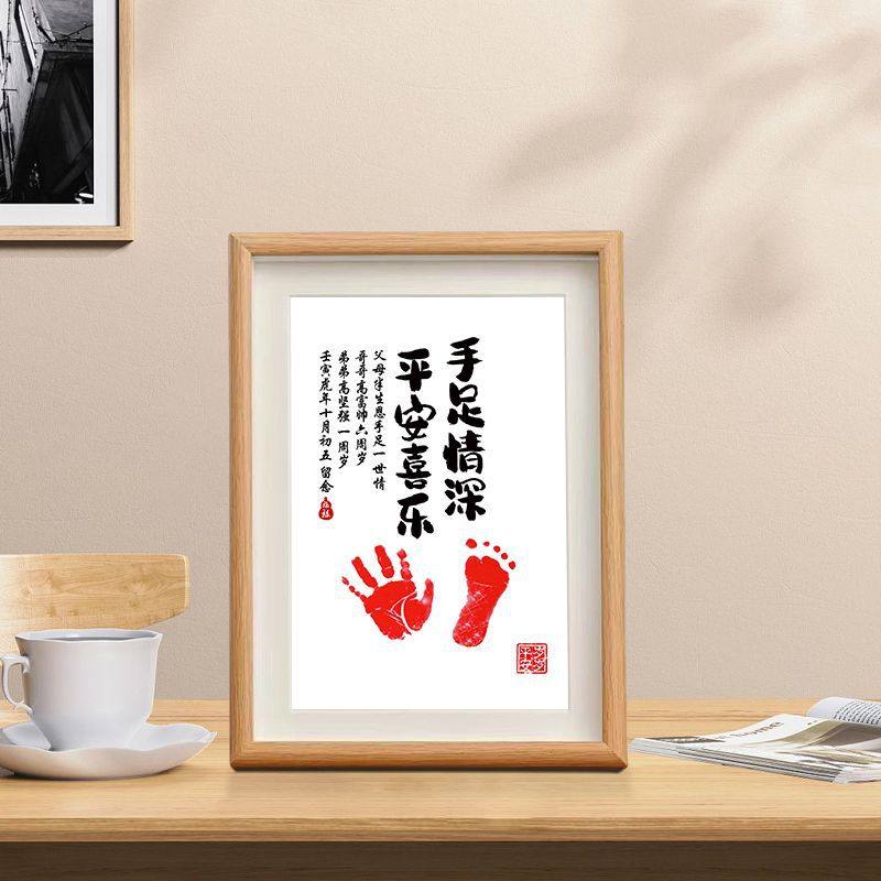 Baby's First Birthday Props, One-Month-Old Hand and Foot Print Photo Frame, Baby Souvenir Solid Wood Photo Frame