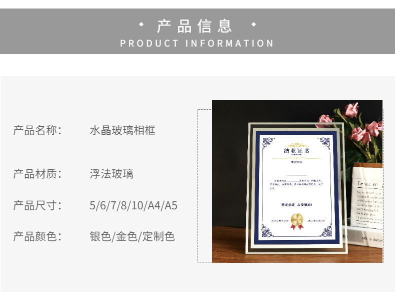Simple glass photo frame transparent table 56 inch 7 inch 8 inch 10 inch A4 scenic crystal table photo frame manufacturers wholesale