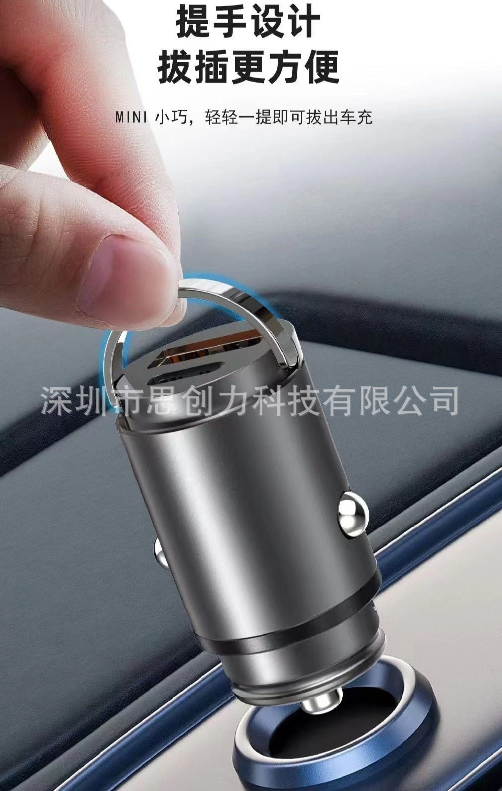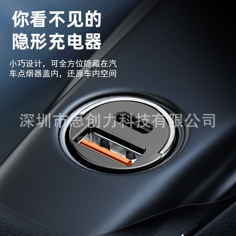 Metal Car Charger Fast Charging Mobile Phone Charging Portable Pull Ring New Hidden Mini Car Charger Car Supplies