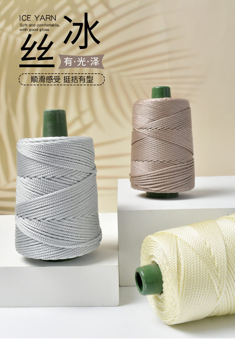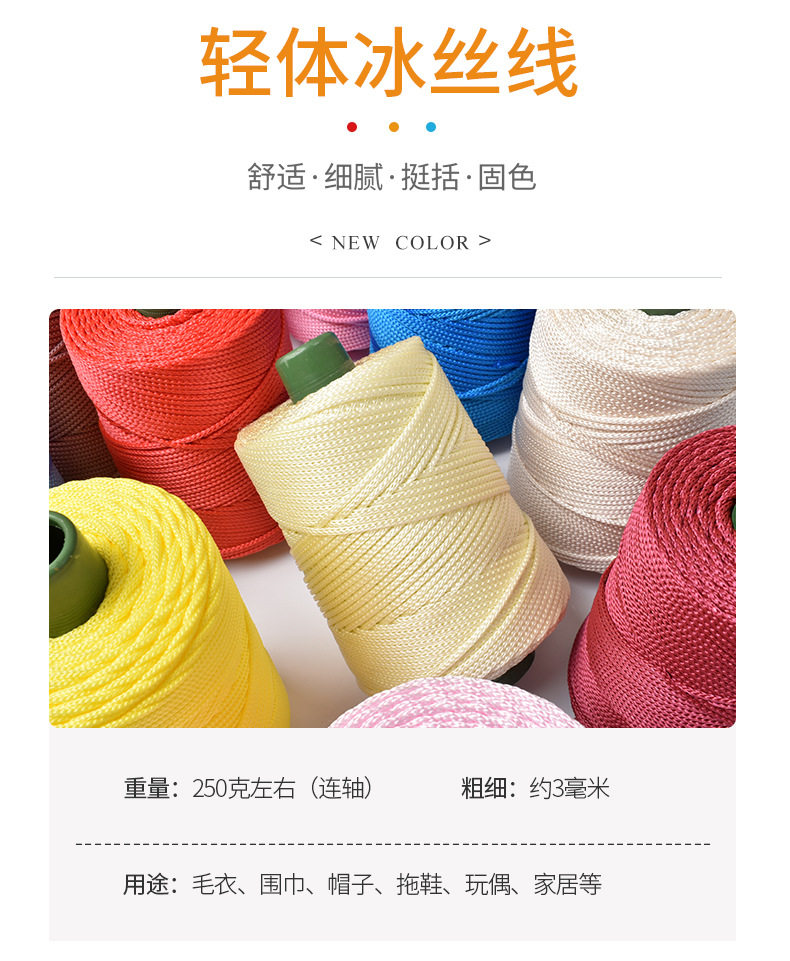 Light body ice silk thread ice twine summer sun hat hand woven diy hook bag cushion blanket hollow bright silk coarse wool