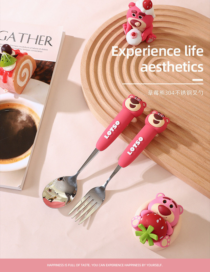 Strawberry Bear 304 Stainless Steel Spoon Cute Spoon Fork Set Baby Small Spoon Home Eating Kidsren's Table Spoon