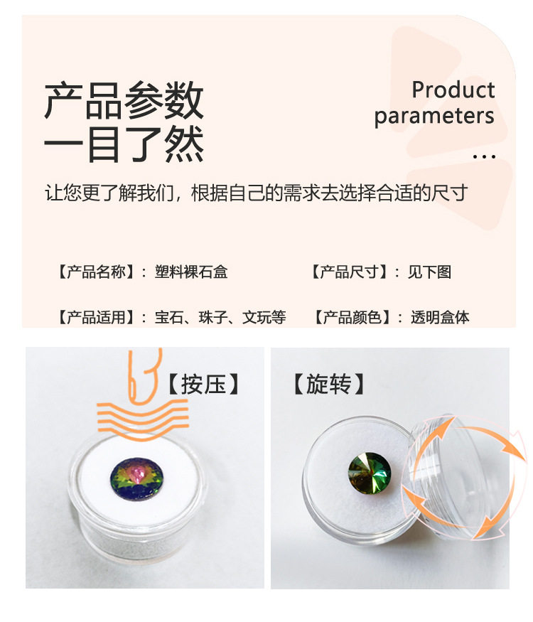 Jewelry Gem Naked Diamond Storage Box Jewelry Wen Play Jewelry Sample Display Box Plastic Round