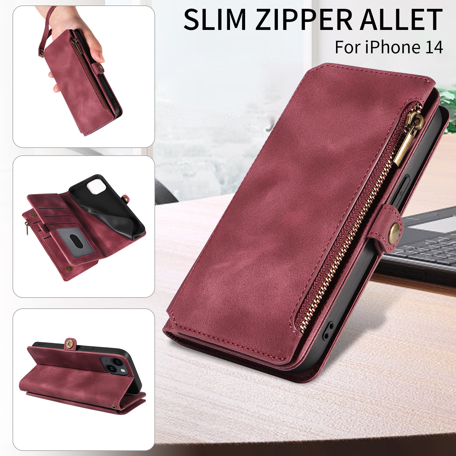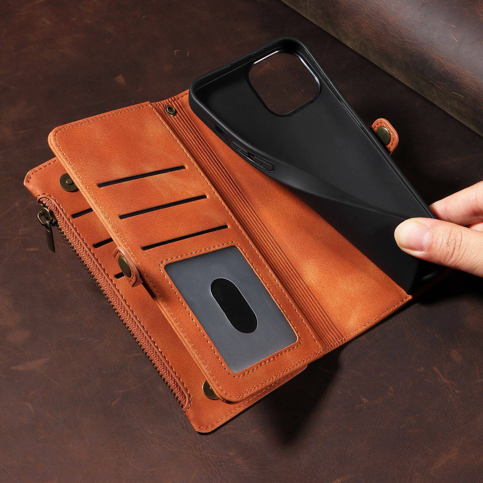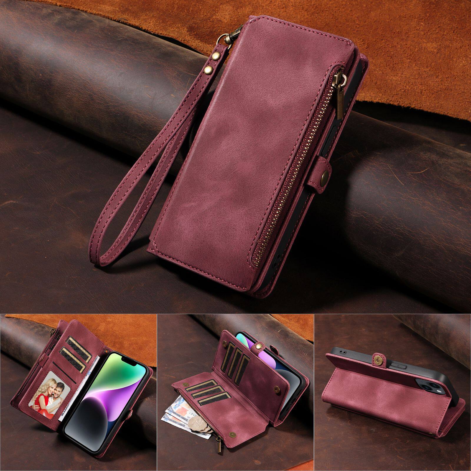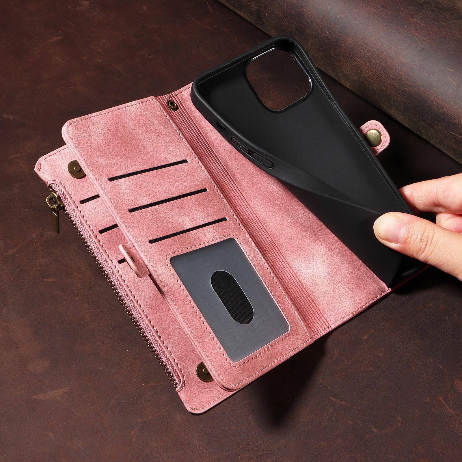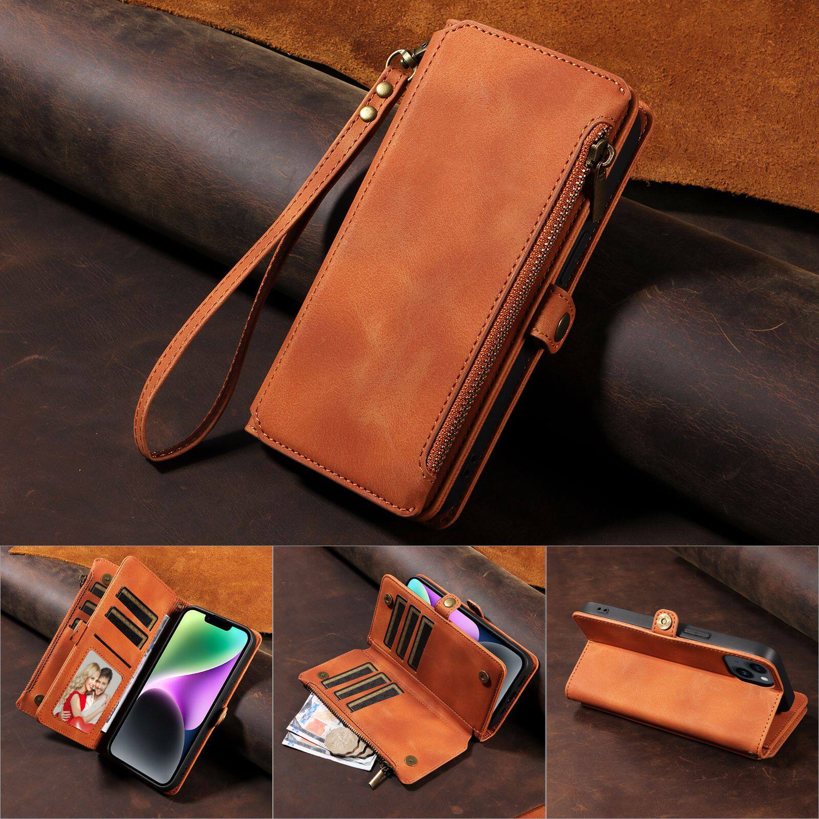 Suitable for iPhone 17 Pro Max Phone Case, Apple 16E Phone Leather Case, 15 Flip Cover Zipper Wallet Protective Case