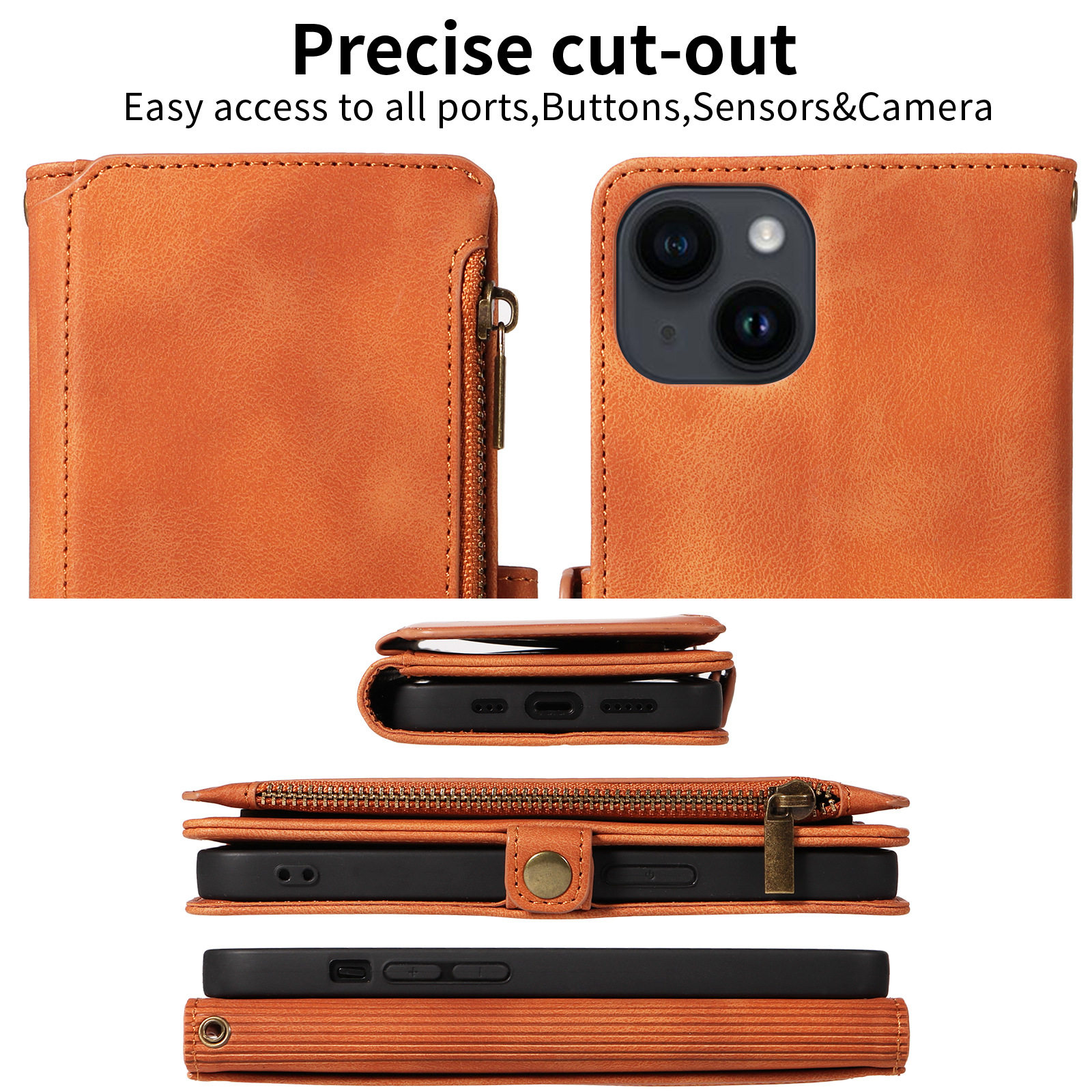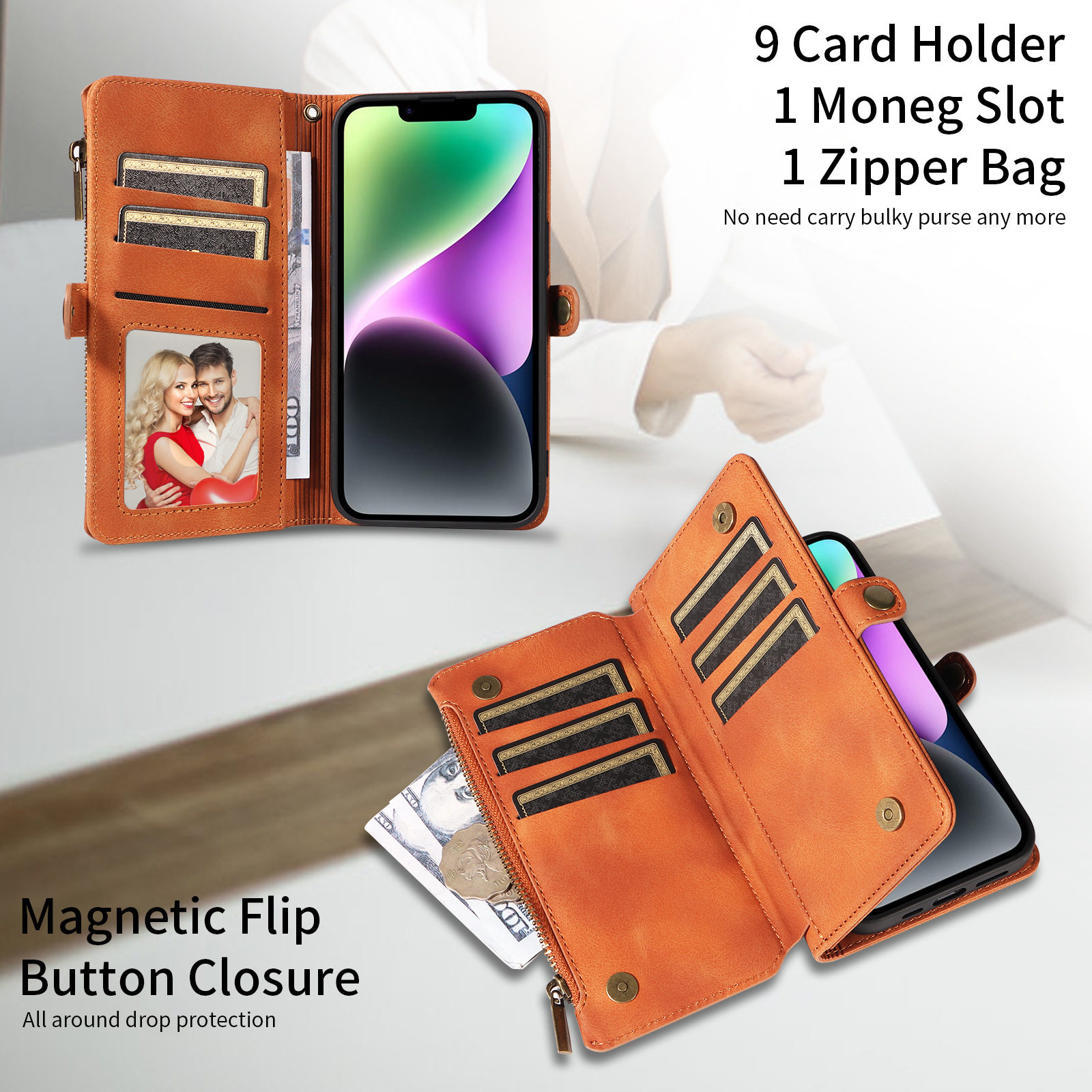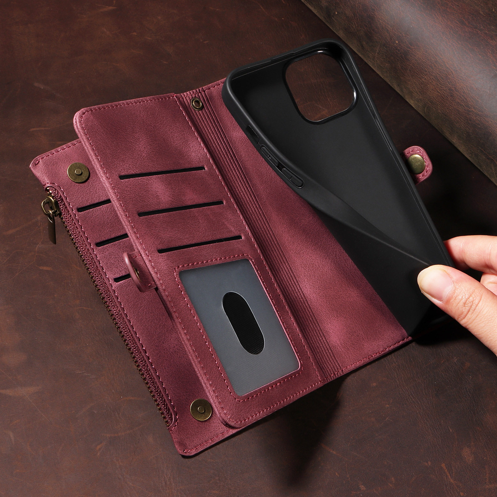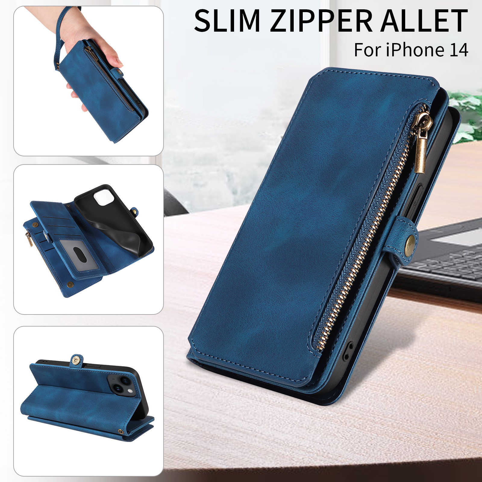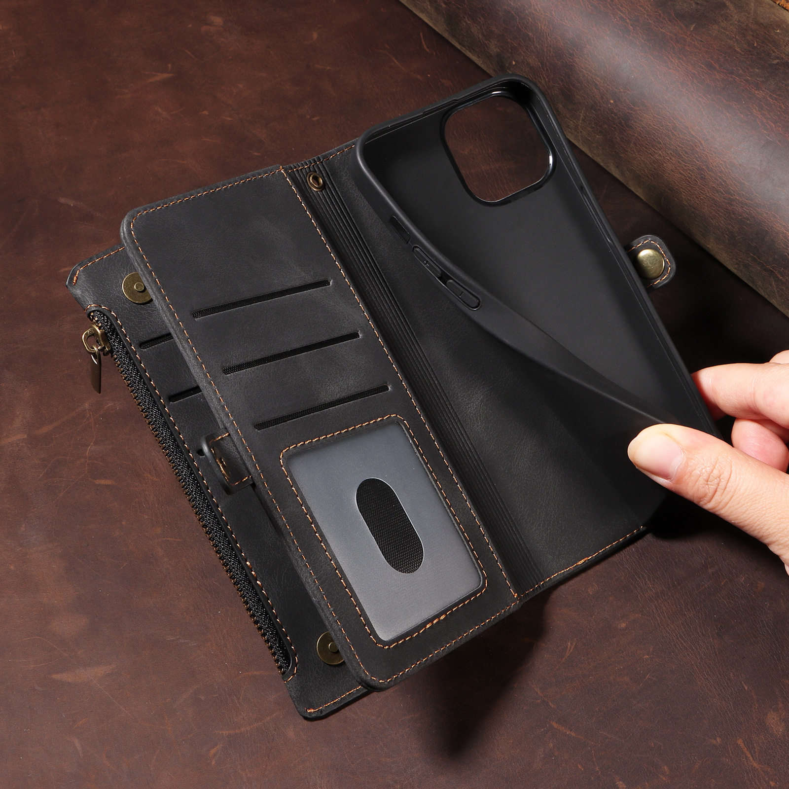 Suitable for iPhone 17 Pro Max Phone Case, Apple 16E Phone Leather Case, 15 Flip Cover Zipper Wallet Protective Case