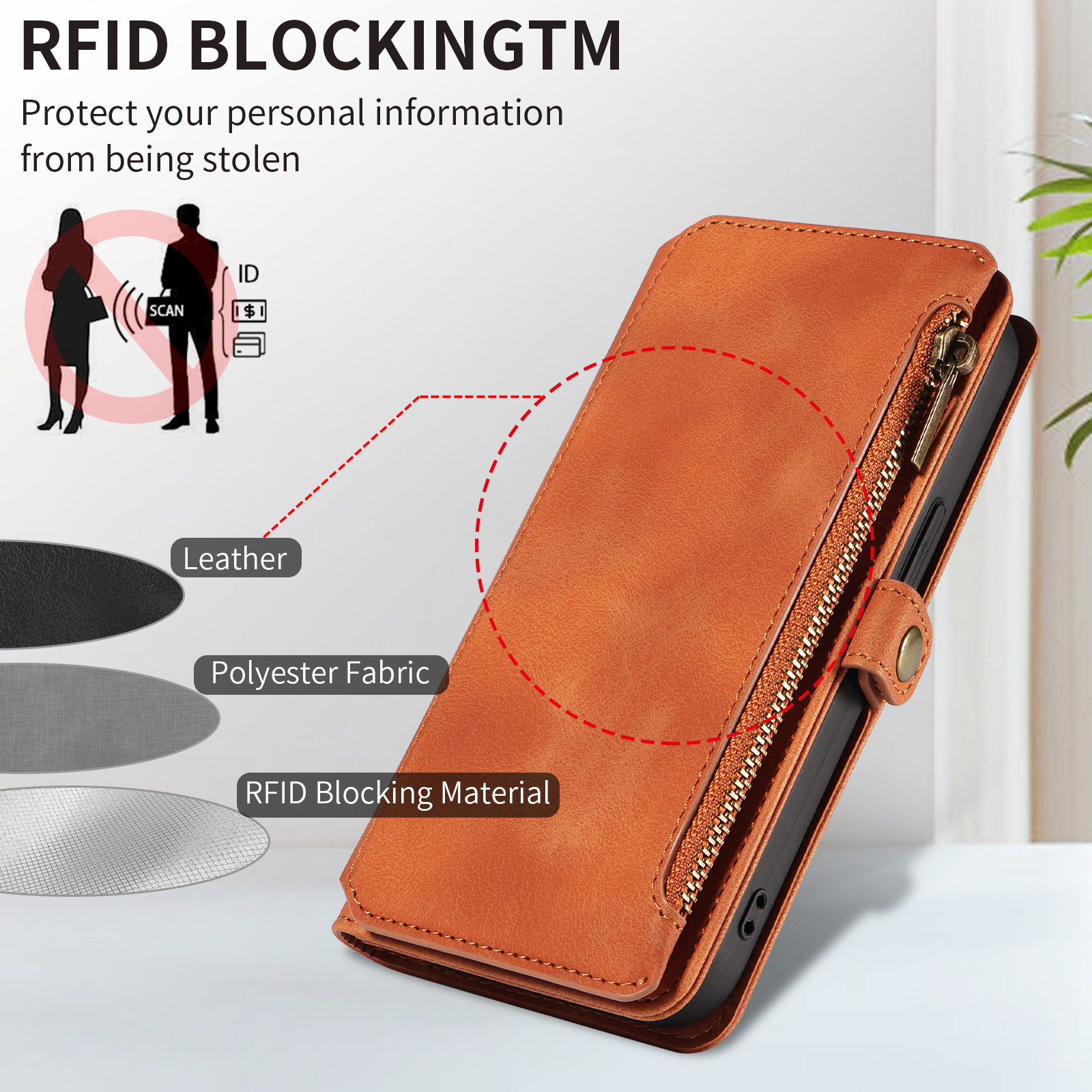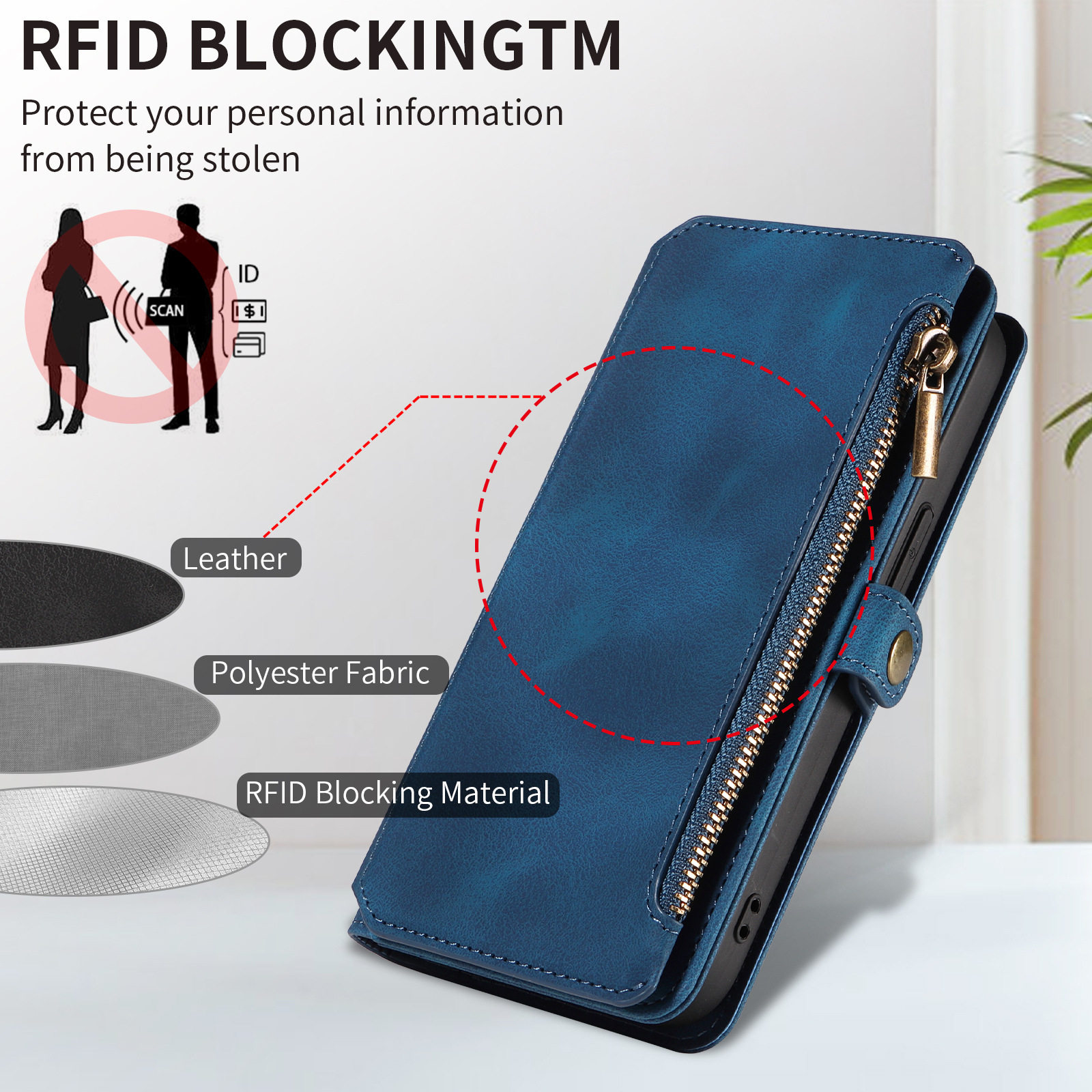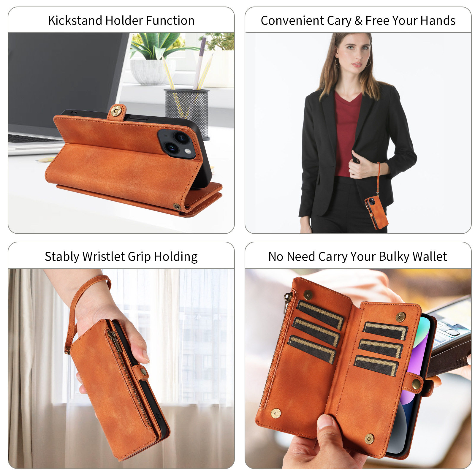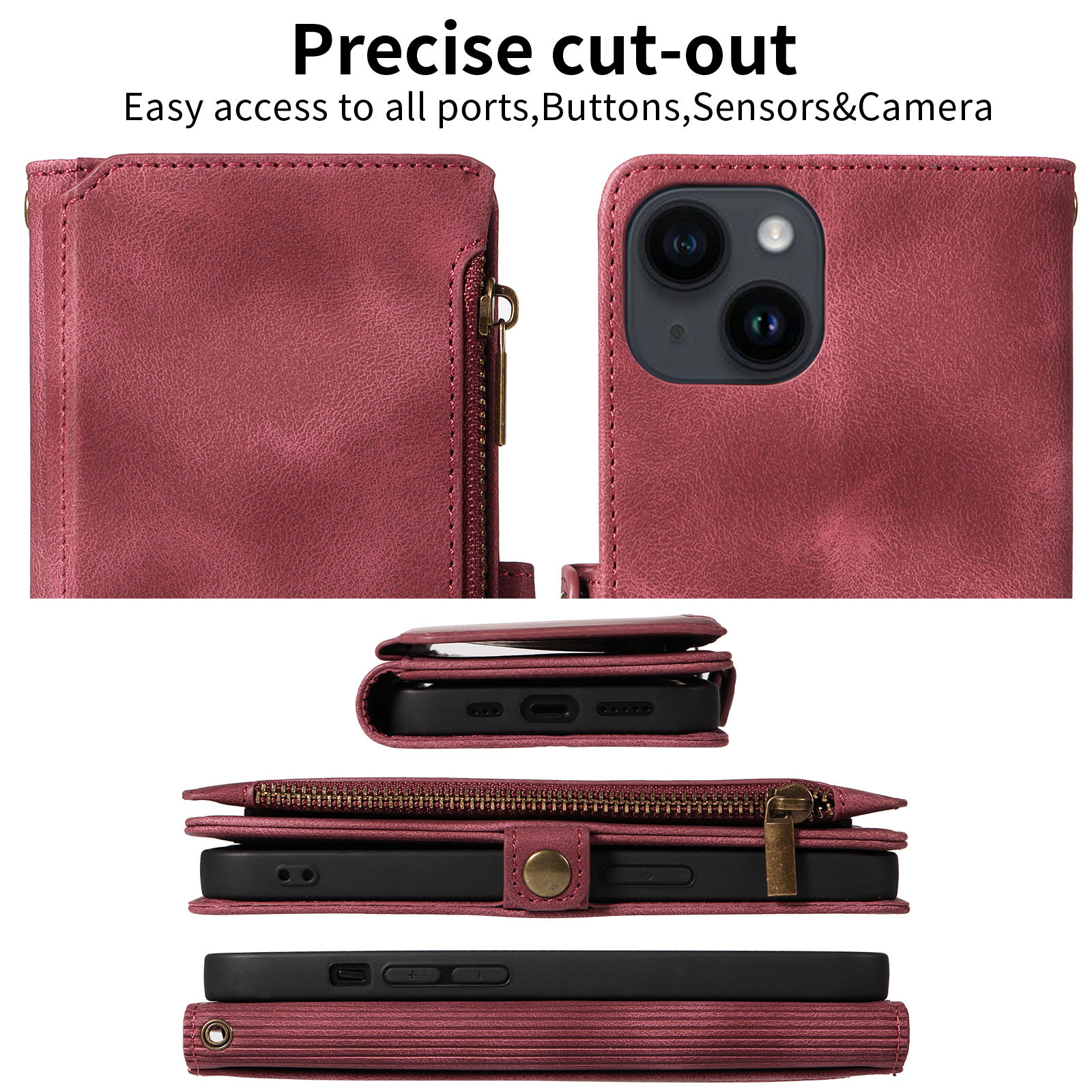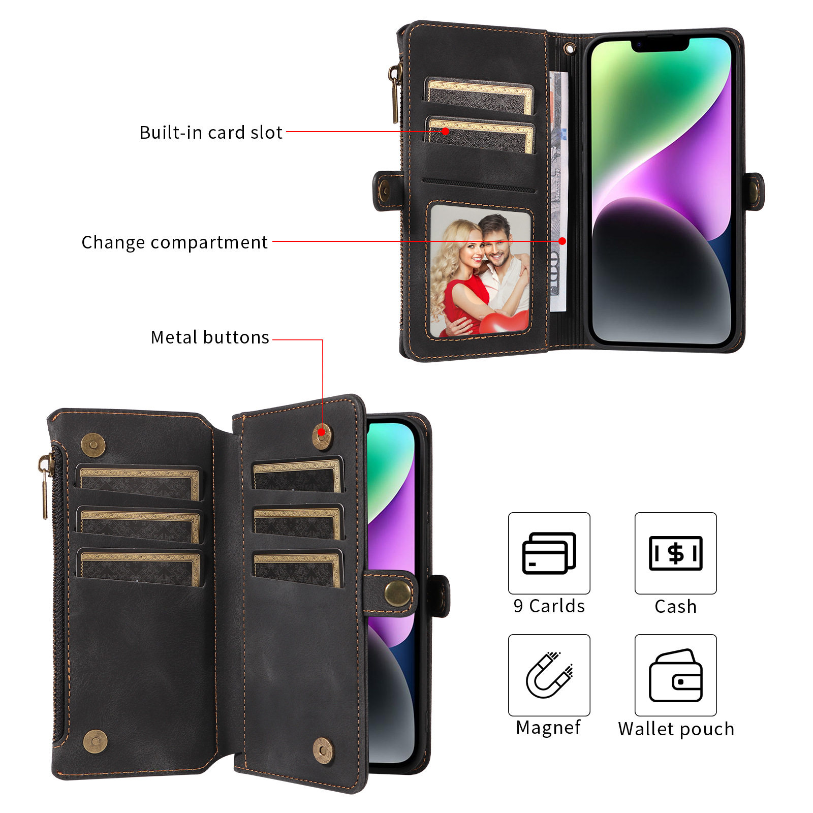 Suitable for iPhone 17 Pro Max Phone Case, Apple 16E Phone Leather Case, 15 Flip Cover Zipper Wallet Protective Case