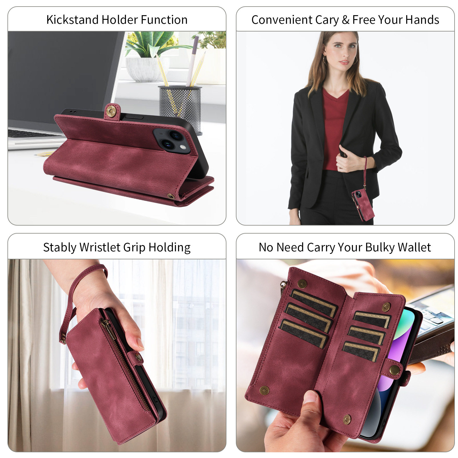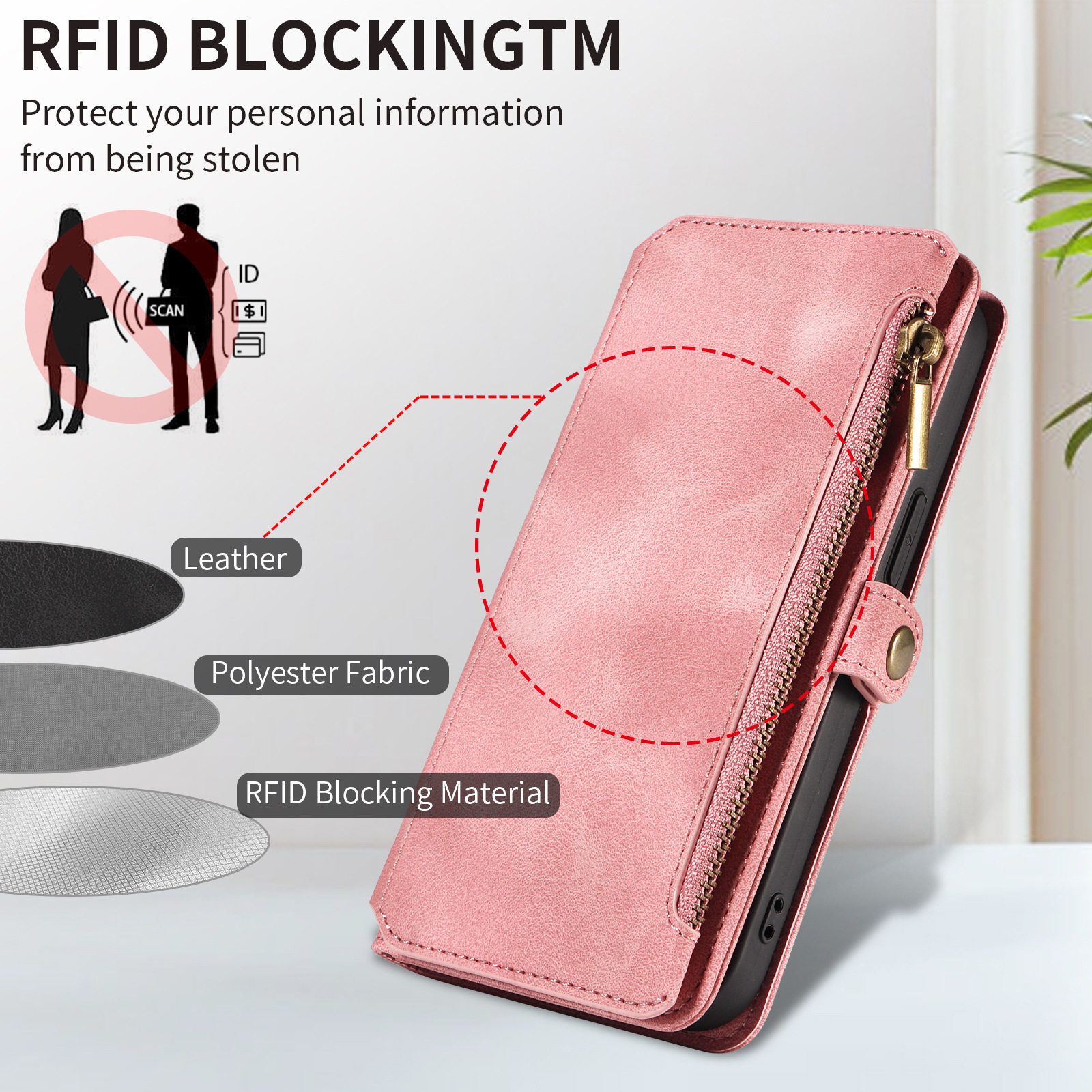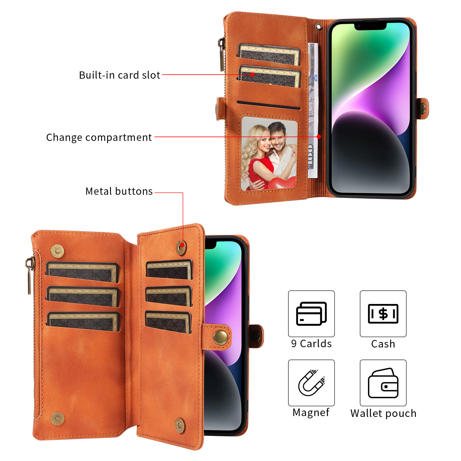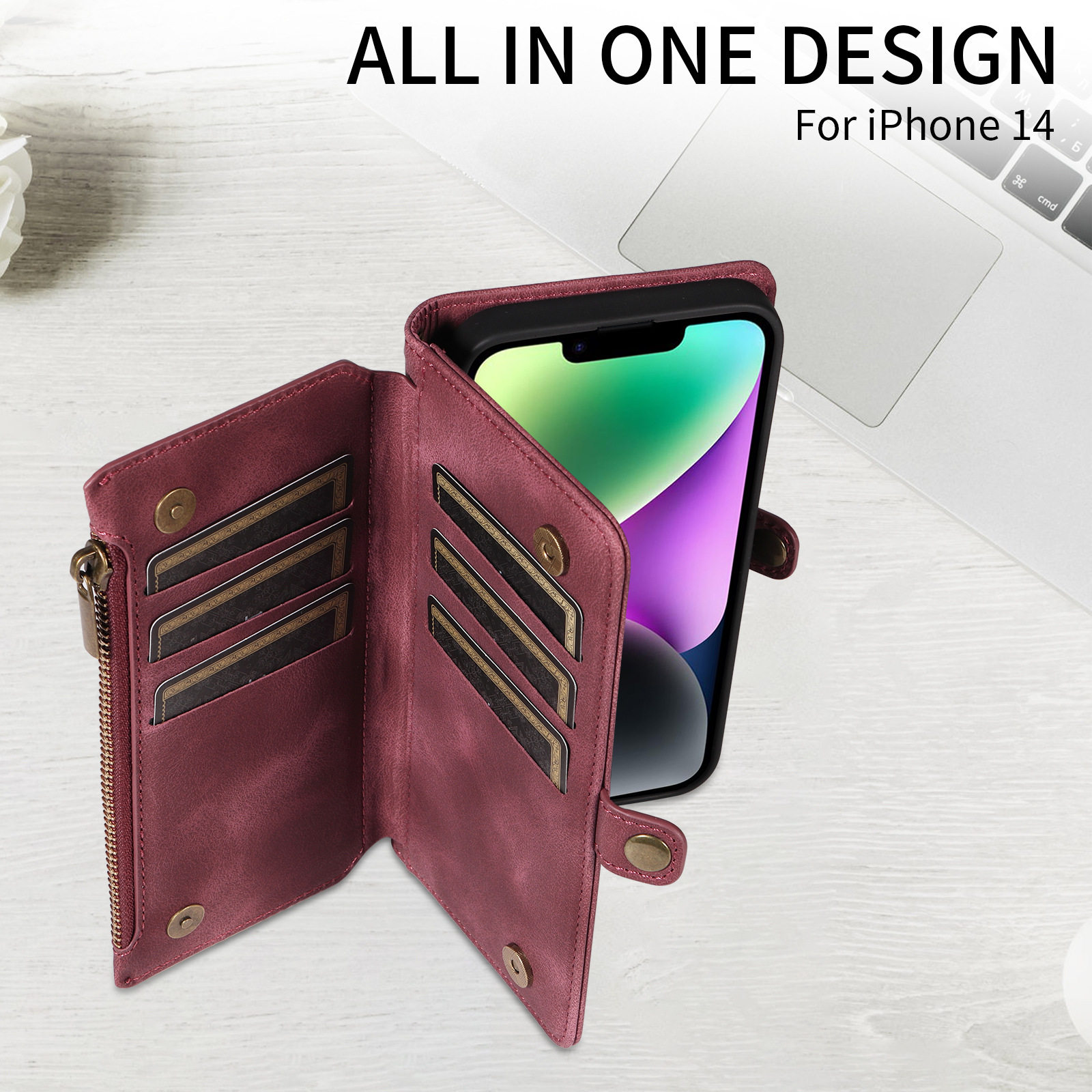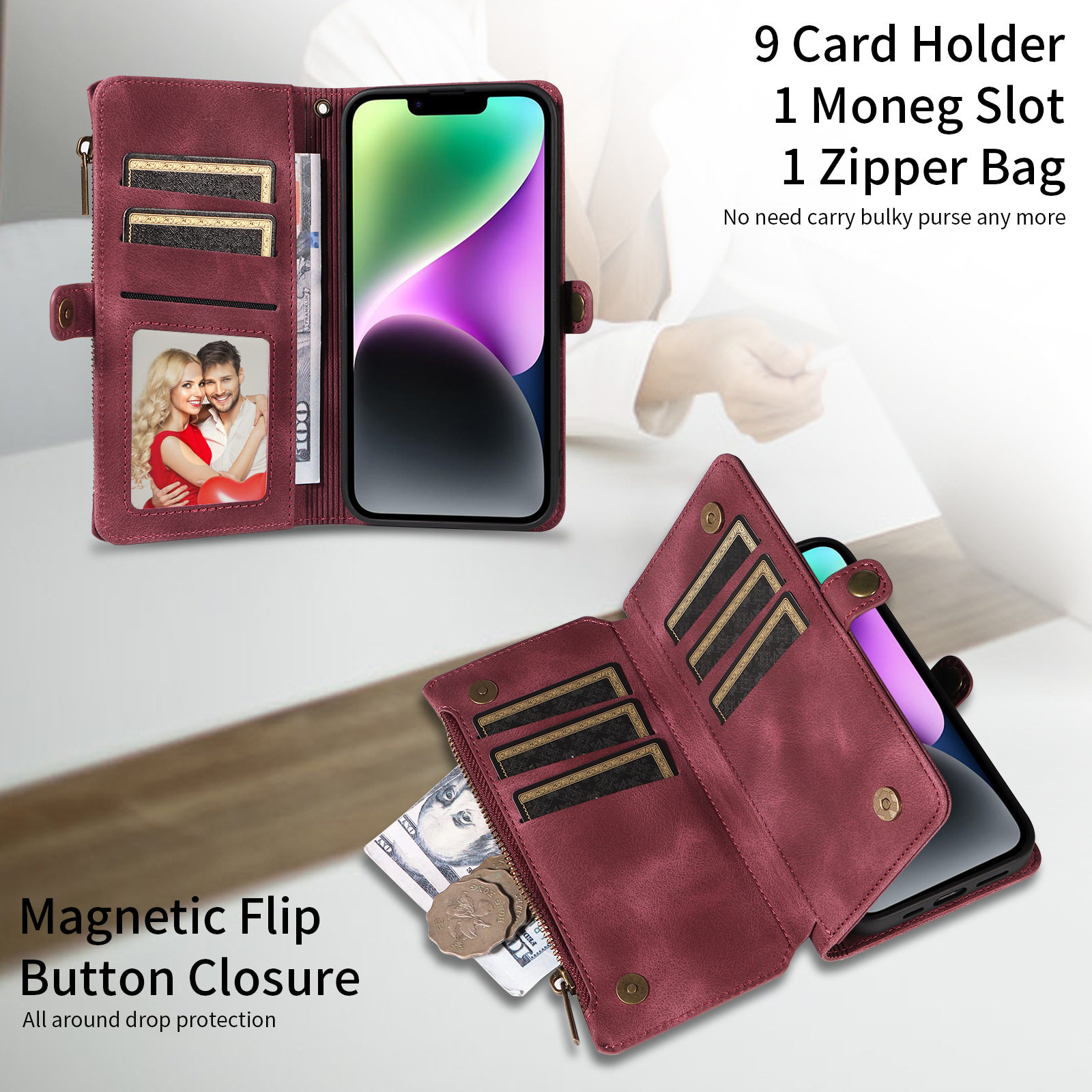 Suitable for iPhone 17 Pro Max Phone Case, Apple 16E Phone Leather Case, 15 Flip Cover Zipper Wallet Protective Case