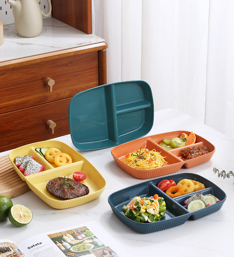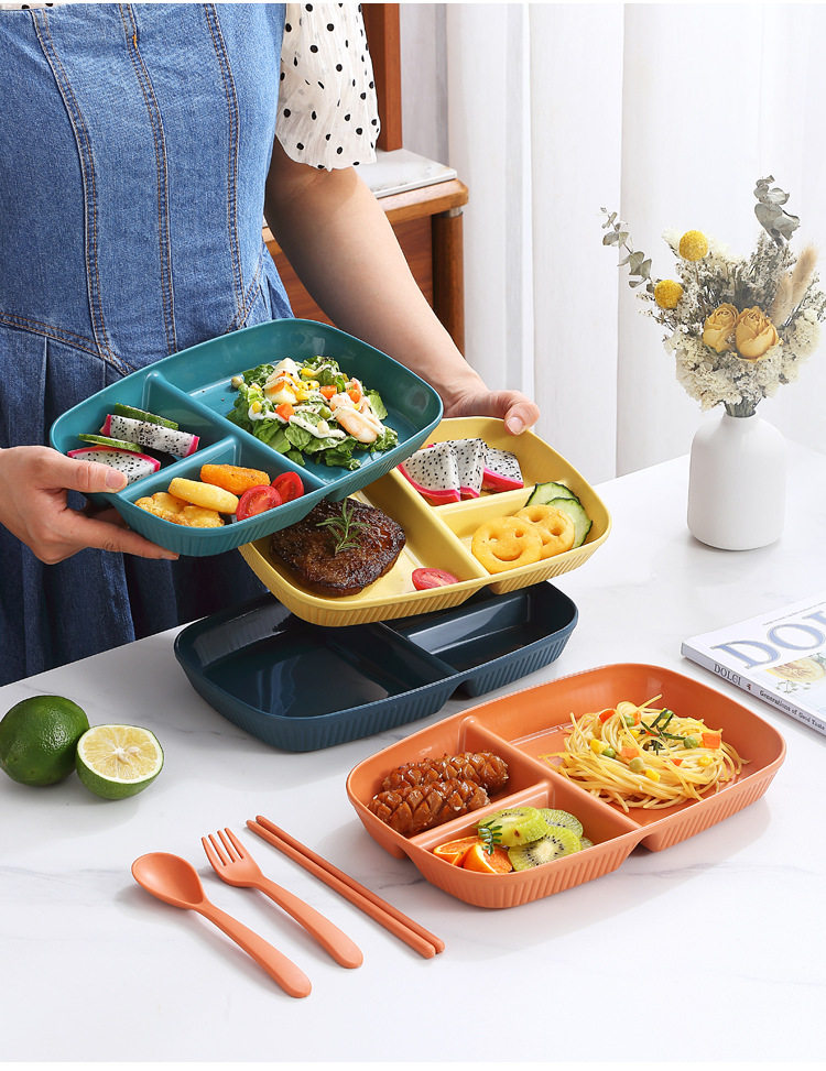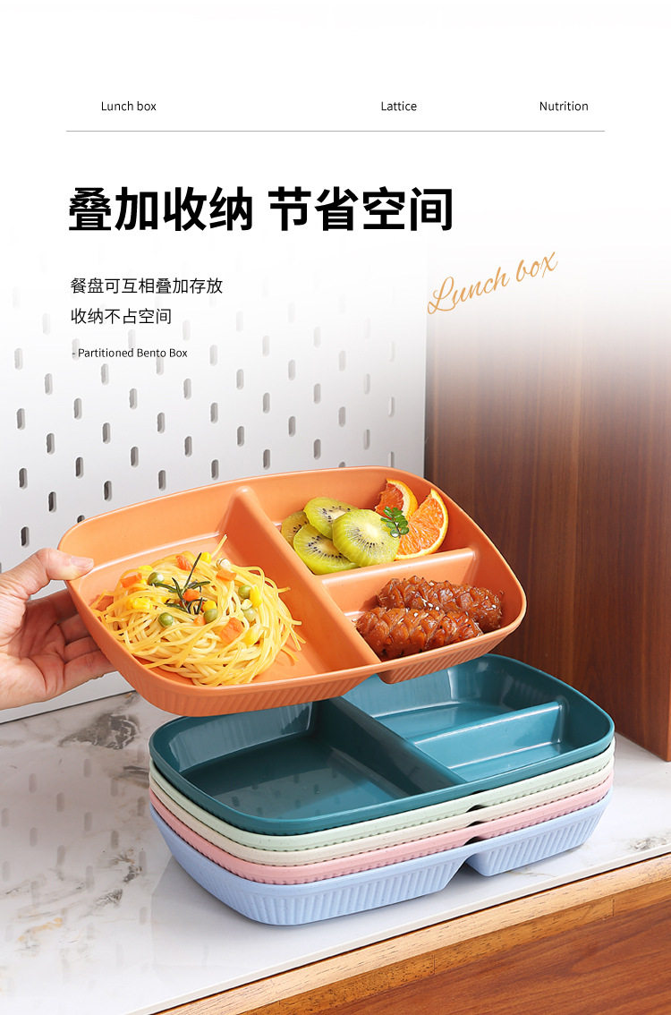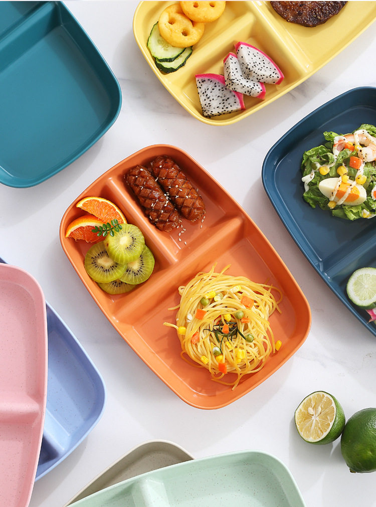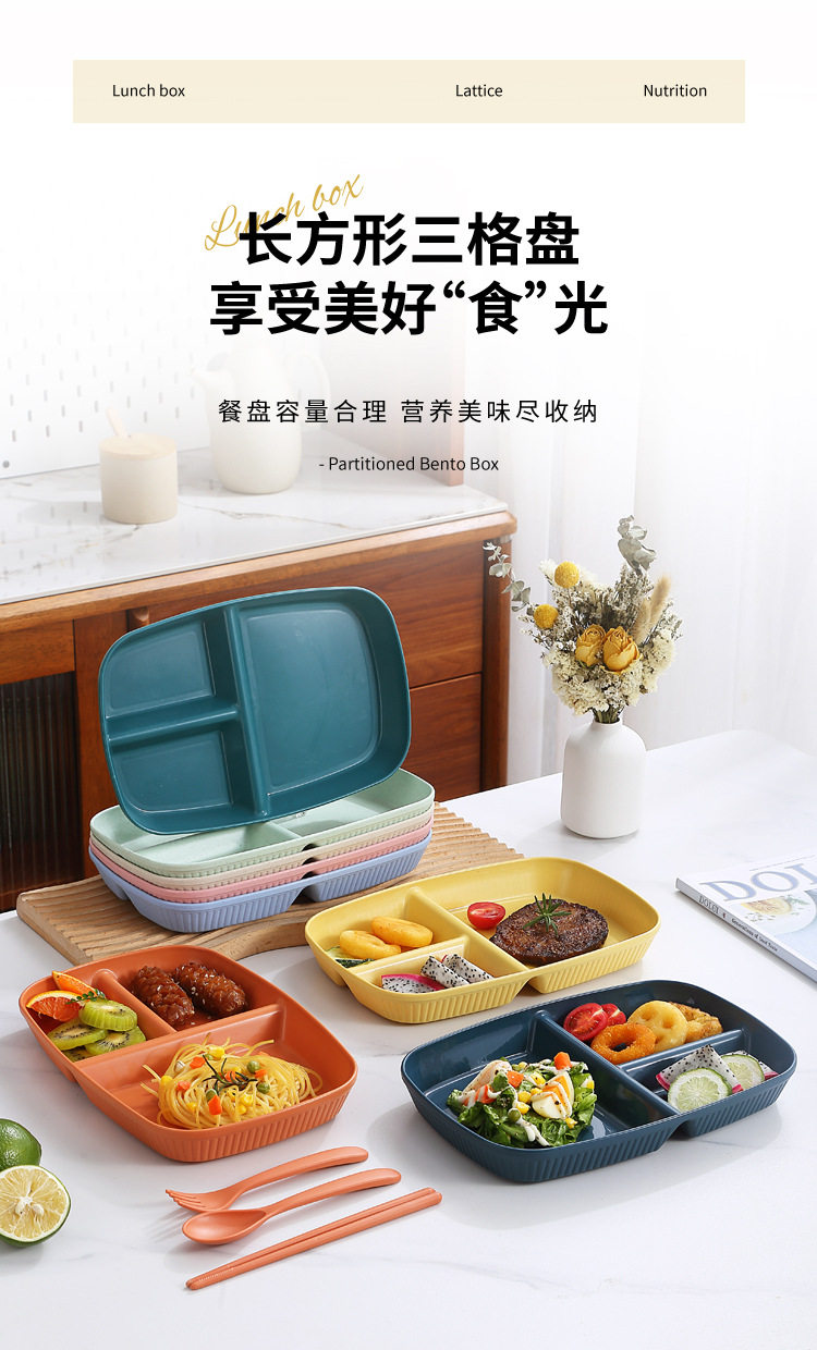 Wheat Straw Divided Dinner Plate, Fat-Reducing Plate, Rectangular High-Looking Anti-Fall Rice Plate, Home Breakfast Plate, Fruit Plate