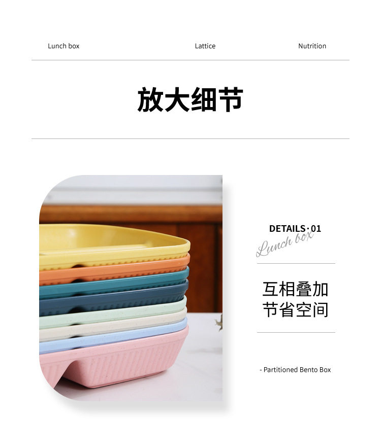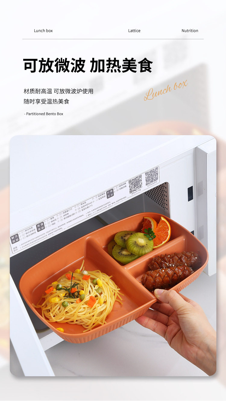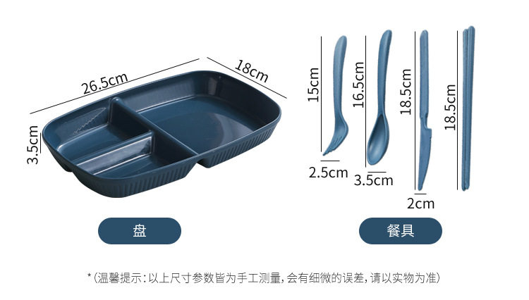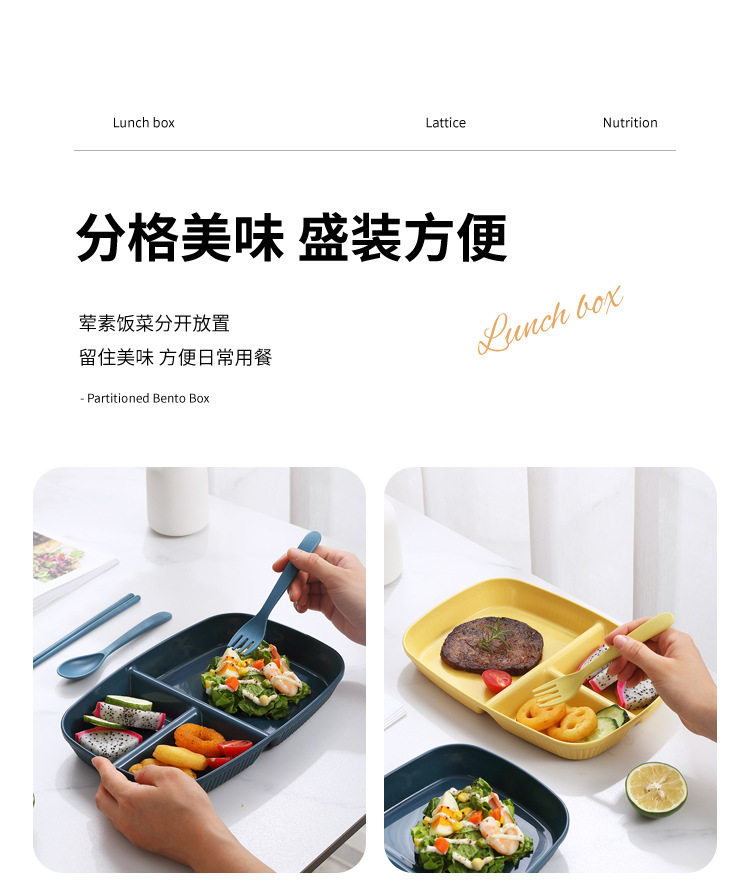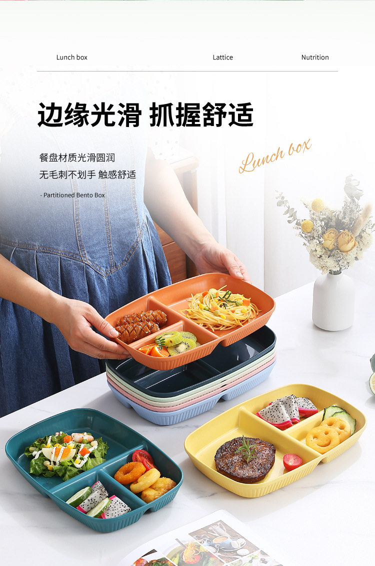 Wheat Straw Divided Dinner Plate, Fat-Reducing Plate, Rectangular High-Looking Anti-Fall Rice Plate, Home Breakfast Plate, Fruit Plate