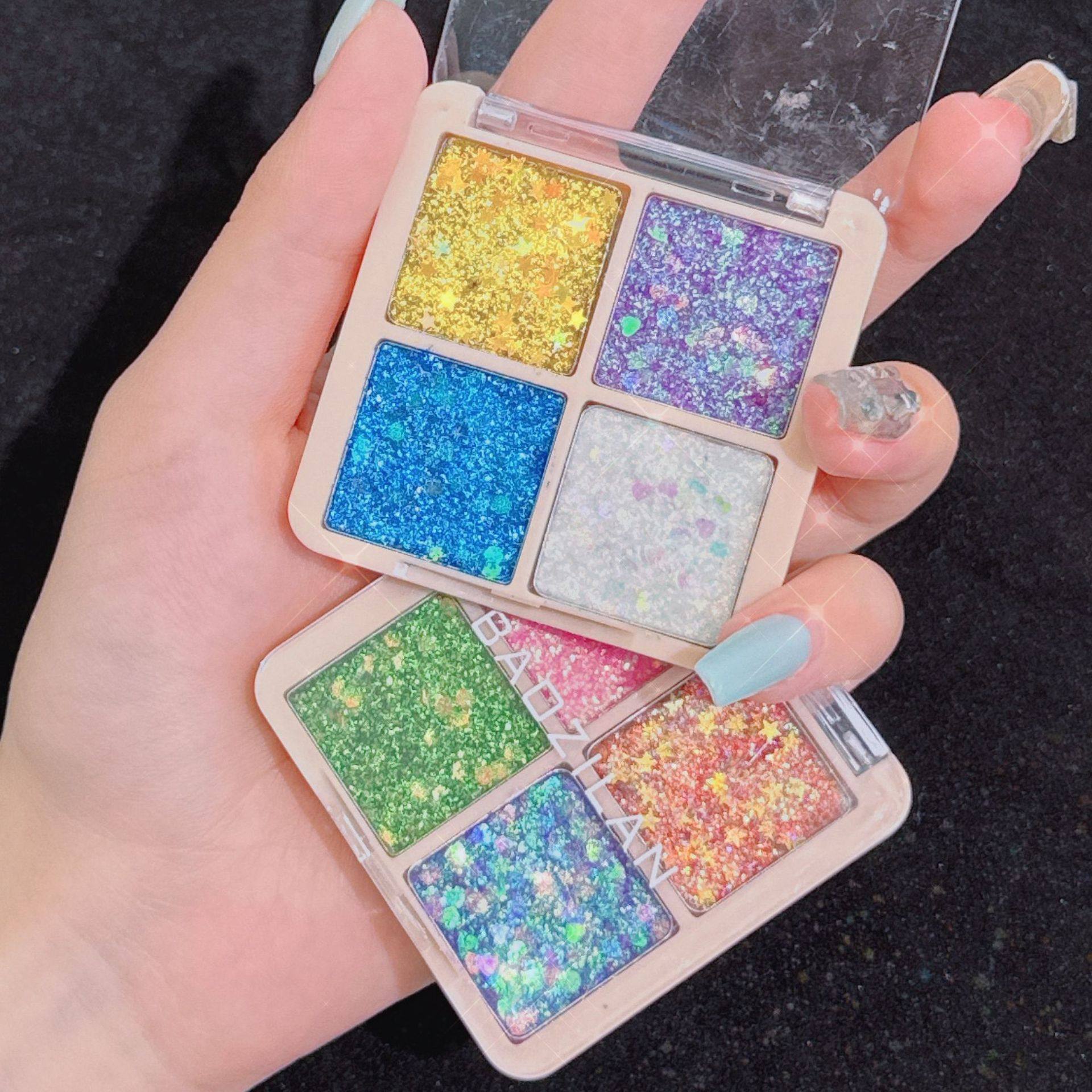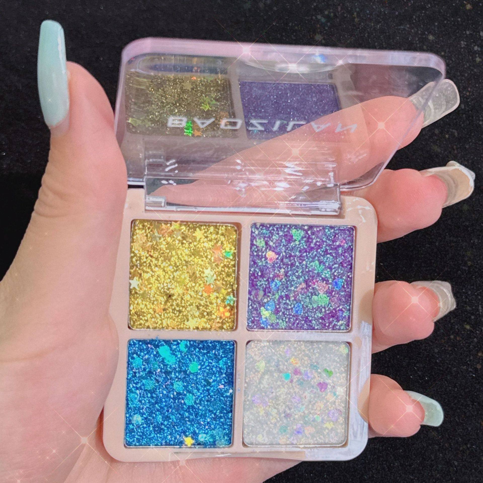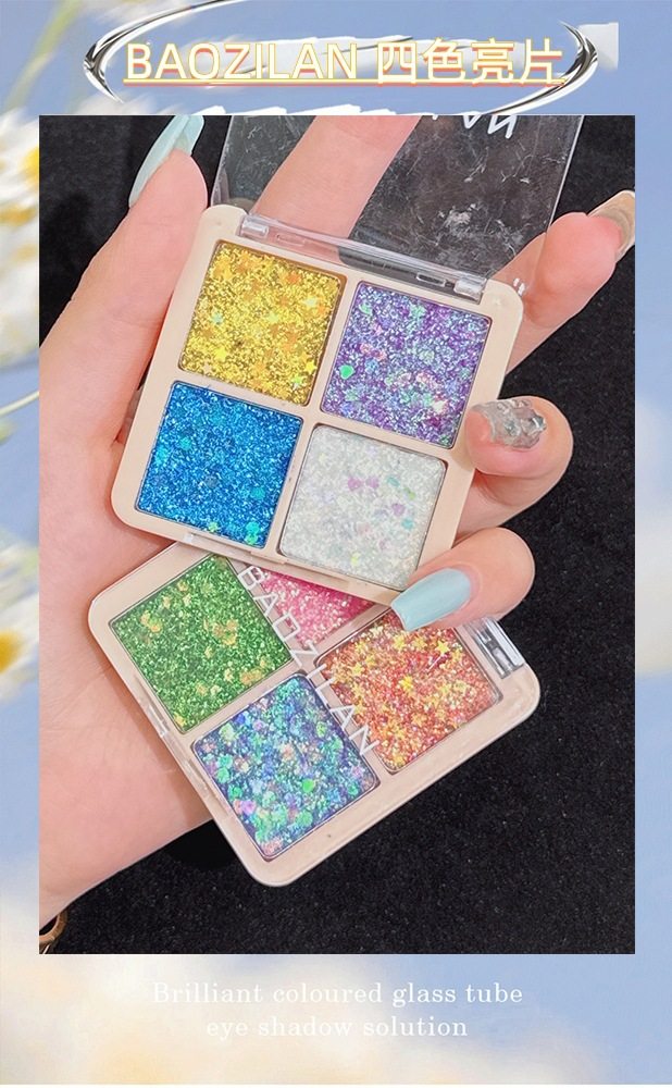 Baozilan Four-Color Sequin Eye Shadow Glitter Kidsren's Gel Stage Makeup Bling Glitter Eye Shadow Palette Cross-Border