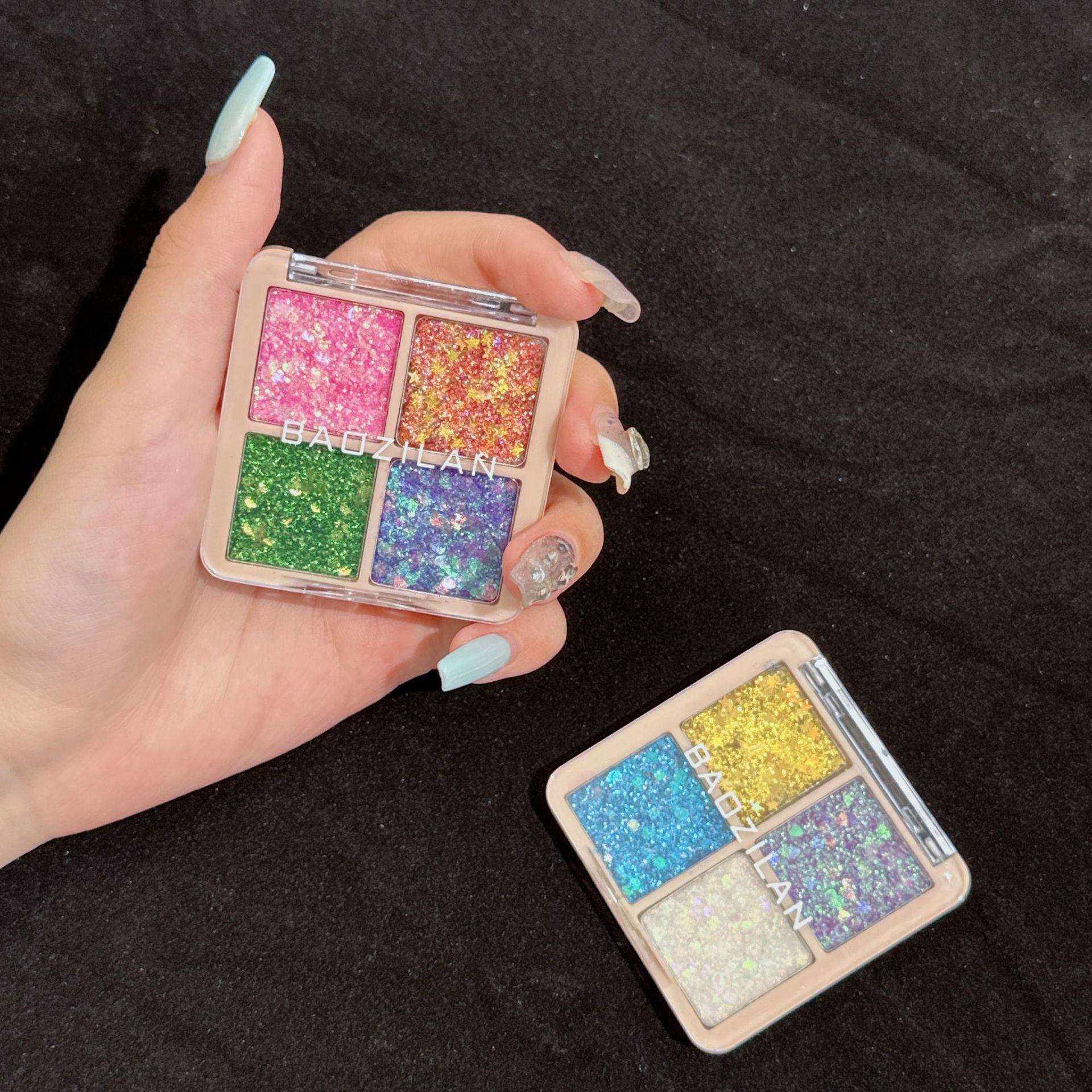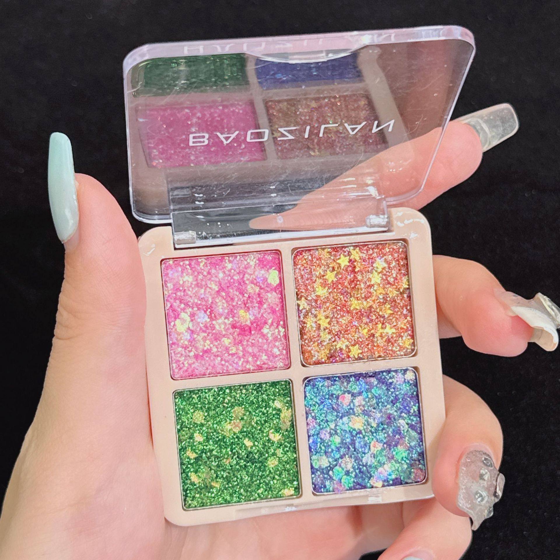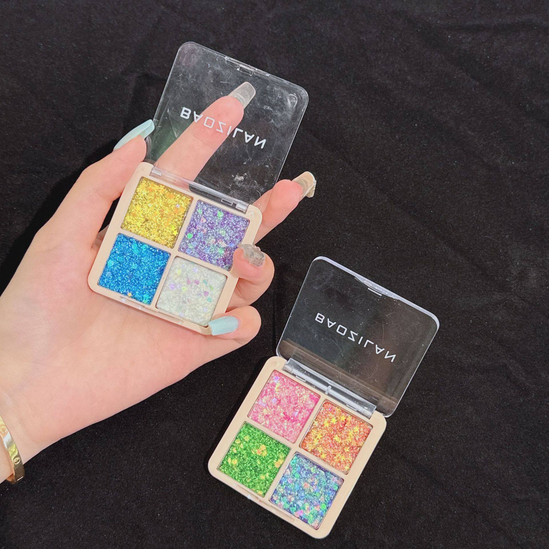 Baozilan Four-Color Sequin Eye Shadow Glitter Kidsren's Gel Stage Makeup Bling Glitter Eye Shadow Palette Cross-Border