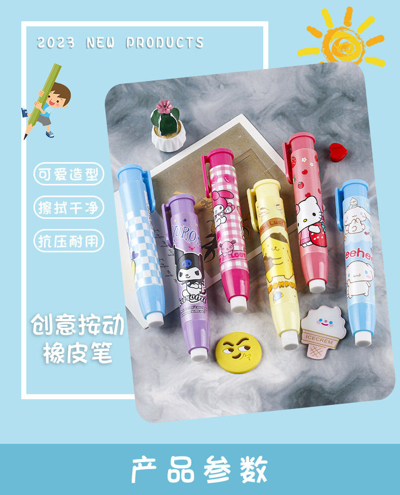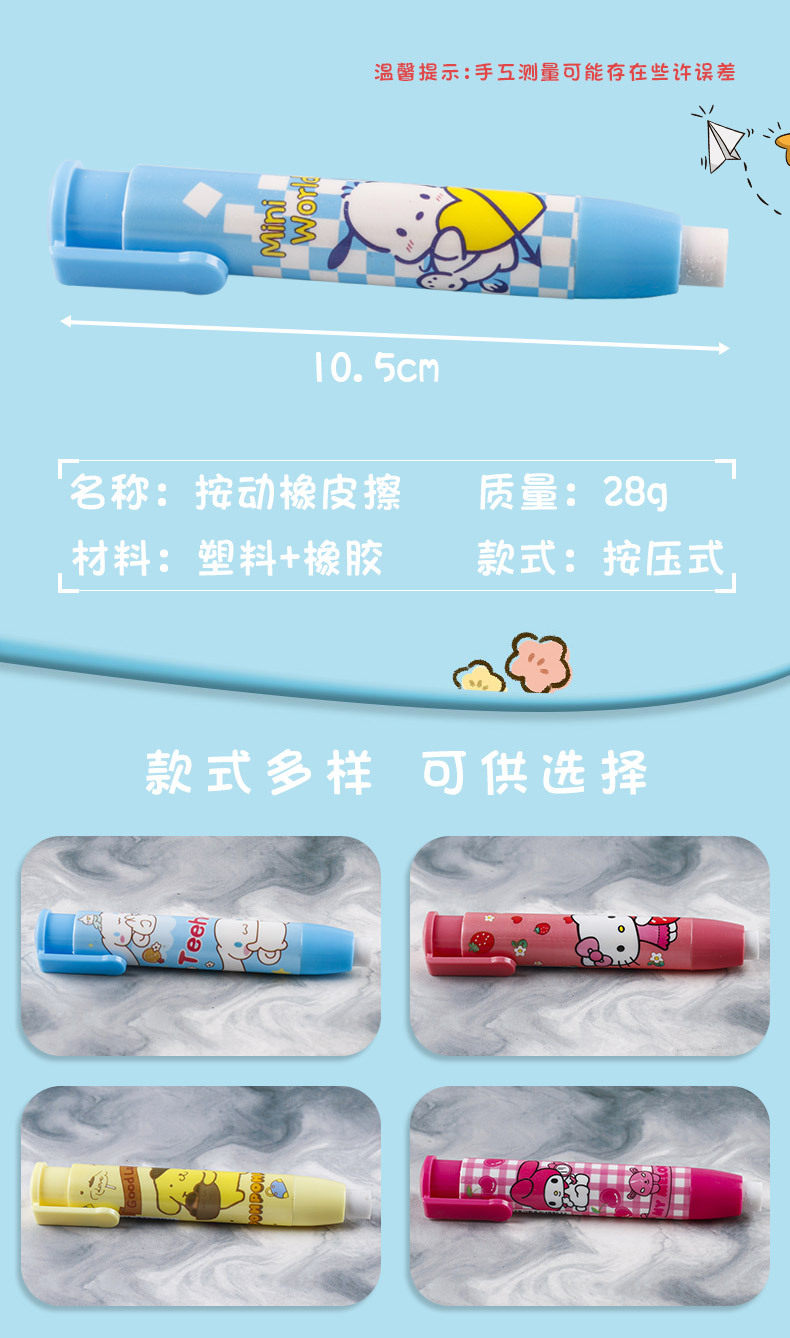 | Specification | Cartoon animal series (random one),Astronaut series (random one),Cartoon animal bag with rubber button (random bag),Little dinosaur presses the rubber (1 piece),Cartoon animal boxed push rubber,Astronaut boxed push button rubber,Puppy presses the rubber (randomly mixed hair) |