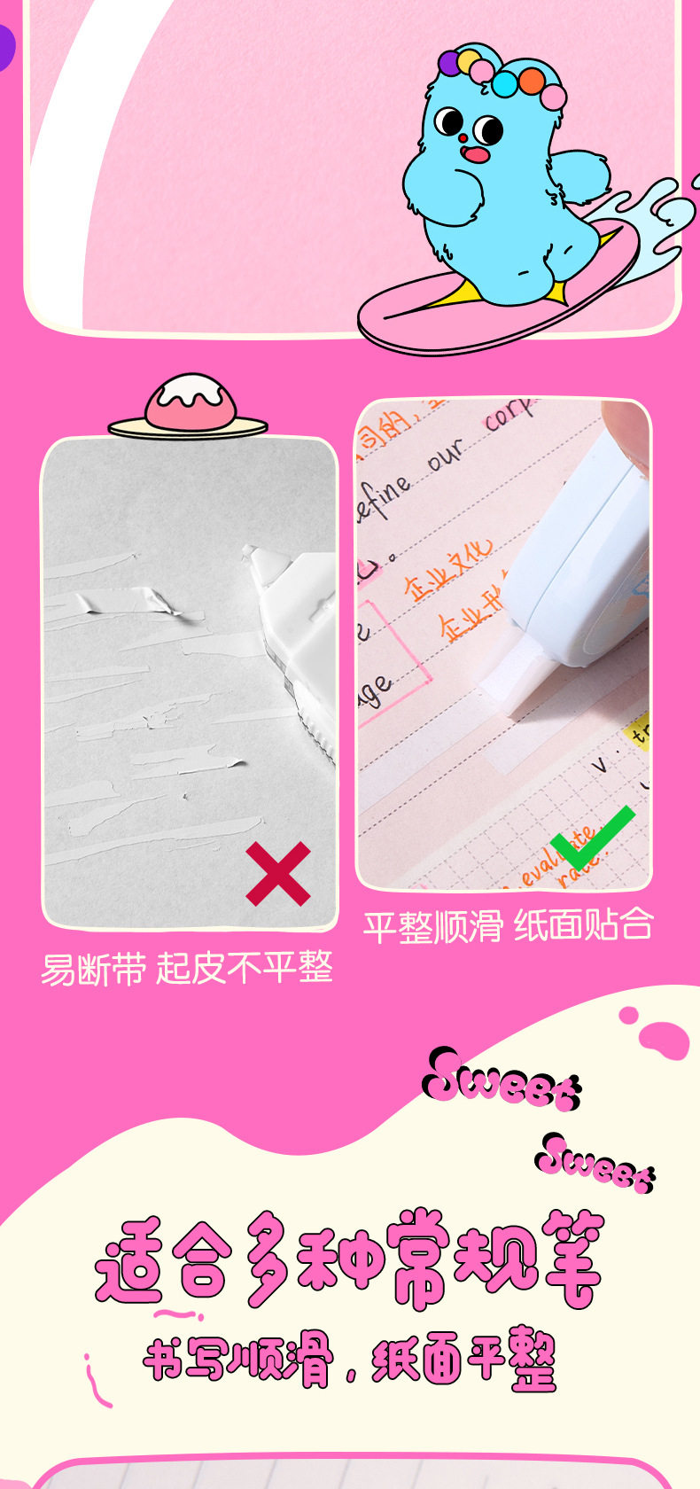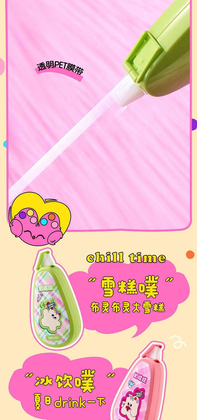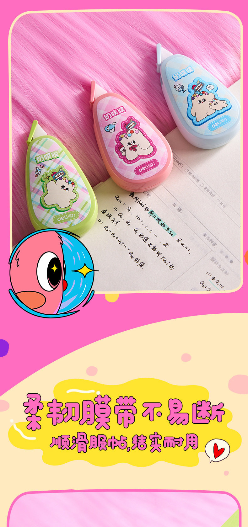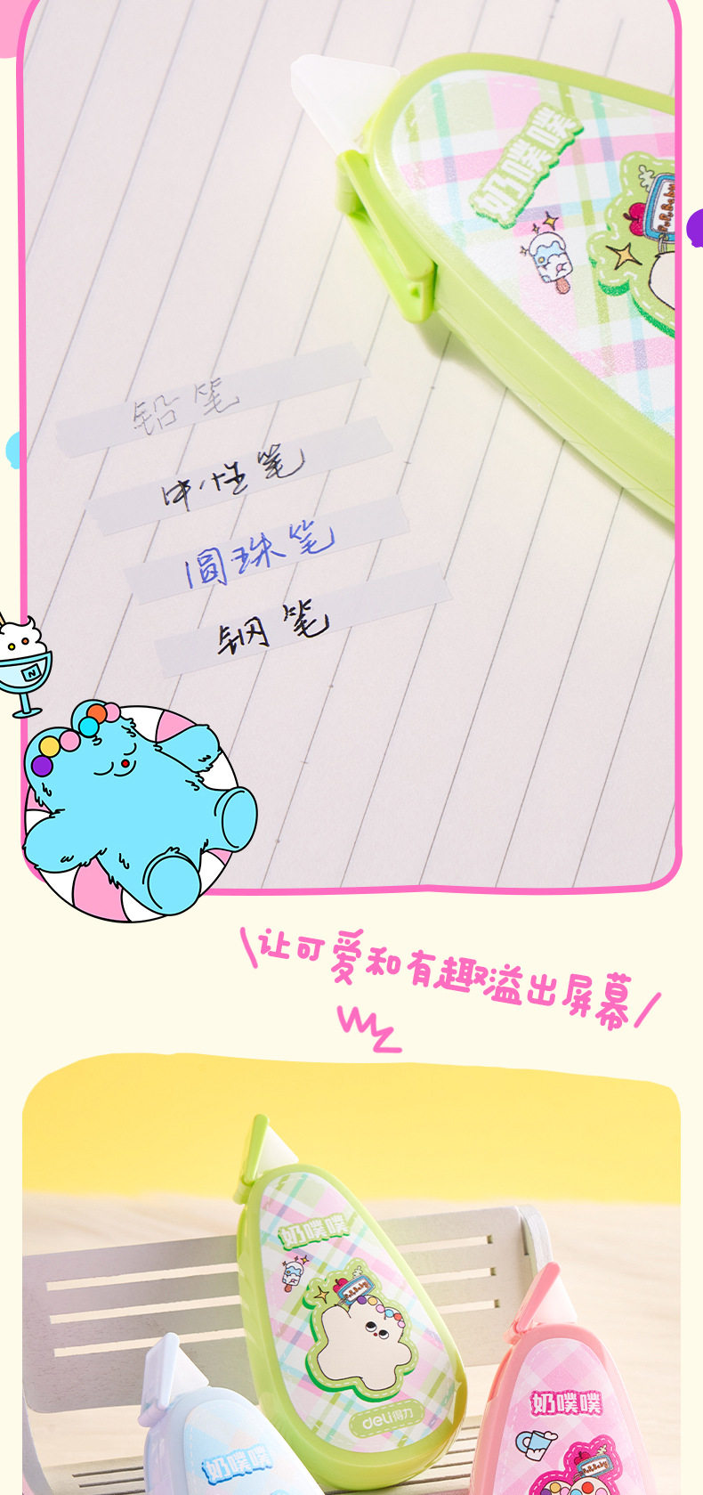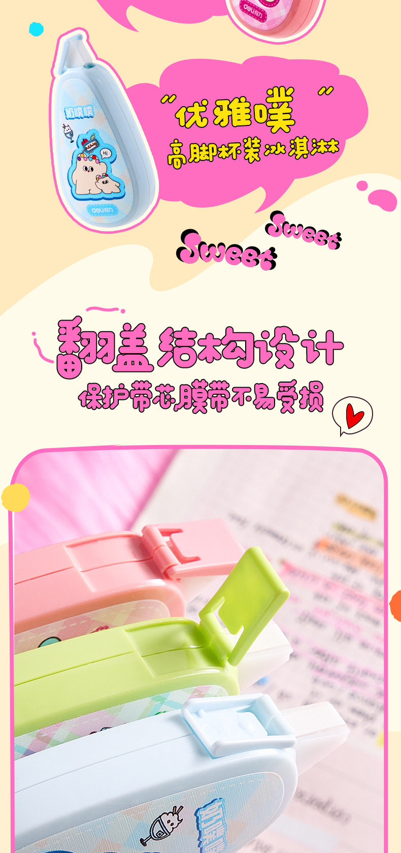 Deli stationery correction tape milk poop-poop basic flip type rice number high color value simple alteration correction tape