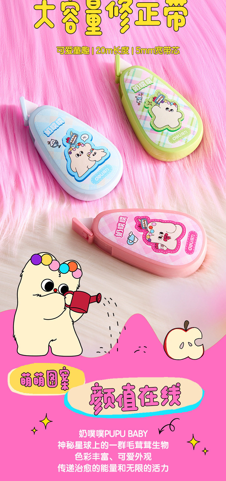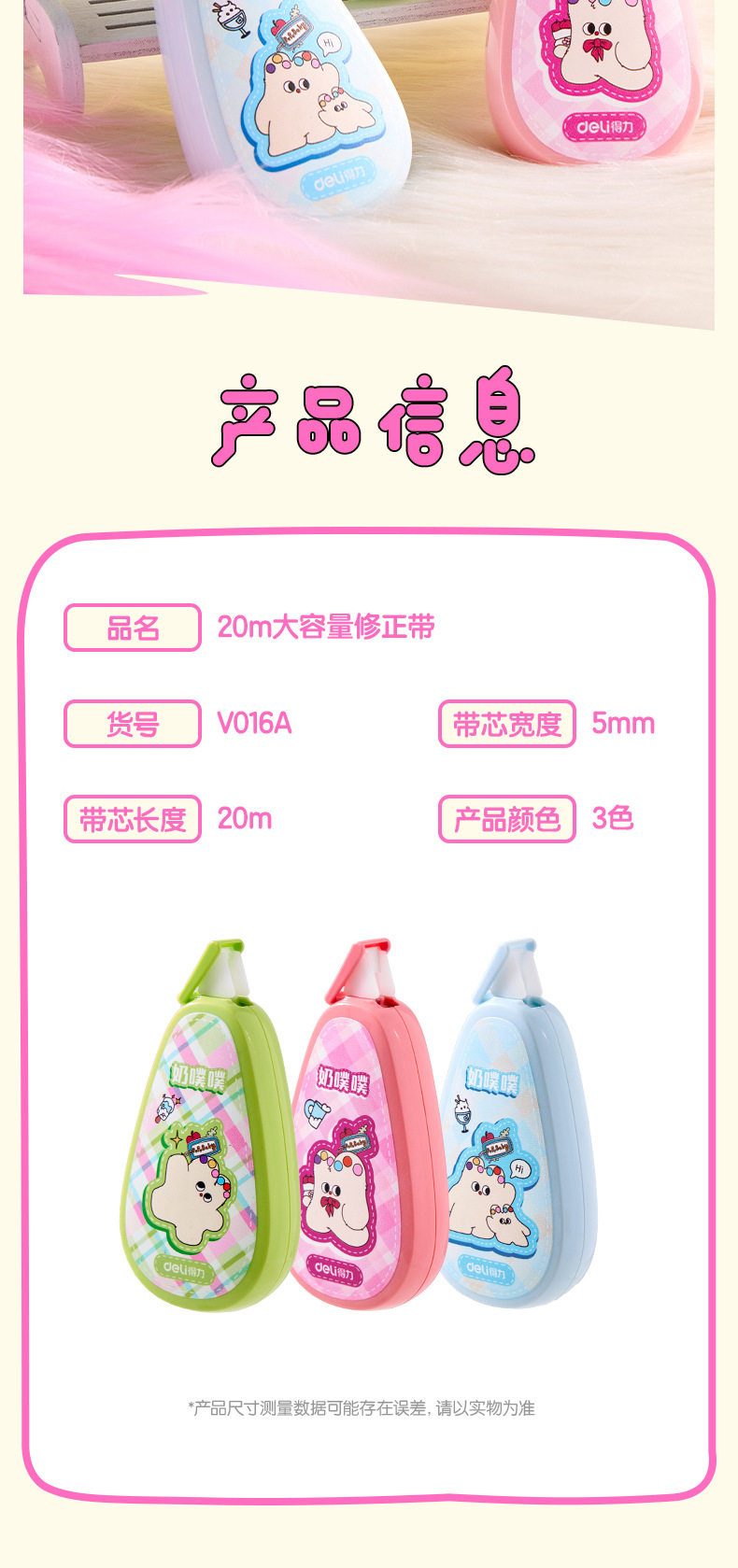 Specification Deli v016a milk puff basic correction tape 5mm*20m correction tape (mixed color) (piece),Deli v016 correction tape 5mm*20m (mixed) (piece),Deli v017 correction tape 5mm*30m (mixed) (piece