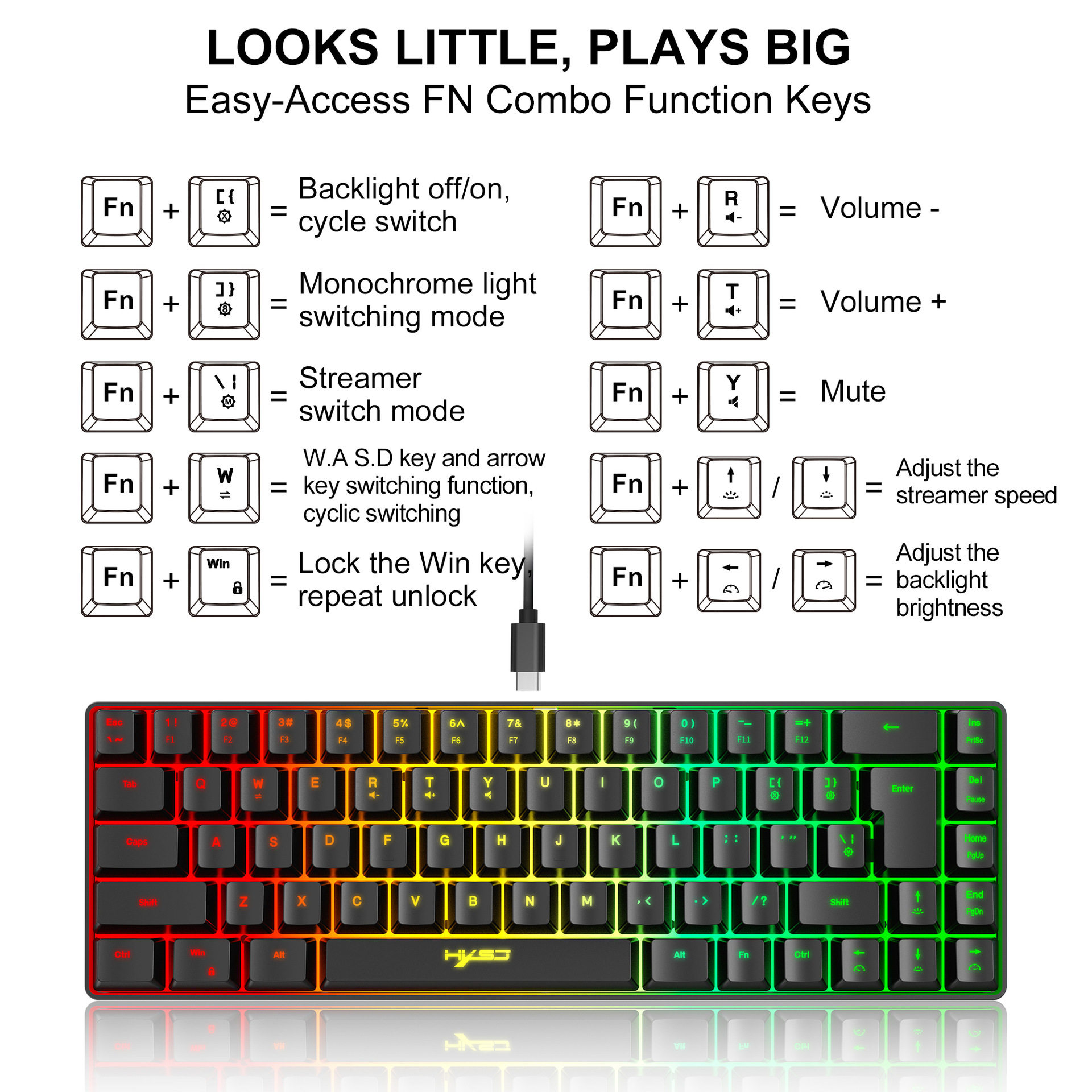 Wired portable 68-key mechanical feel Film gaming keyboard ABS material RGB backlight cross-border in stock