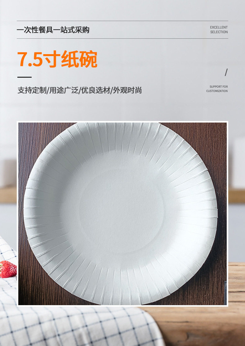 Disposable bowl 7.5-inch thick paper bowl household outdoor outing picnic barbecue round hot pot dipping sauce paper pulp Bowl