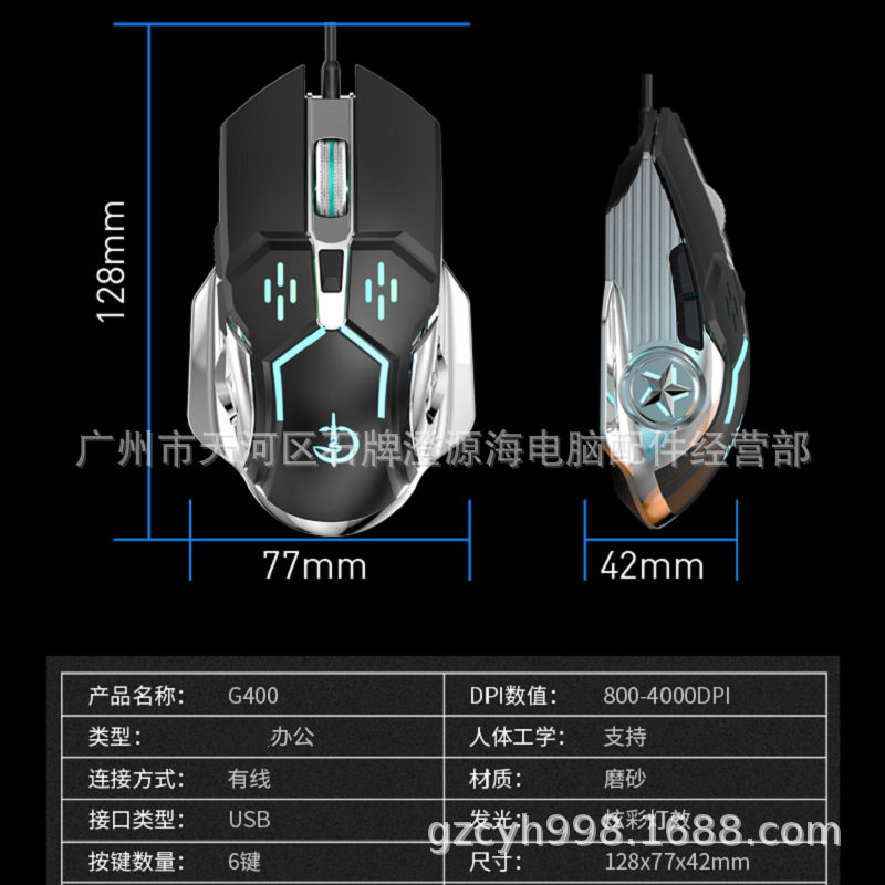 Jianshengzu G400 wired USB mouse 6D variable speed colorful luminous business office weaving line game Mouse