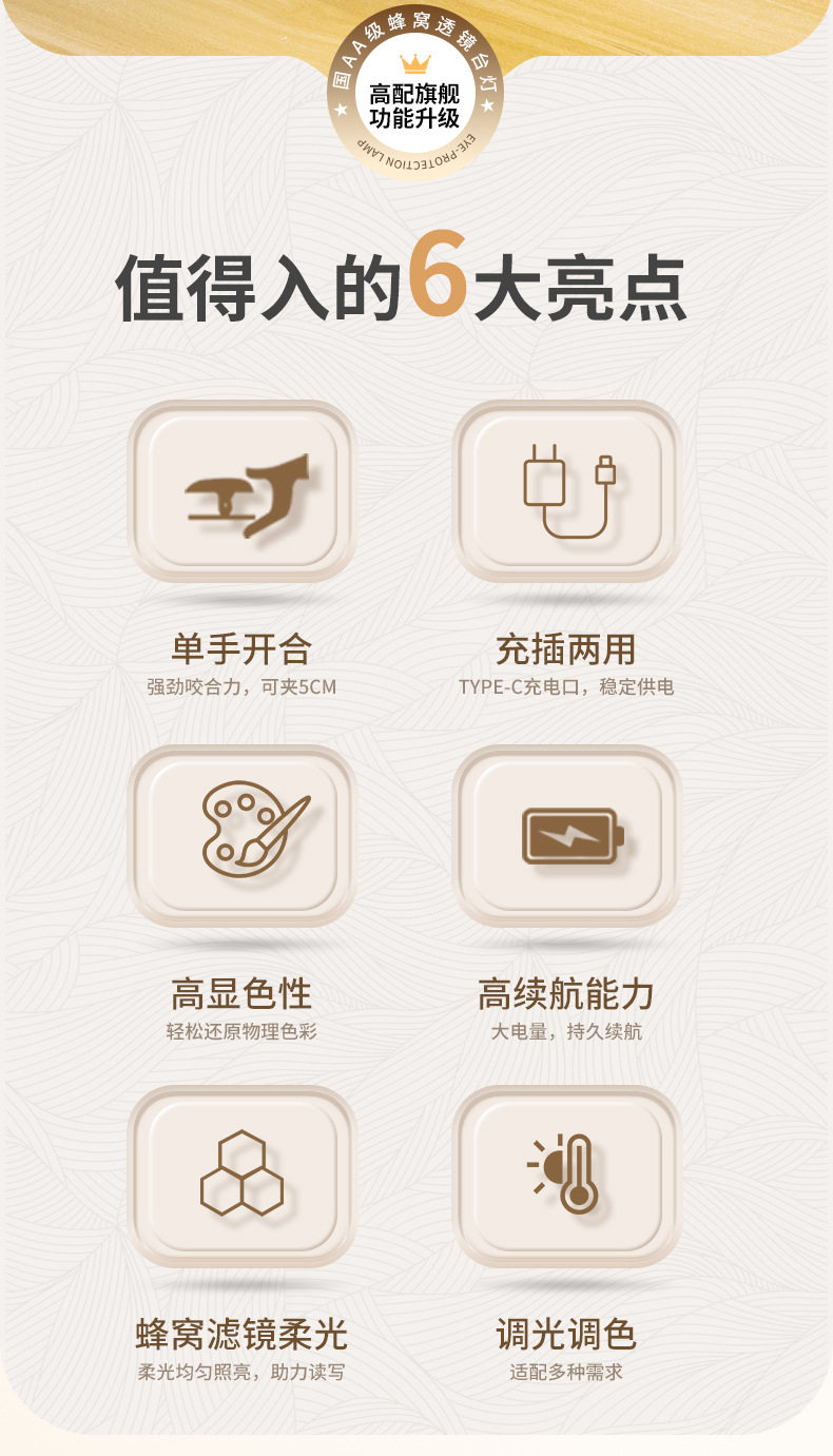 | Additional features | Pat the lamp,Night light,Study lamp,Ambient light |