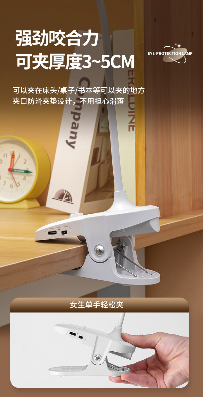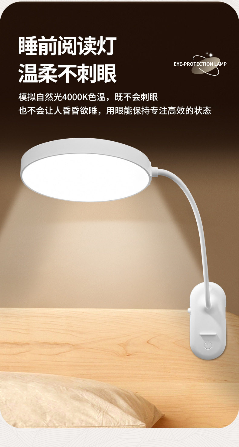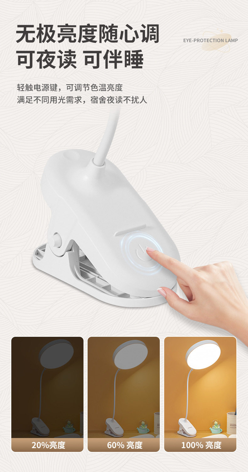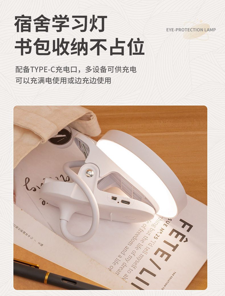 Learning Special desk lamp clip night light dormitory charging eye protection led bedside reading light cross-border student gift
