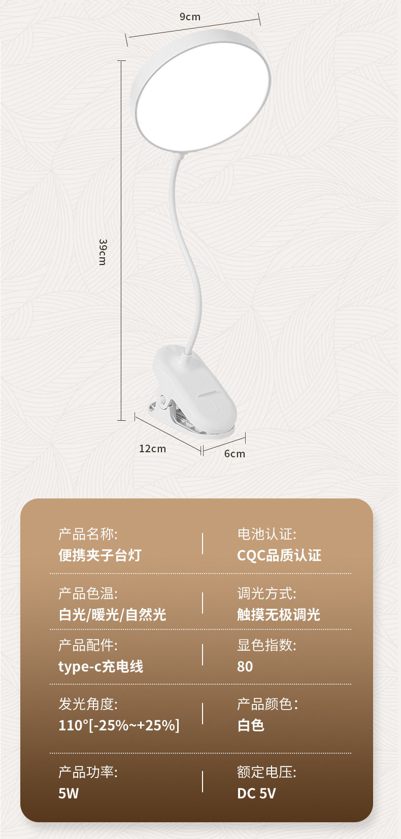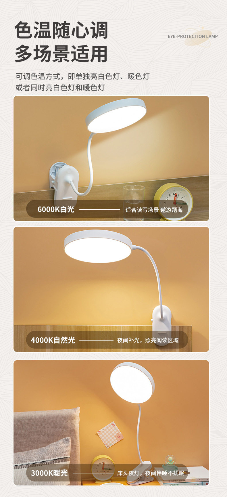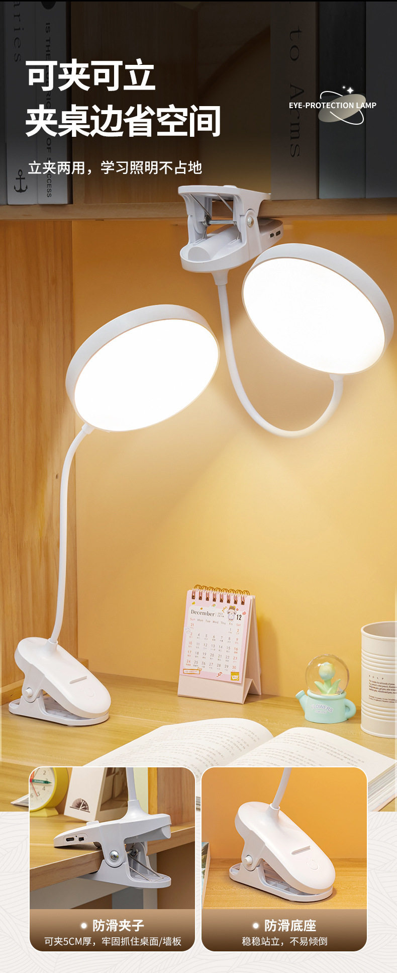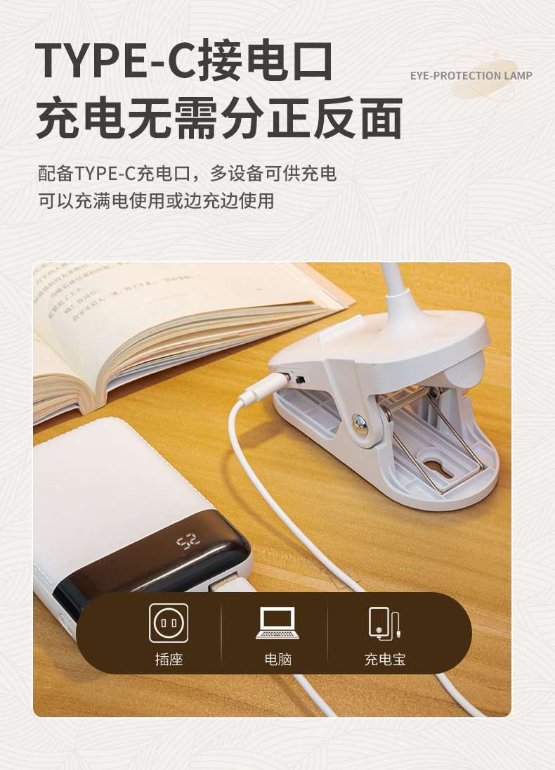 Learning Special desk lamp clip night light dormitory charging eye protection led bedside reading light cross-border student gift