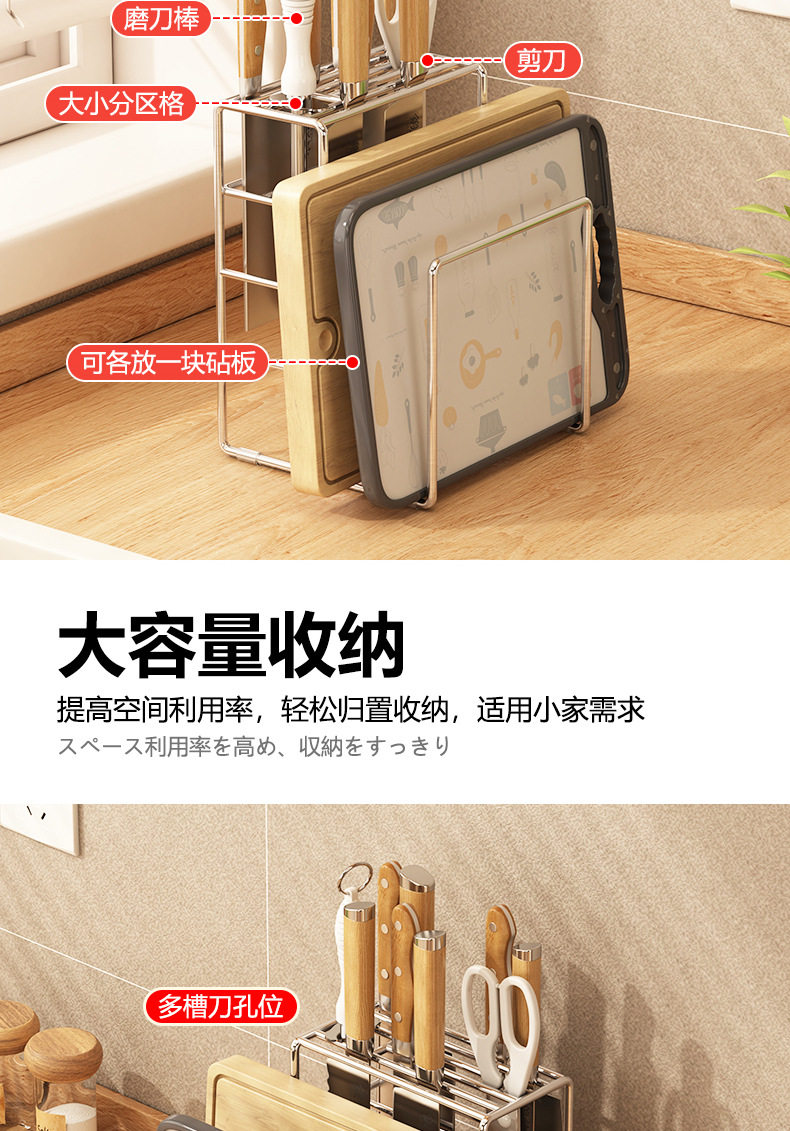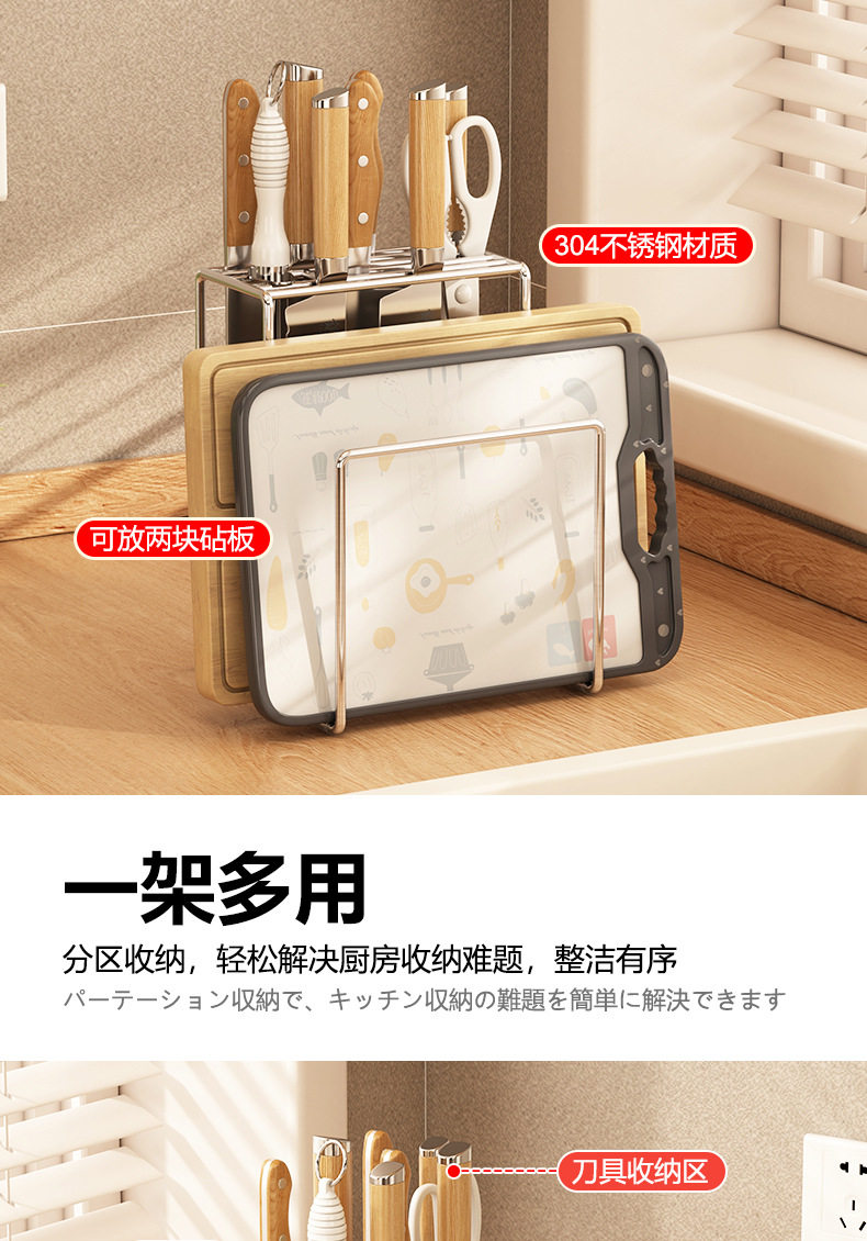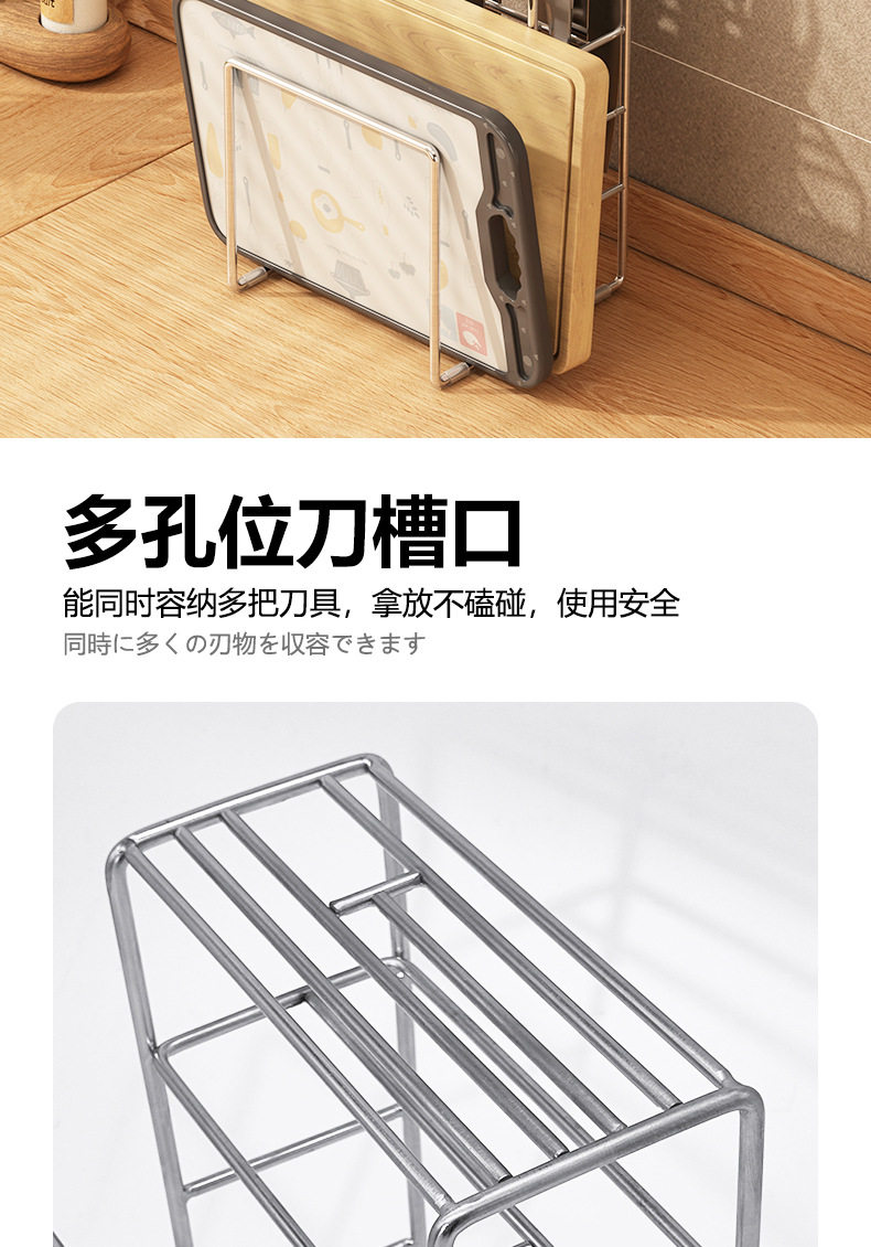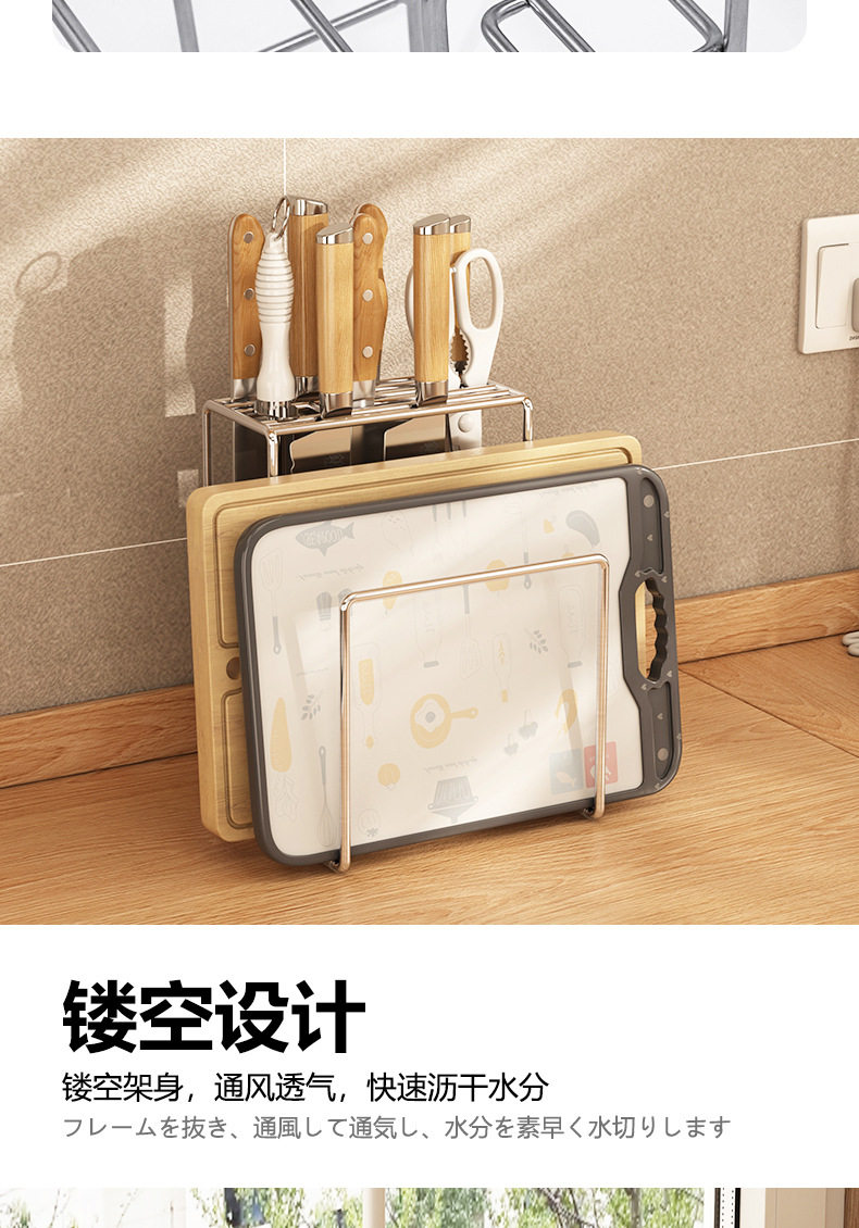 304 stainless steel knife rack storage rack kitchen knife rack table knife chopsticks chopping board integrated rack installation-free storage rack