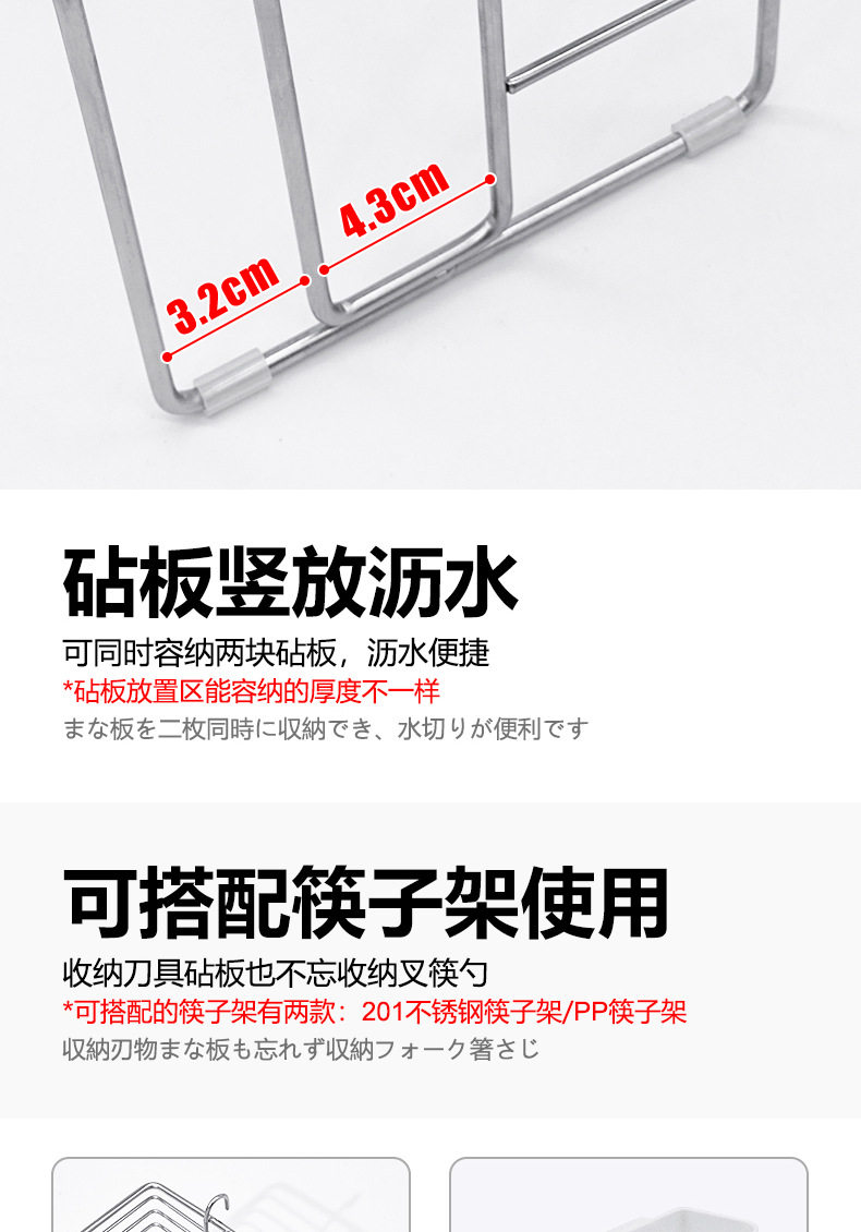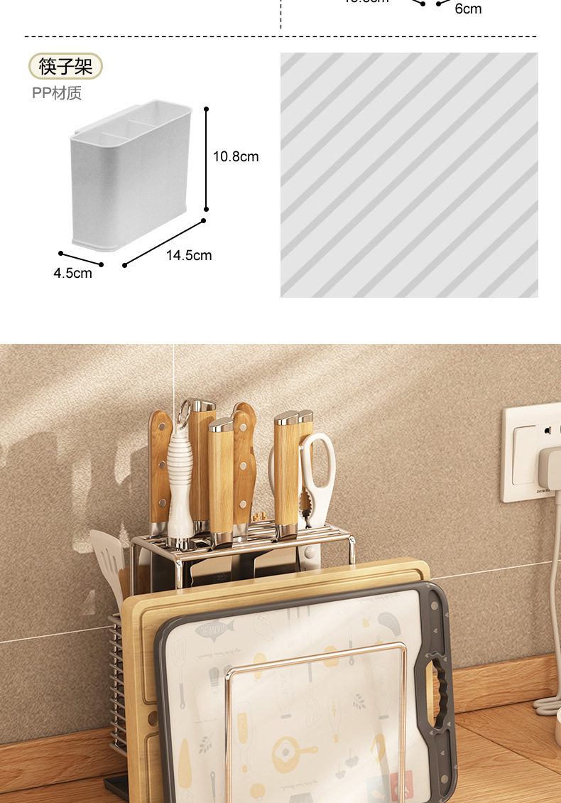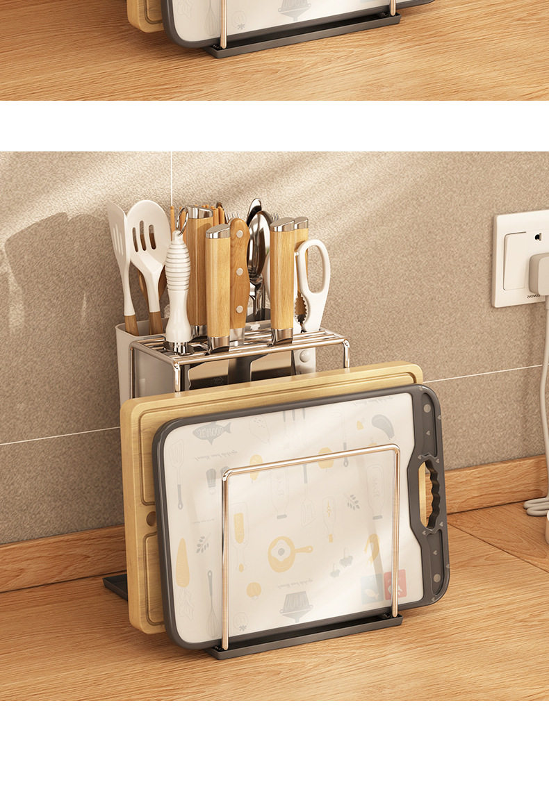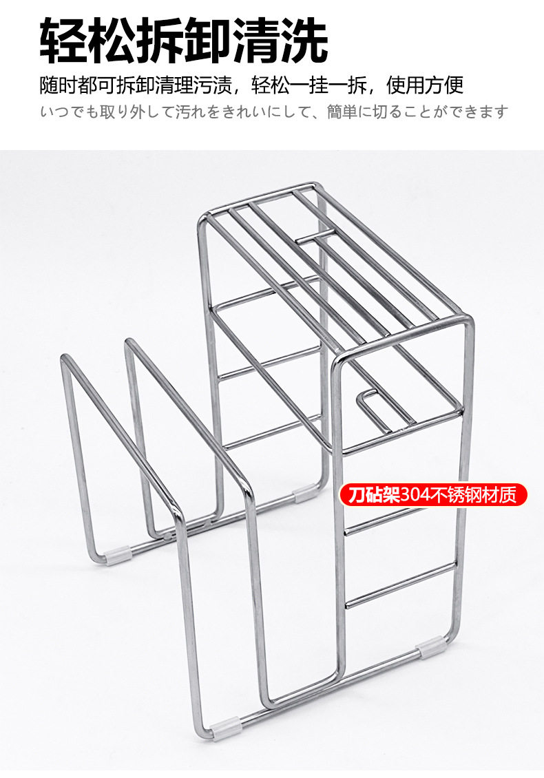 304 stainless steel knife rack storage rack kitchen knife rack table knife chopsticks chopping board integrated rack installation-free storage rack