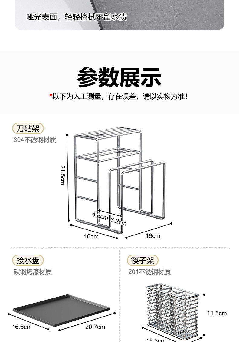 | Number of layers (specifications) | 304 knife anvil integrated stand,304 knife and anvil integrated stand + plastic chopstick box,304 knife and anvil integrated rack + water tray,Accessories water tray |