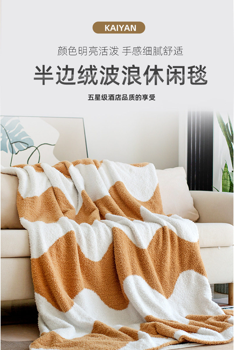 Scandinavian Half-Velvet Knitted Blanket Sofa Blanket Casual Shawl Throw Blanket Office Lunch Blanket B&B Decorative Blanket