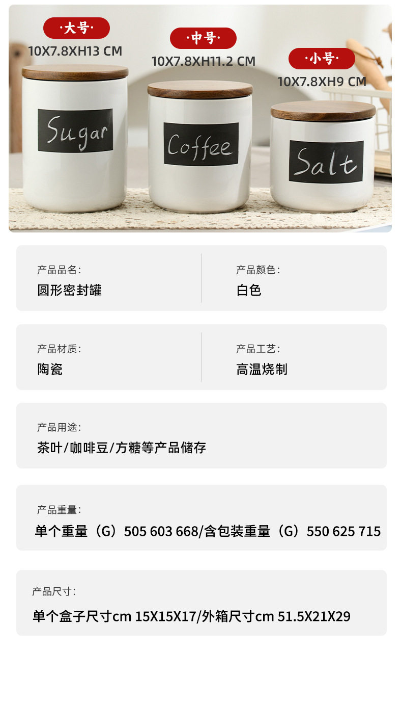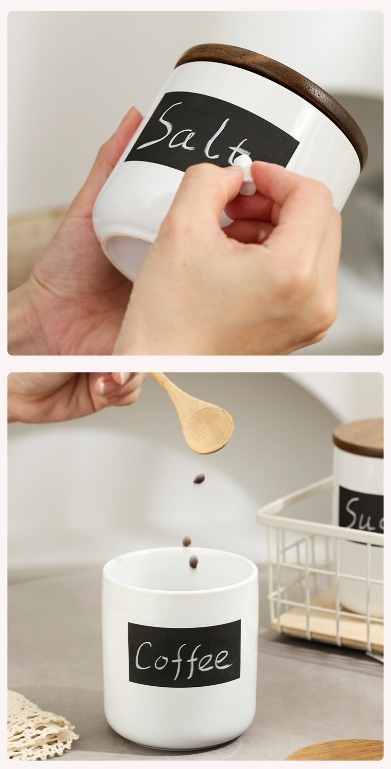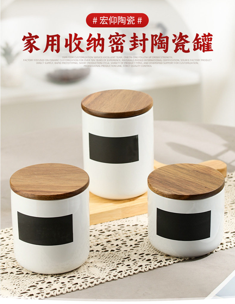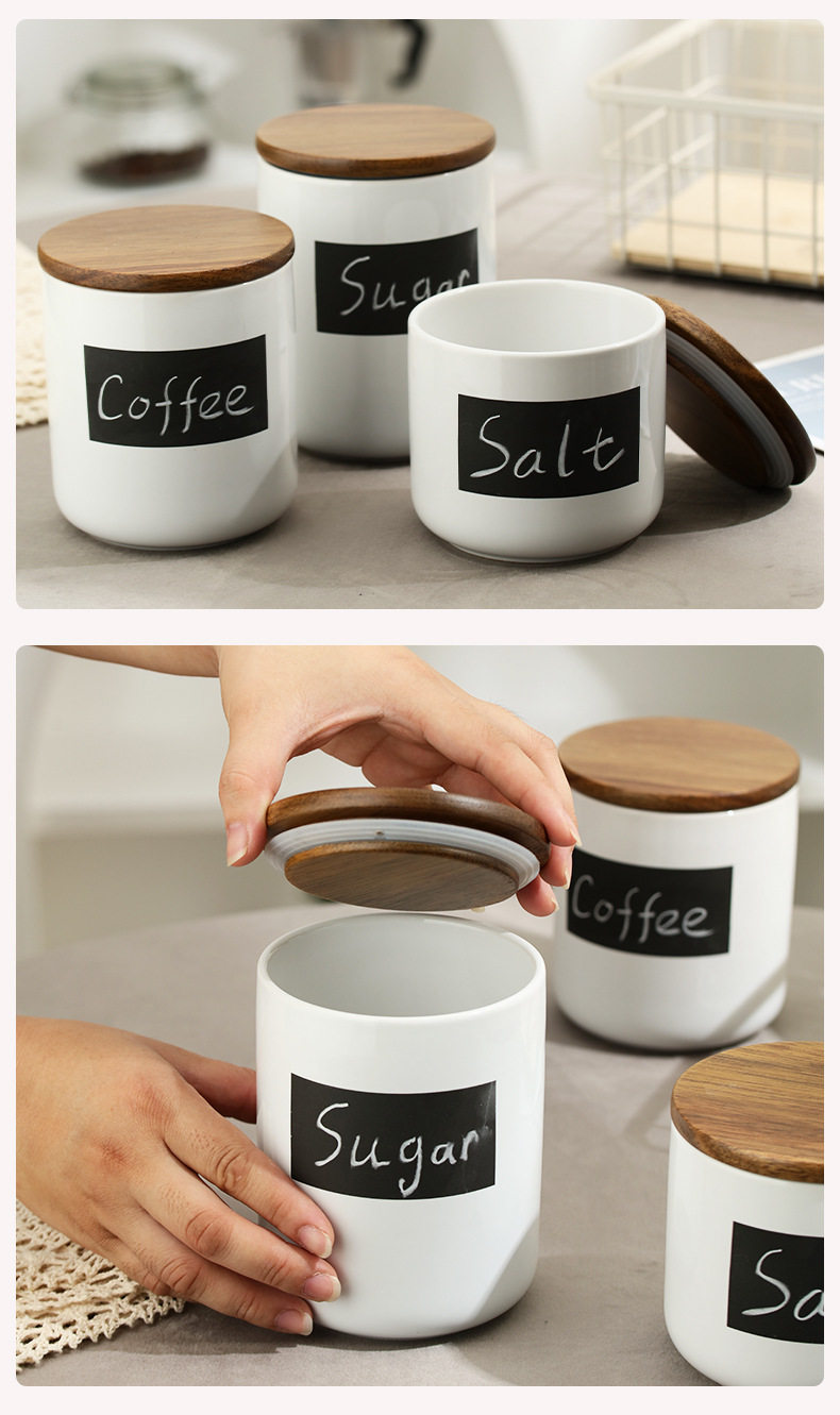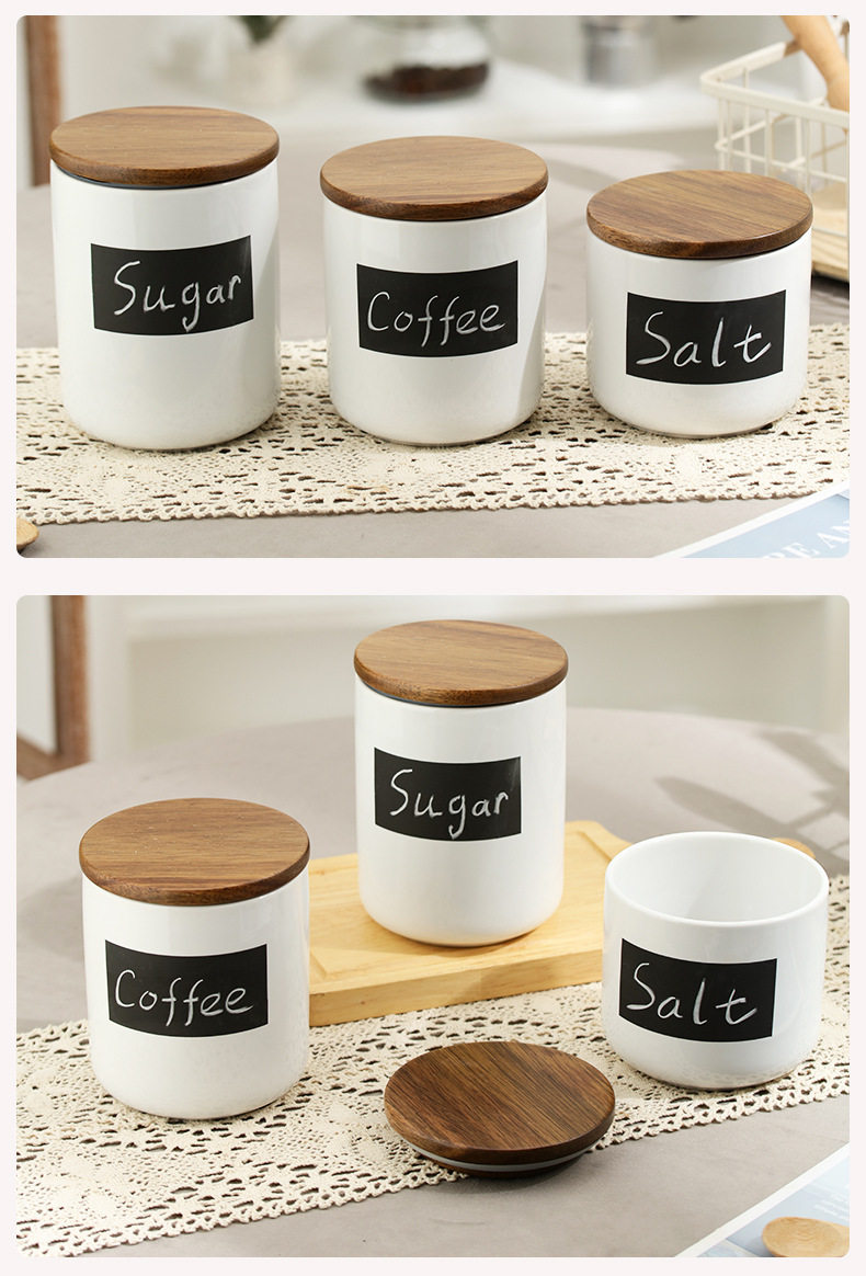 Nordic Ceramic Sealed Cans Cereals Candy Tea Storage Jar with Wooden Lid Seasoning Storage Jar Kitchen Supplies