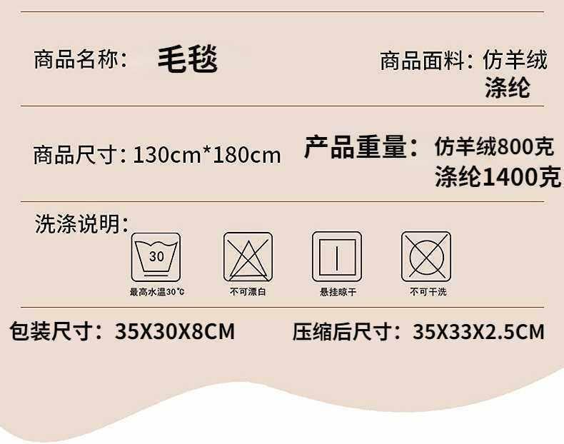 | Color | Khaki (800g imitation cashmere),Jet black (800g imitation cashmere),Light gray (800g imitation cashmere),Orange red (800g imitation cashmere),Blue color (800g imitation cashmere),Pink (800g imitation cashmere),Burgundy (800g imitation cashmere),Lake blue (800g imitation cashmere),Brown (800g imitation cashmere),Striped khaki blanket (800g imitation cashmere),Striped black blanket (800g imitation cashmere),Striped light gray (800g imitation cashmere),Striped orange (800g imitation cashmere),Striped green blanket (800g imitation cashmere),Striped burgundy carpet (800g imitation cashmere),Khaki (1400g polyester),Jet black (1400g polyester),Light gray (1400g polyester),Orange red (1400g polyester),Khaki compression (800g imitation cashmere),Jet black compression (800g imitation cashmere),Long blue compression (800g imitation cashmere),Orange compression (800g imitation cashmere),Light gray compression (800g imitation cashmere),Brown compression (800g imitation cashmere),Lake blue compression (800g imitation cashmere),Burgundy compressed (800g imitation cashmere),Pink compression (800g imitation cashmere),Striped khaki blanket (compressed) (800g imitation cashmere),Striped jet black blanket (compressed) (800g imitation cashmere),Striped light gray blanket (compressed) (800g imitation cashmere),Striped orange carpet (compressed) (800g imitation cashmere),Striped navy blue blanket (compressed) (800g imitation cashmere),Striped burgundy carpet (compressed) (800g imitation cashmere),Khaki compression (1400g polyester),Jet black compression (1400g polyester),Light gray compression (1400g polyester),Orange compression (1400g polyester),Khaki shawl (800g imitation cashmere),Orange shawl (800g imitation cashmere),Jet black shawl (800g imitation cashmere),Light gray shawl (800g imitation cashmere),Jet black (car pillow, cushion, blanket, three uses),Khaki (car pillow, cushion, blanket, three uses),Light gray (car pillow, cushion, blanket, three uses),Orange (car pillow, cushion, blanket, three uses),Brown (car pillow, cushion, blanket, three uses),Zhangqing (car pillow, cushion, blanket, three uses),Pink (car pillow, cushion, blanket, three uses) |